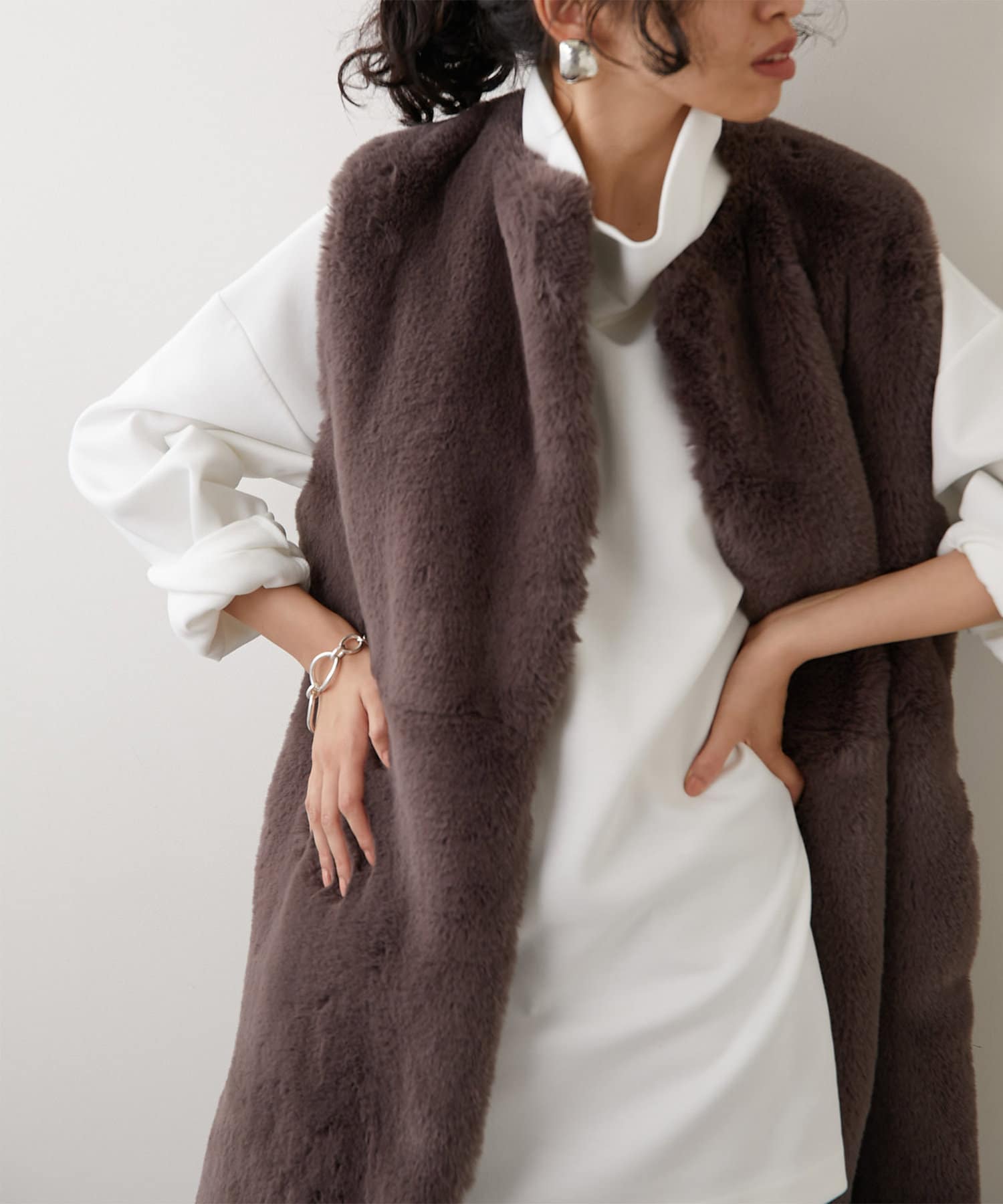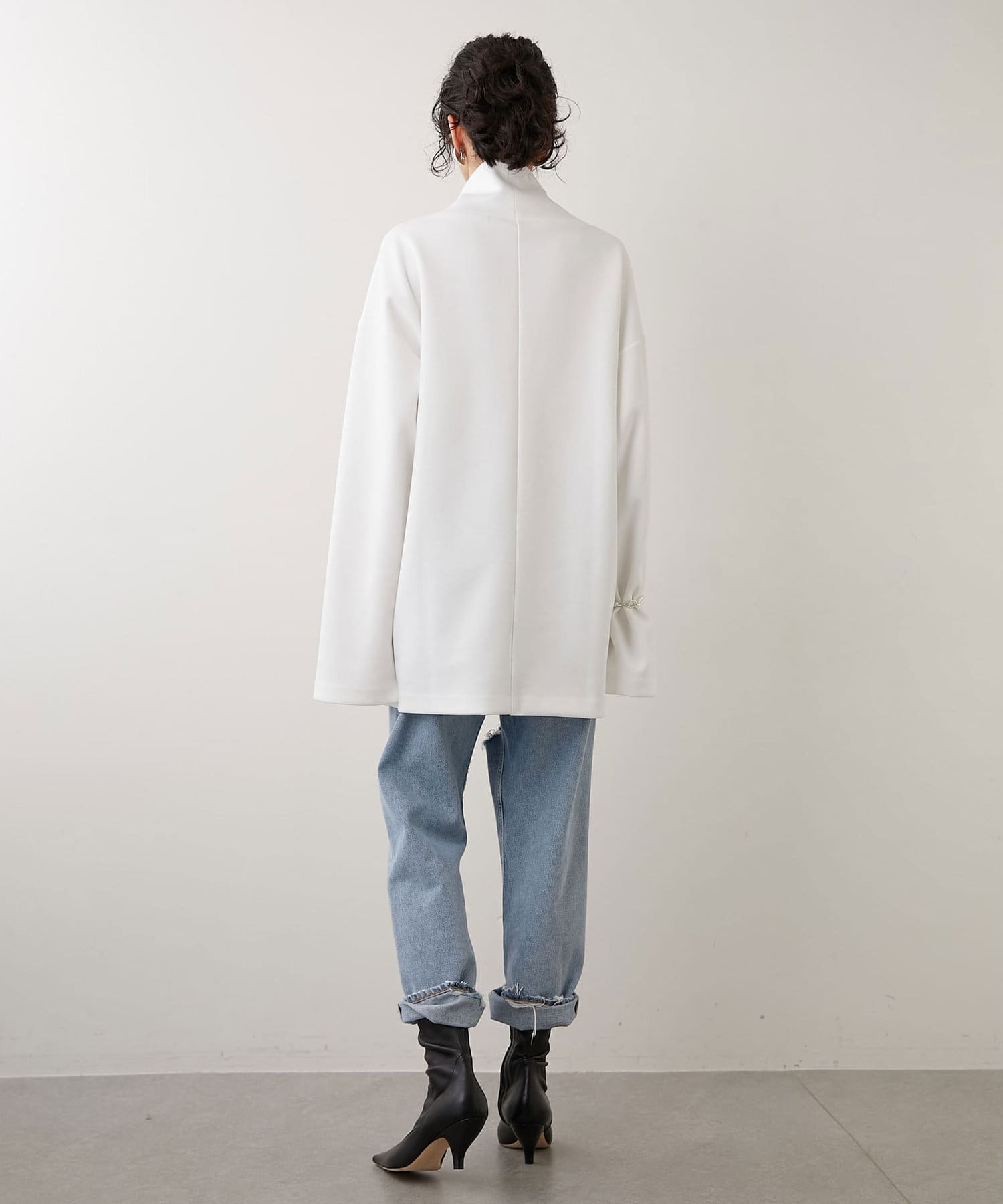ドロップショルダーやワイドなタートルディテールがよりオーバーなサイズ感を引き立て、ルーズ感のあるこなれた印象をプラスします。