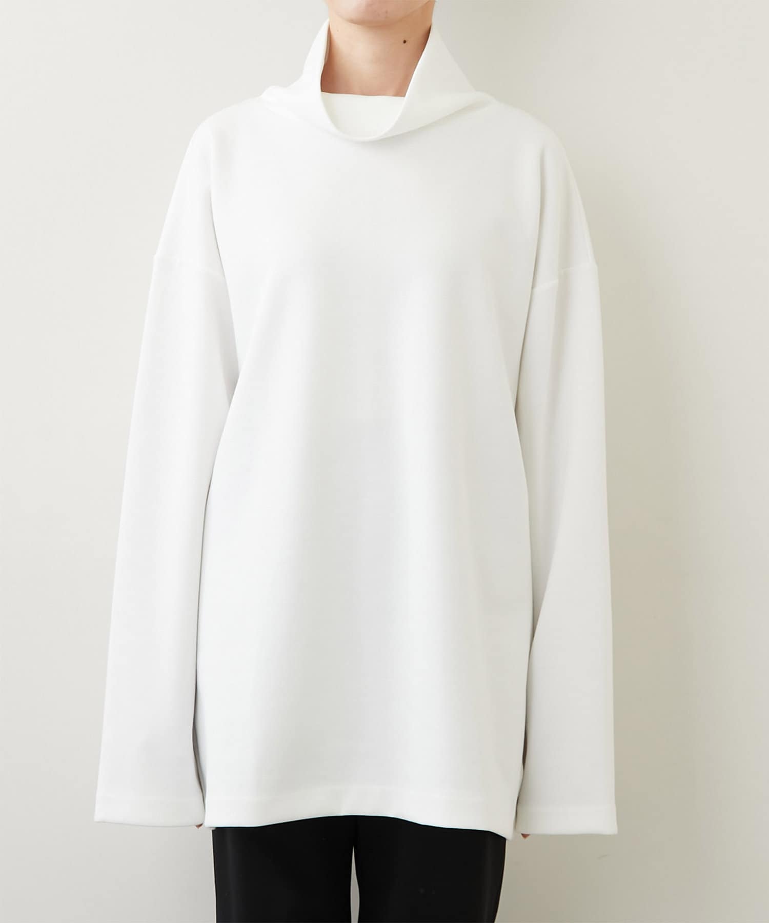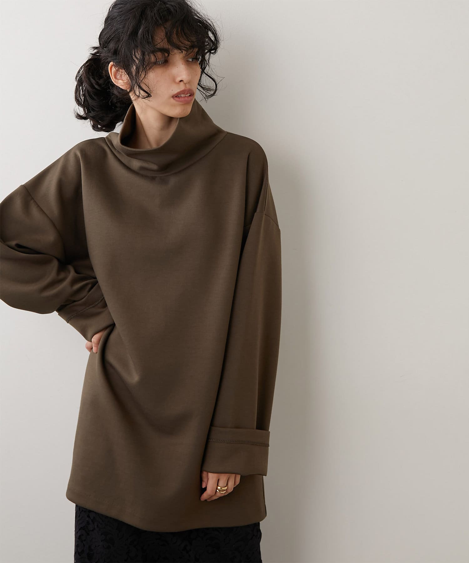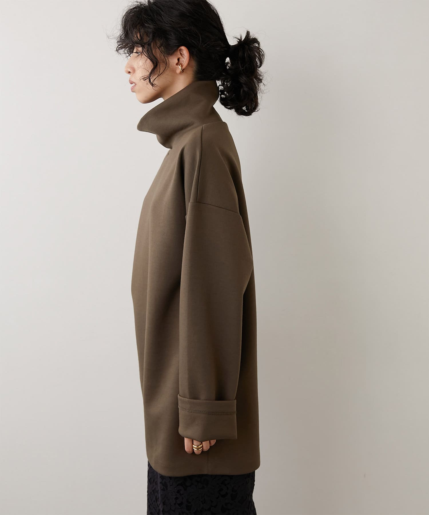 ワイドシルエットが特徴的なタートルネックプルオーバー。