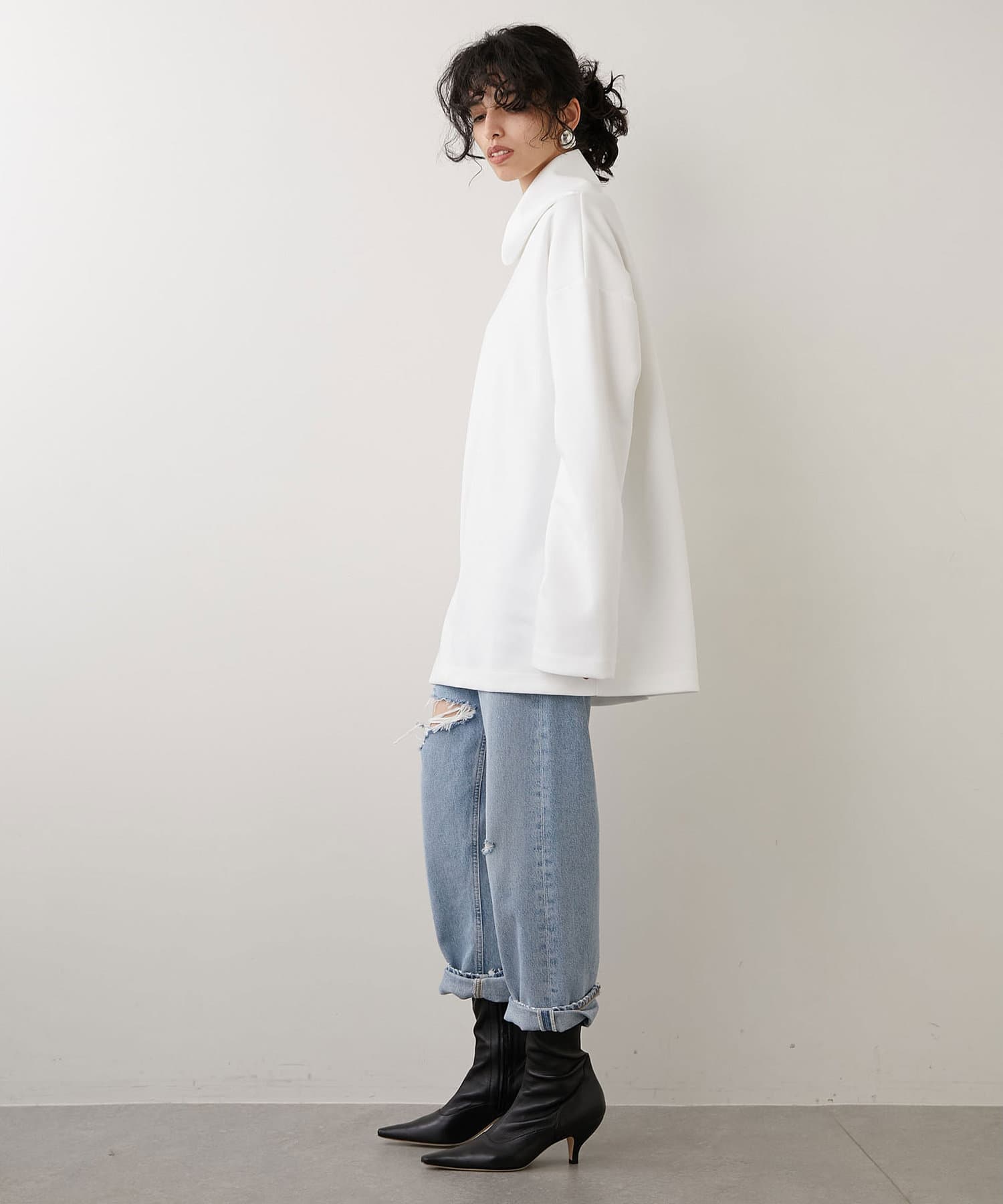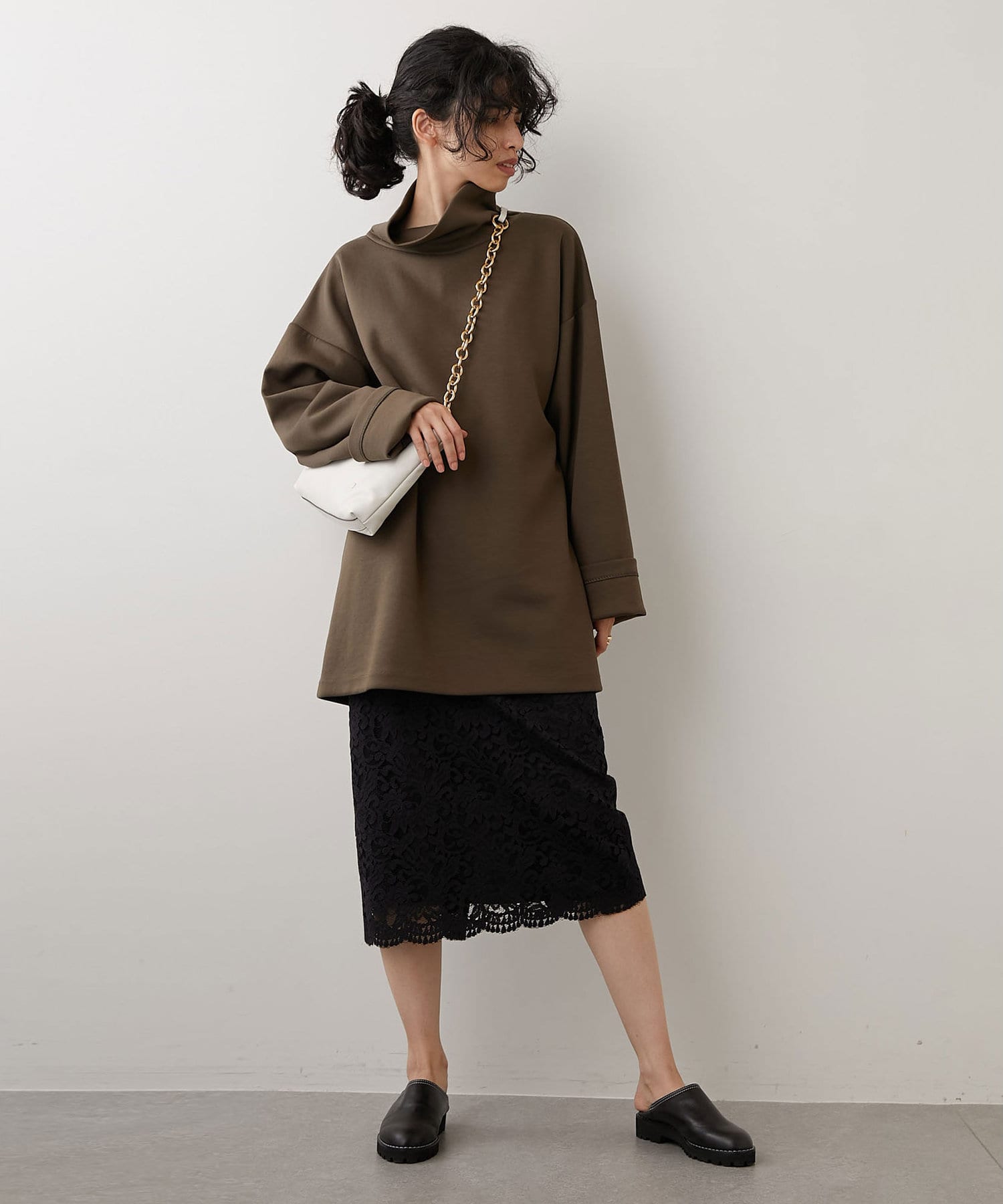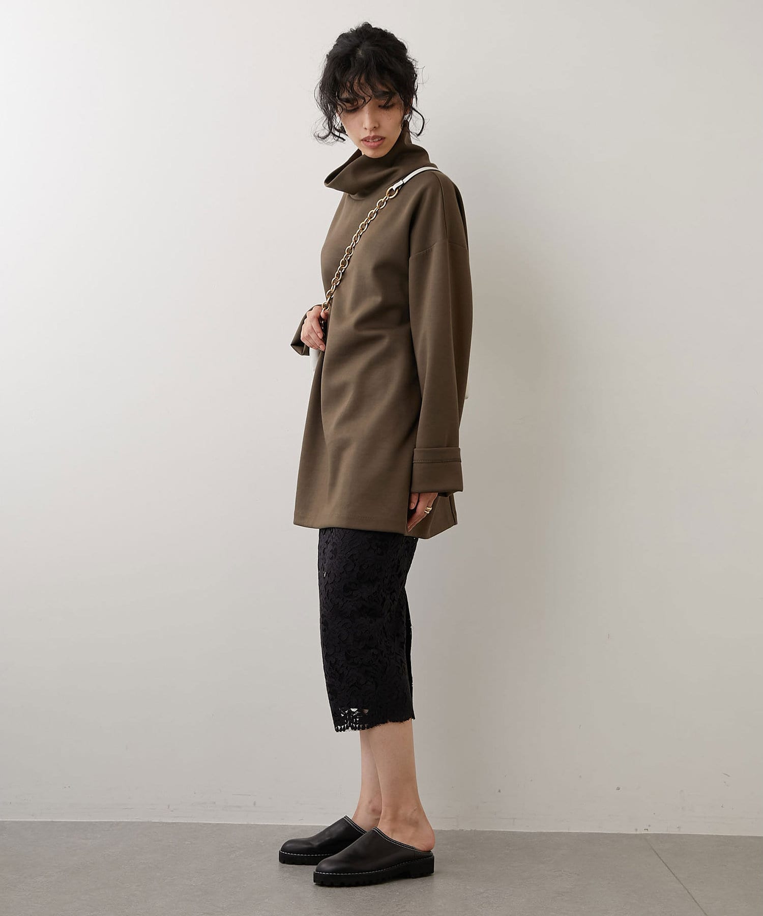 ワイドシルエットが特徴的なタートルネックプルオーバー。