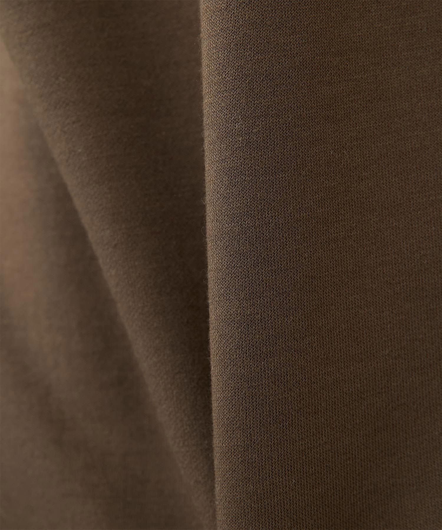 ハリがありながら落ち感もあるしなやかな生地で、カジュアルになりすぎない表情がポイントに。
