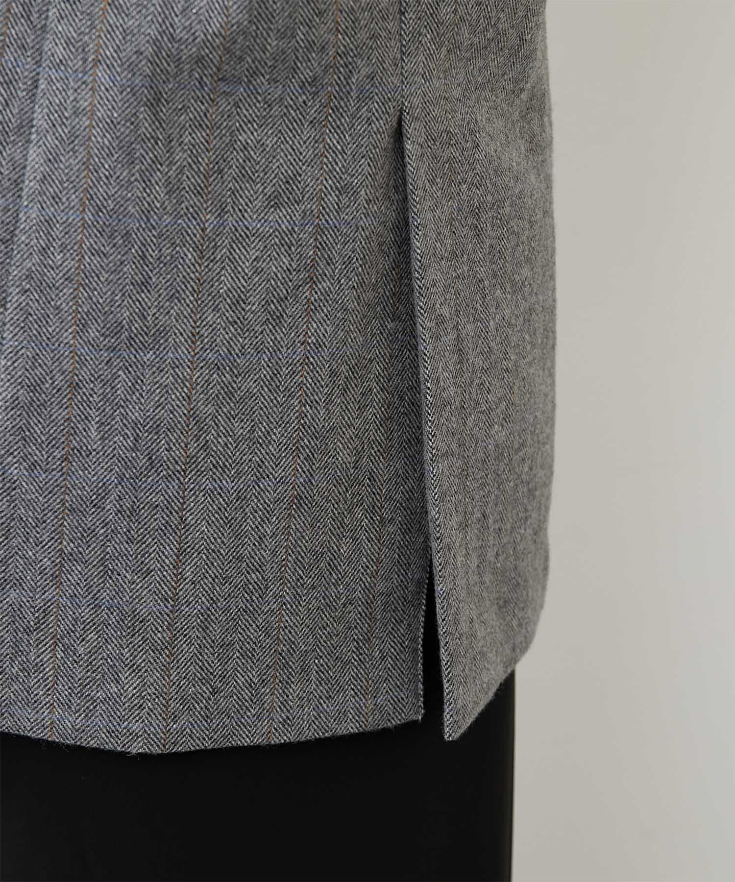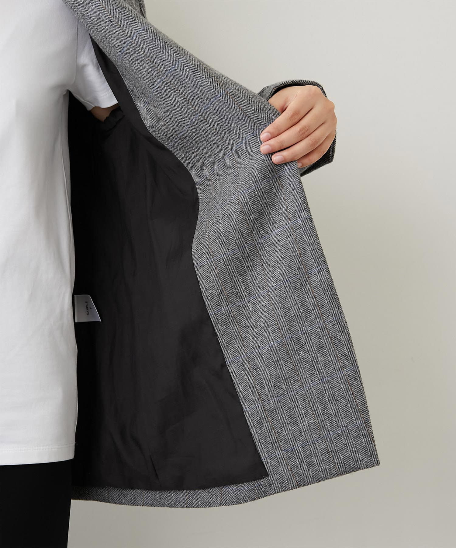 シックなヘリンボーン柄とさりげないオーバーシルエットがマニッシュな印象もプラスし、サラリと羽織るだけでもコーディネートが決まります。