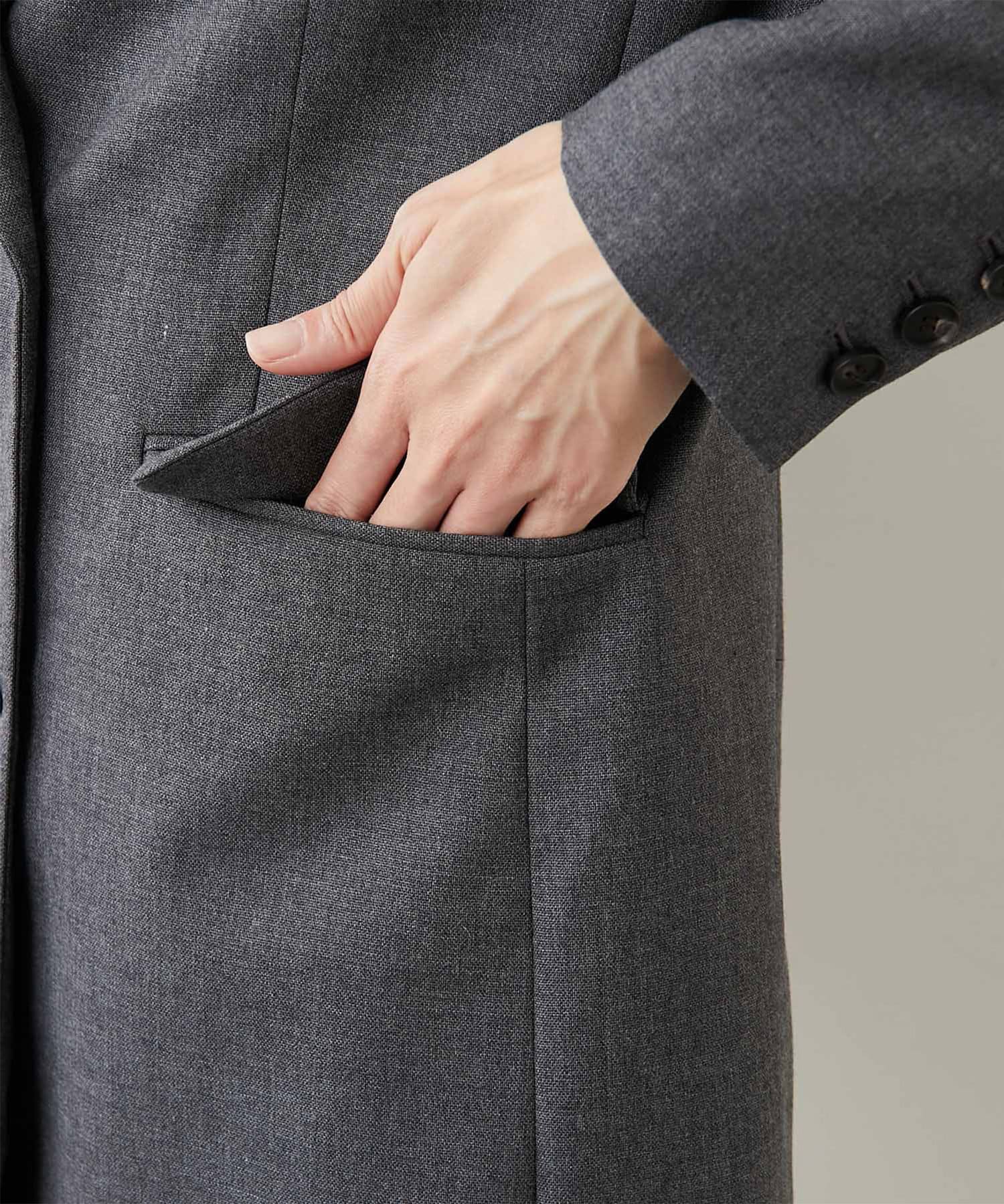 ダブルボタンのデザインできちんと感をキープ出来るので、デイリー使いからオフィスシーンまでマルチに活躍できるアイテムです。