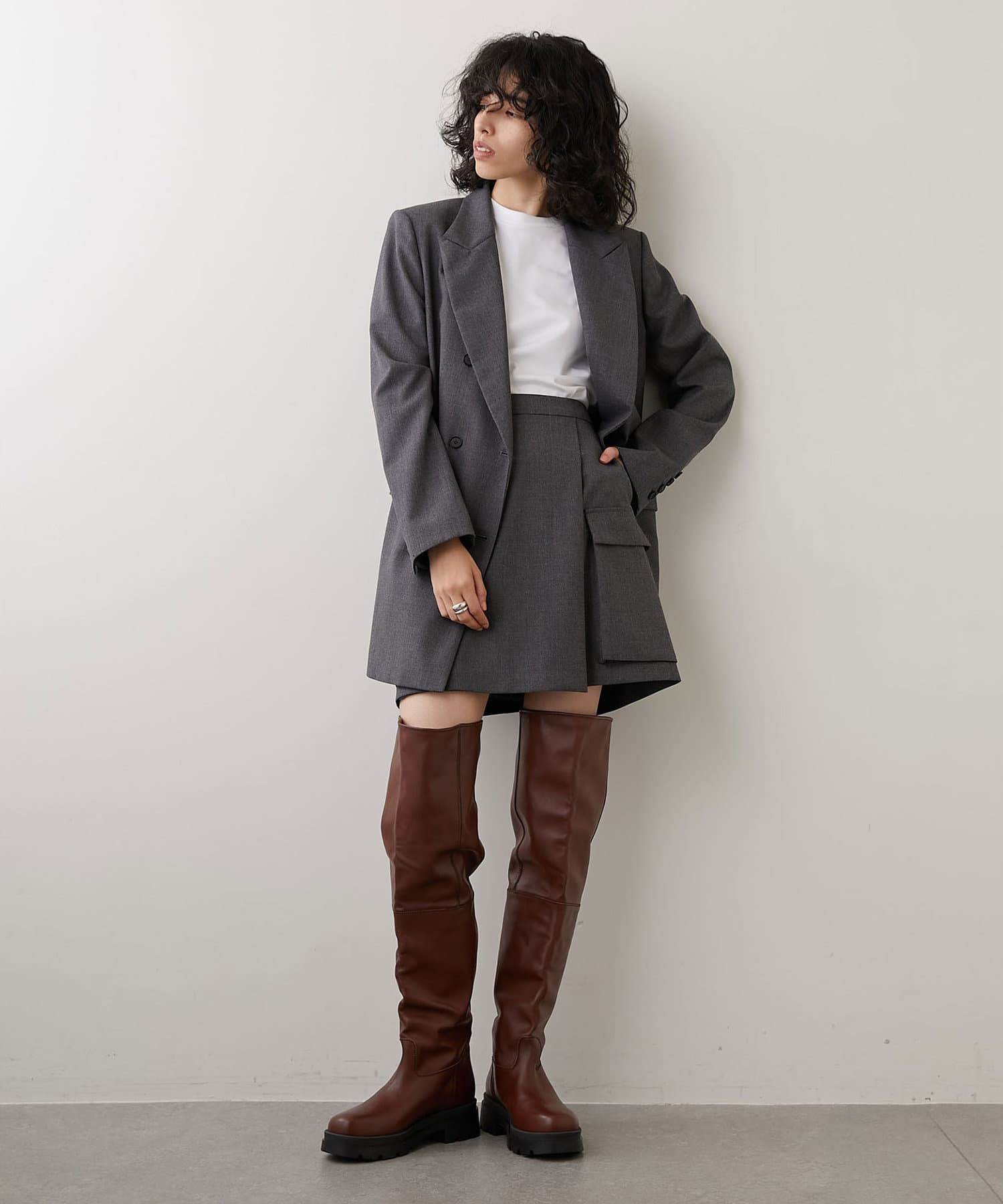 同素材のWOOLミ二スカート(ブランド品番:WGZ1012201A0007)とのセットアップも、今季らしくおすすめです。