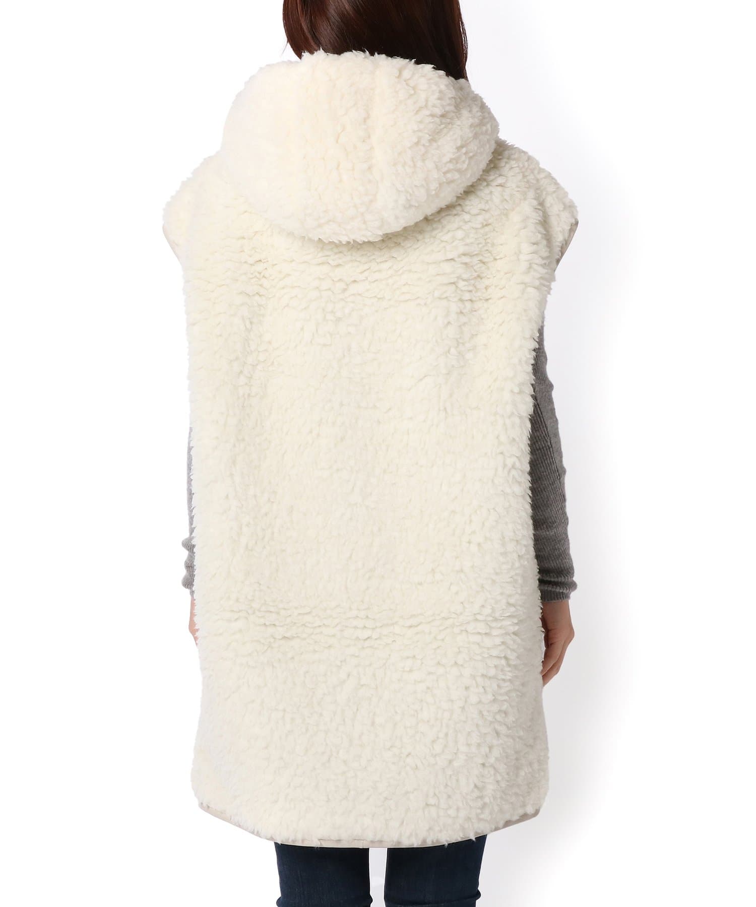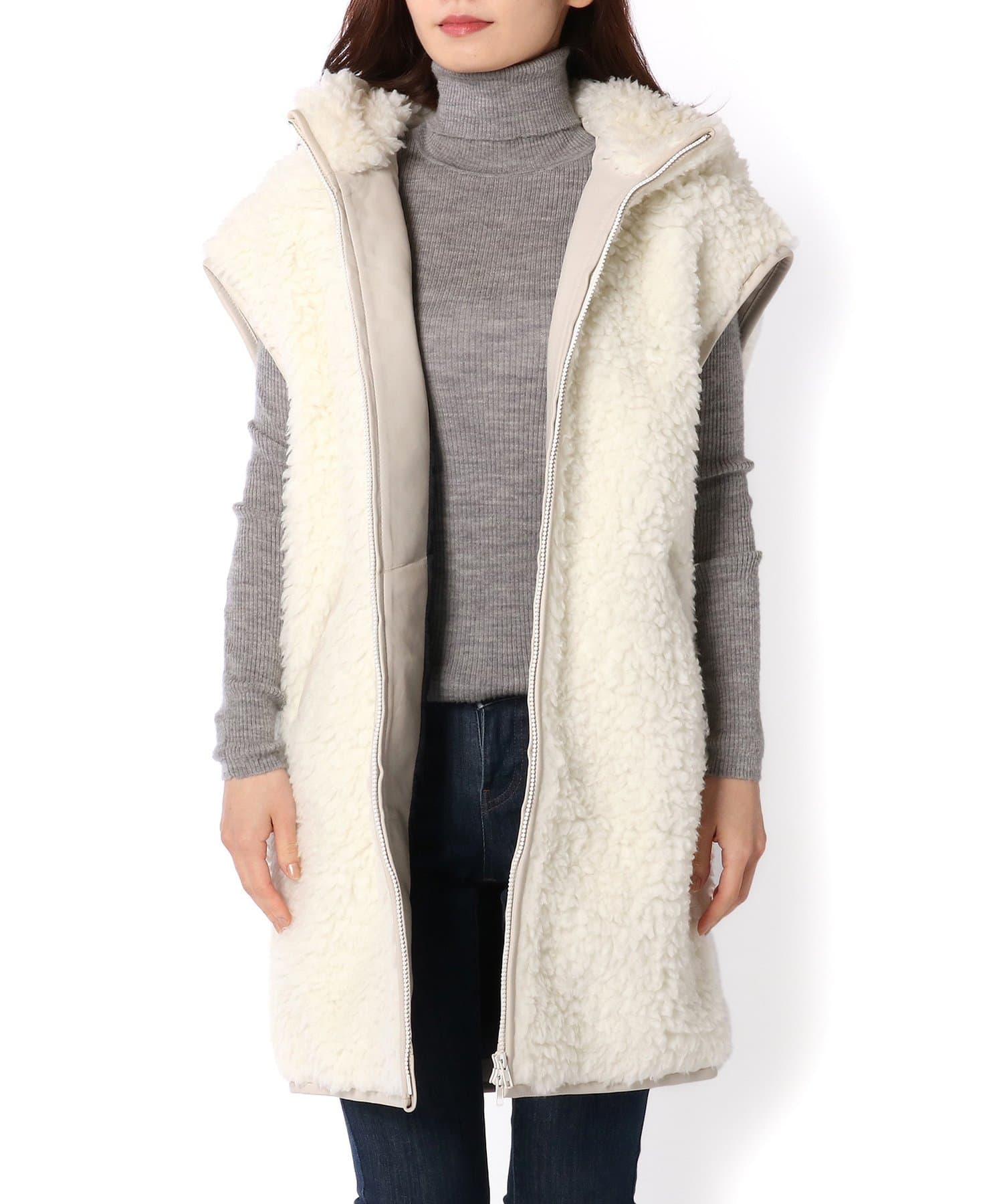 リアルな質感のフェイクファーを贅沢に使用した存在感たっぷりのロングジレ。
