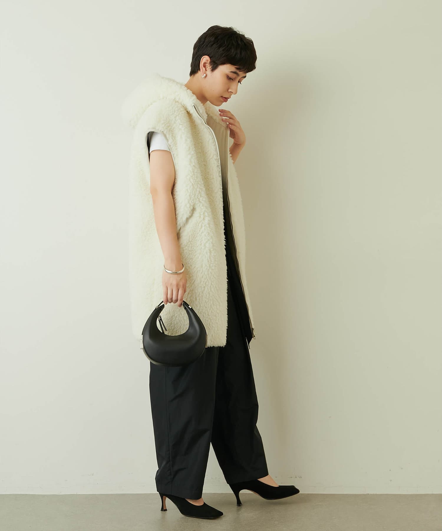 シンプルなアイテムに合わせるだけでワンランク上のスタイリングが決まる、大人のエコファーアイテムです。