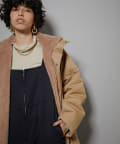 トレンドライクなボア面は、ポリエステルの中空糸を使用したとても軽いタッチが特徴で、細かい凹凸の毛足でカジュアル見えしすぎす、大人らしく着こなせます。