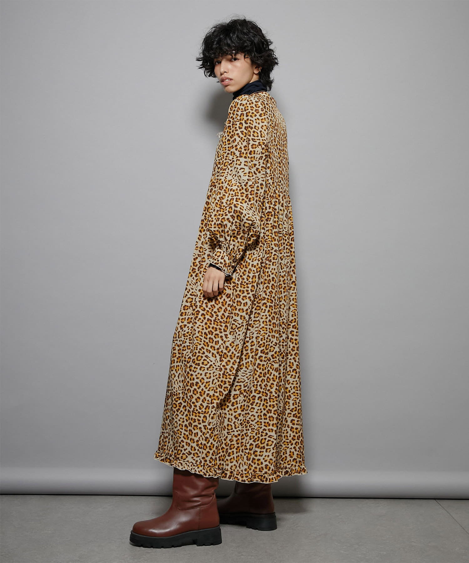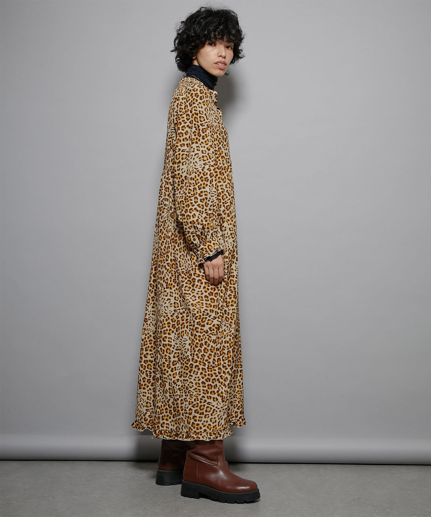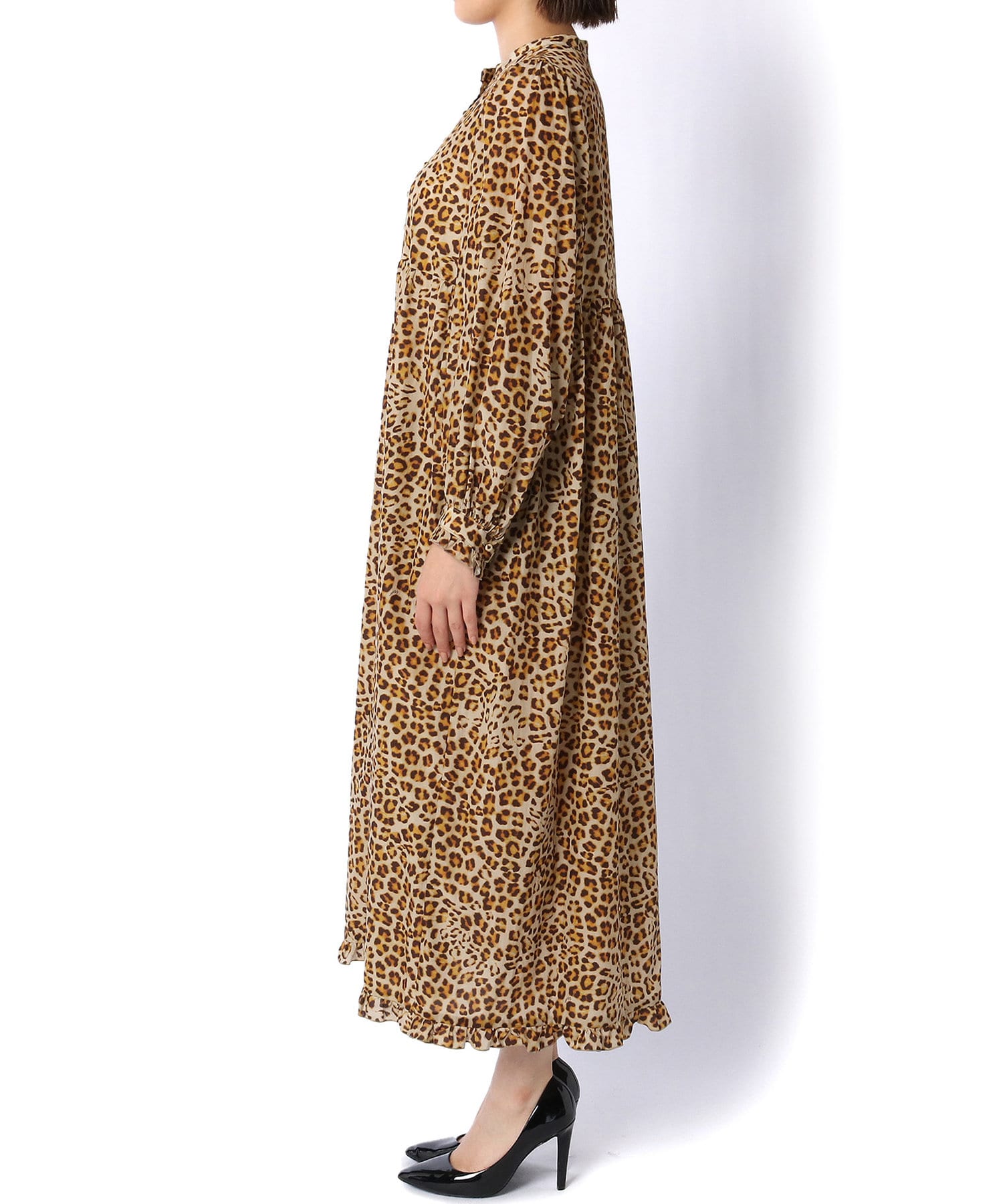 繊細なレオパード柄がインパクトを放つロングワンピース
