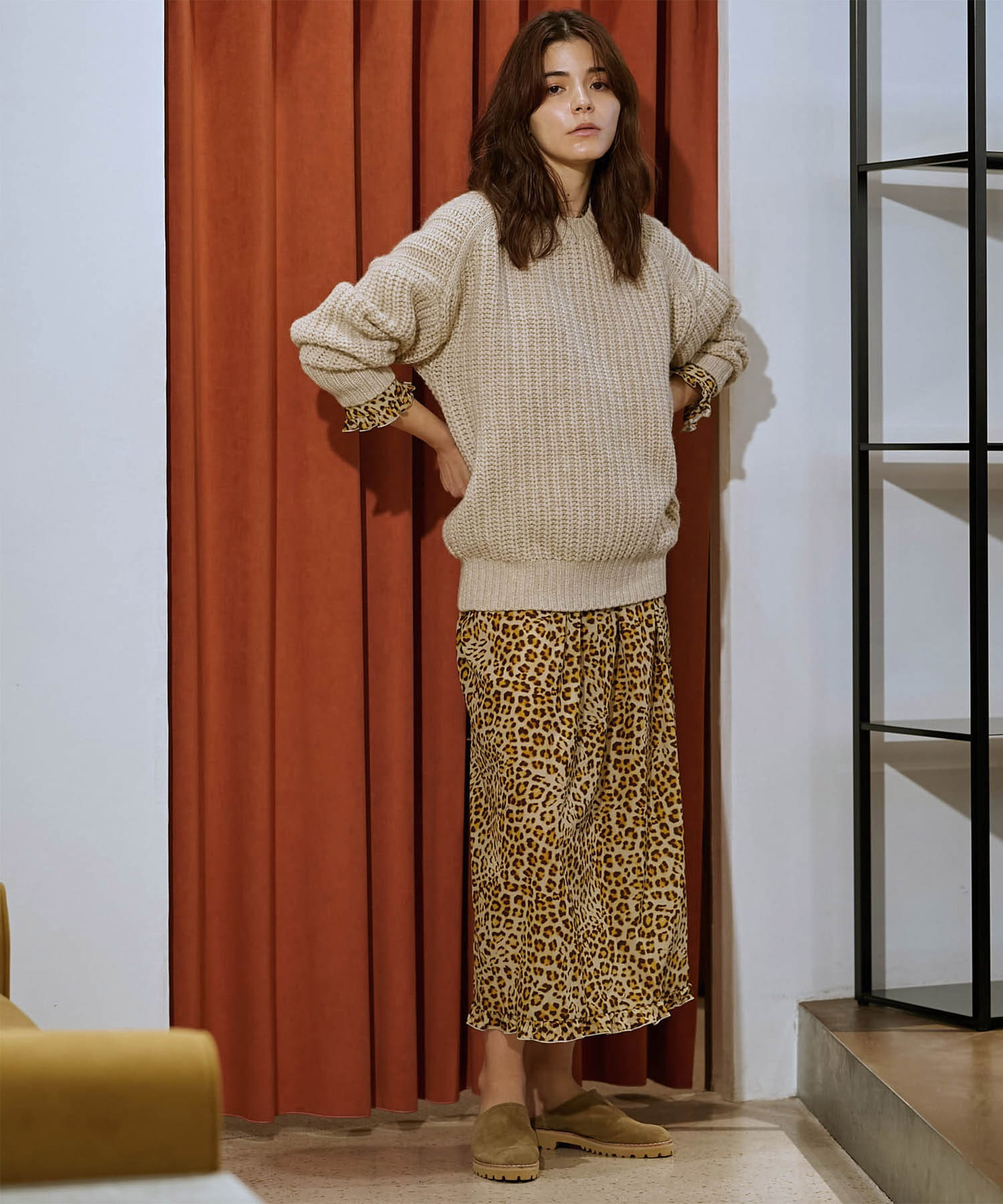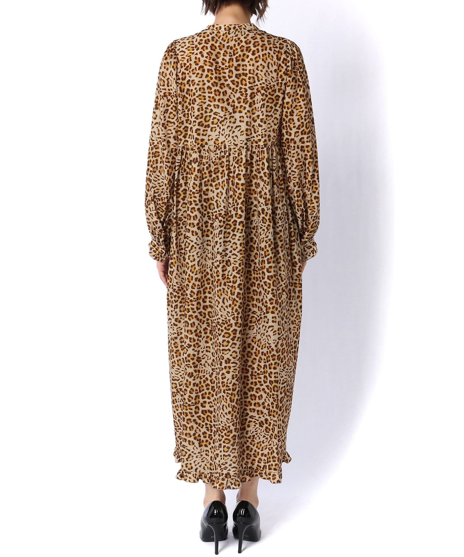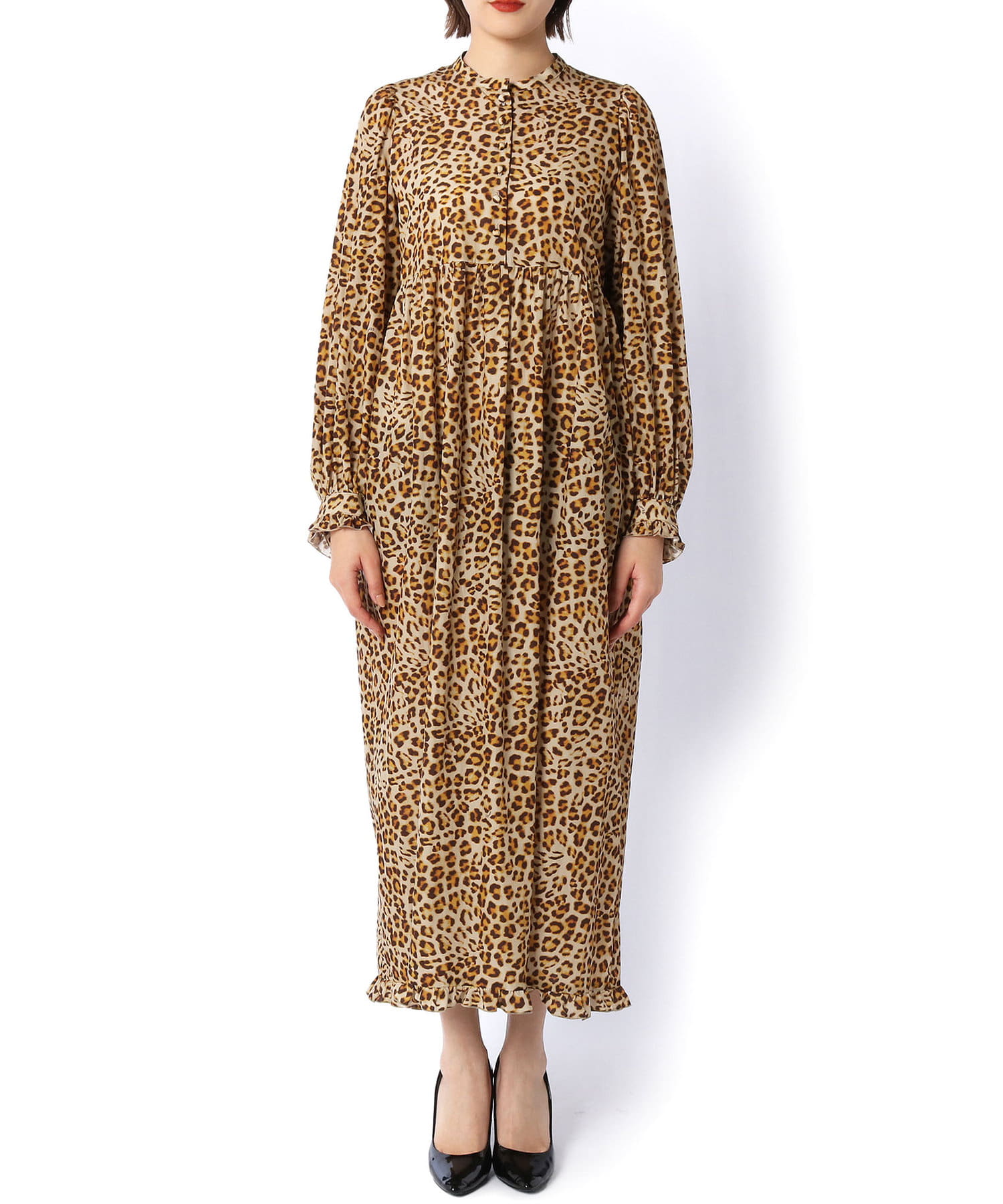 繊細なレオパード柄がインパクトを放つロングワンピース