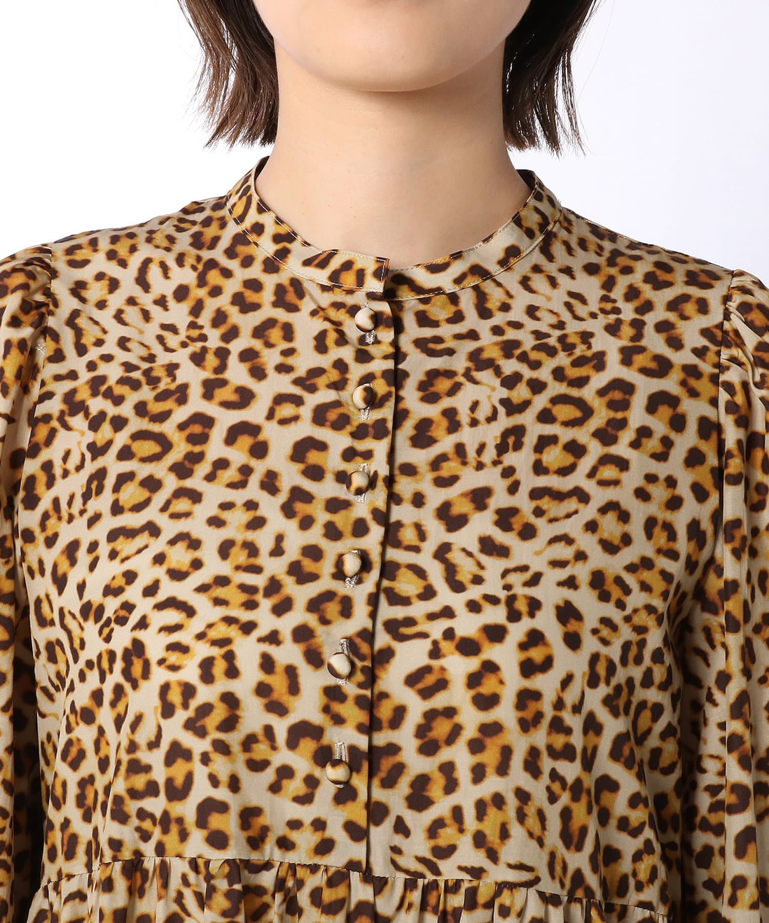 キュプラコットンの高密度のブロードを使用し、ゆとりのあるふんわりとしたシルエットが強くなりがちなレオパードの印象を和らげます。