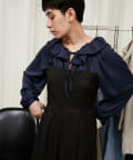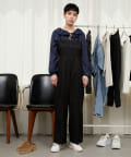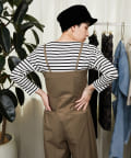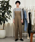上品な光沢感のあるツイル素材を使用したオールインワン。