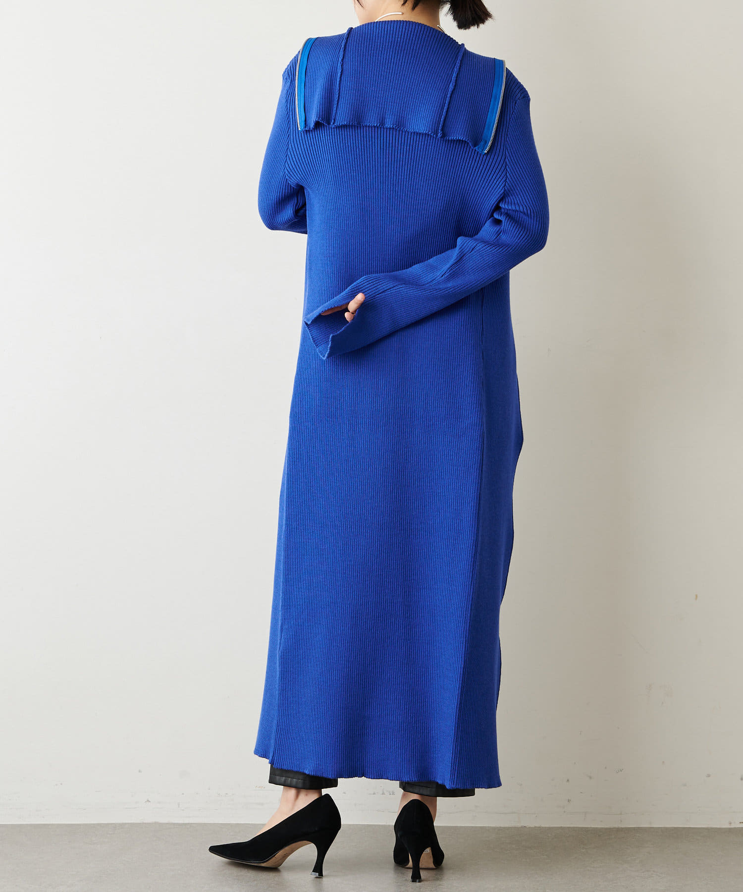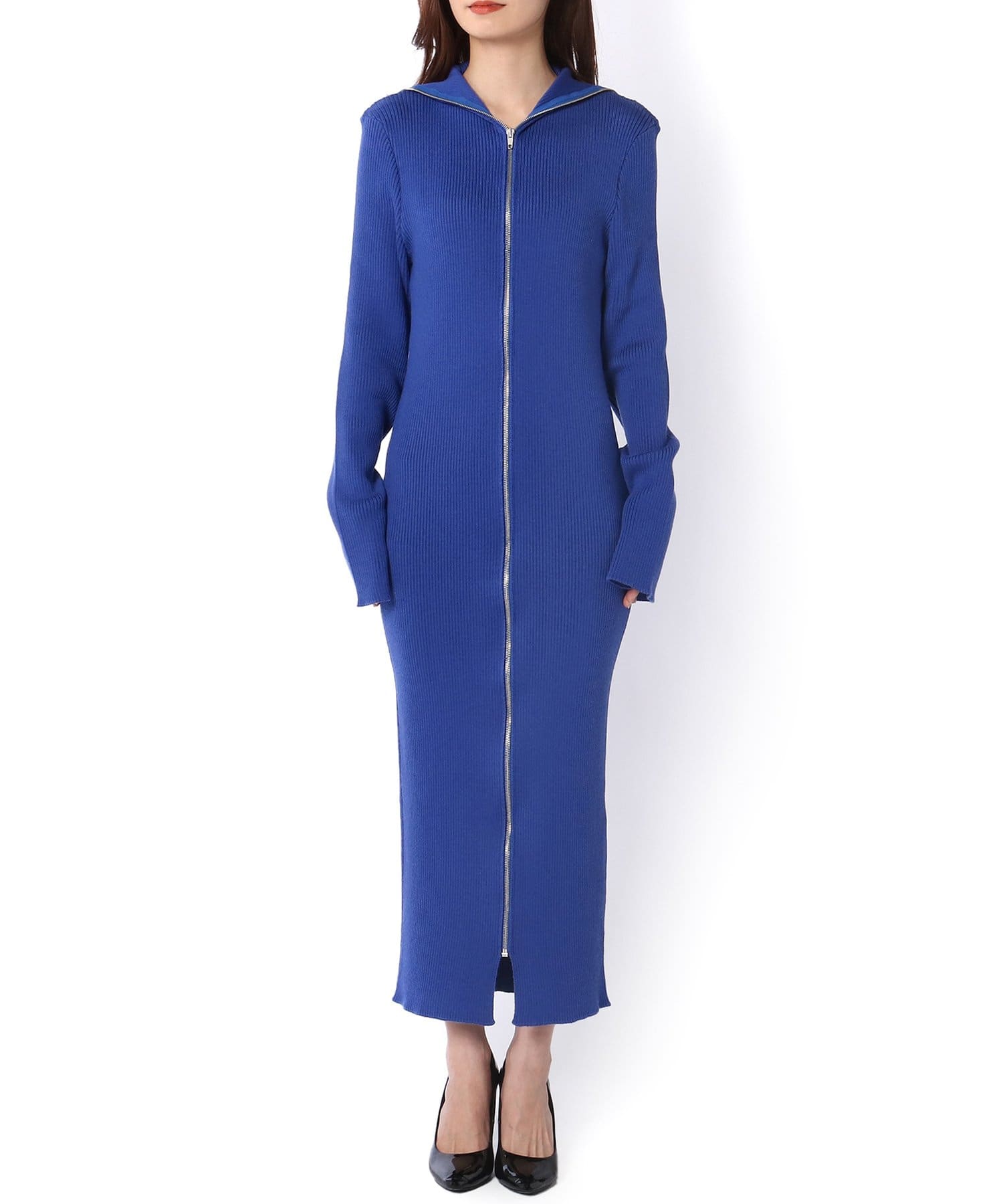 ■ジップアップデザインが目を惹くロングニットワンピース。