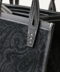 オールブラックのデザインにホワイトのステッチが映えるデザインで、さりげなく浮かび上がるペイズリー柄が上品なアクセントをプラスしてくれます。