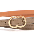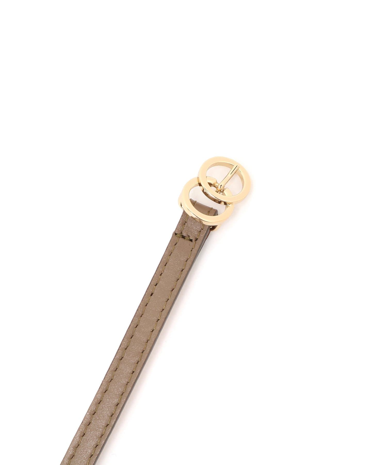 細めのレザーベルトにゴールドバックルを合わせたデザインが、洗練された品のある女性らしい印象を与えます。