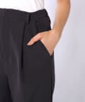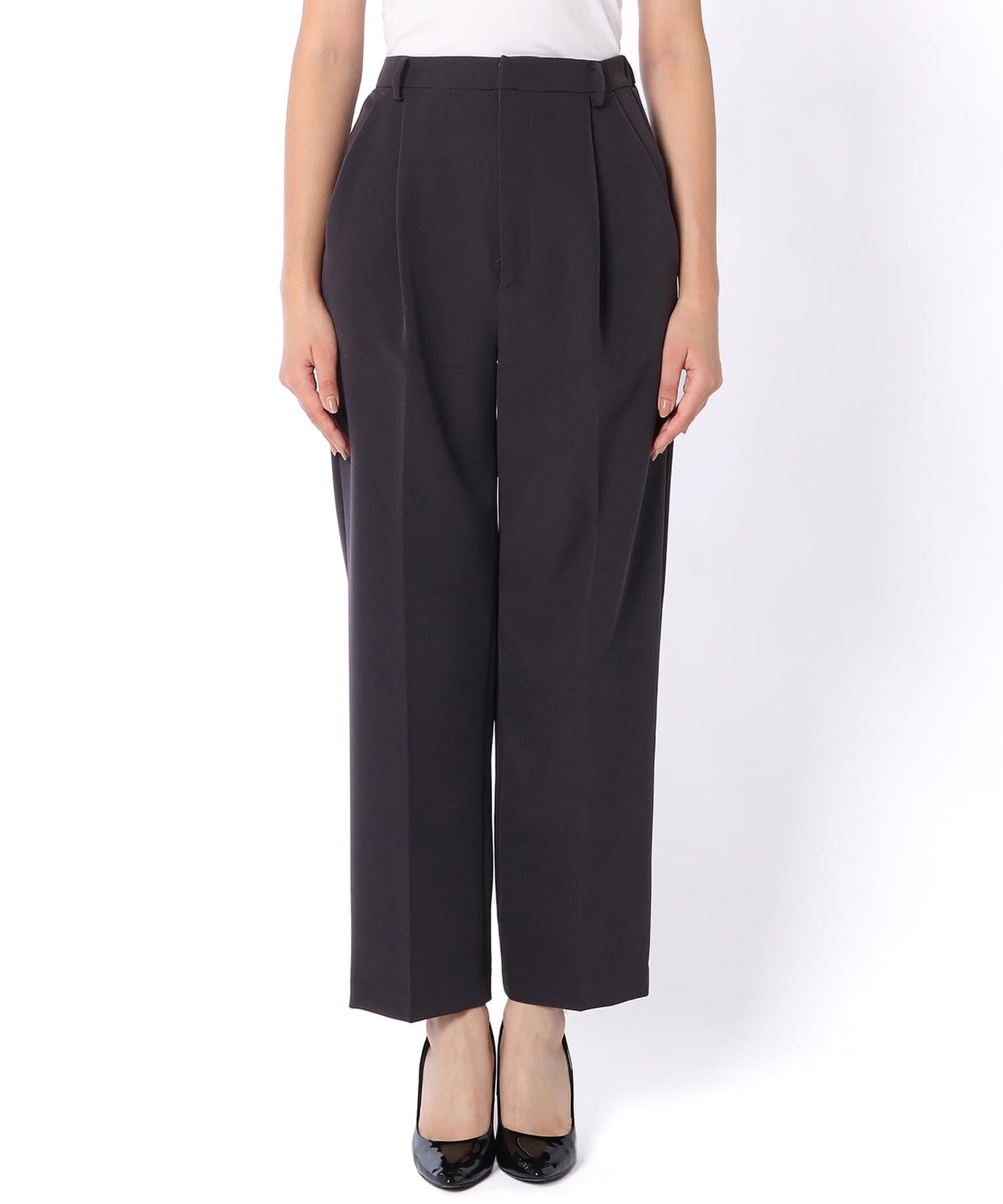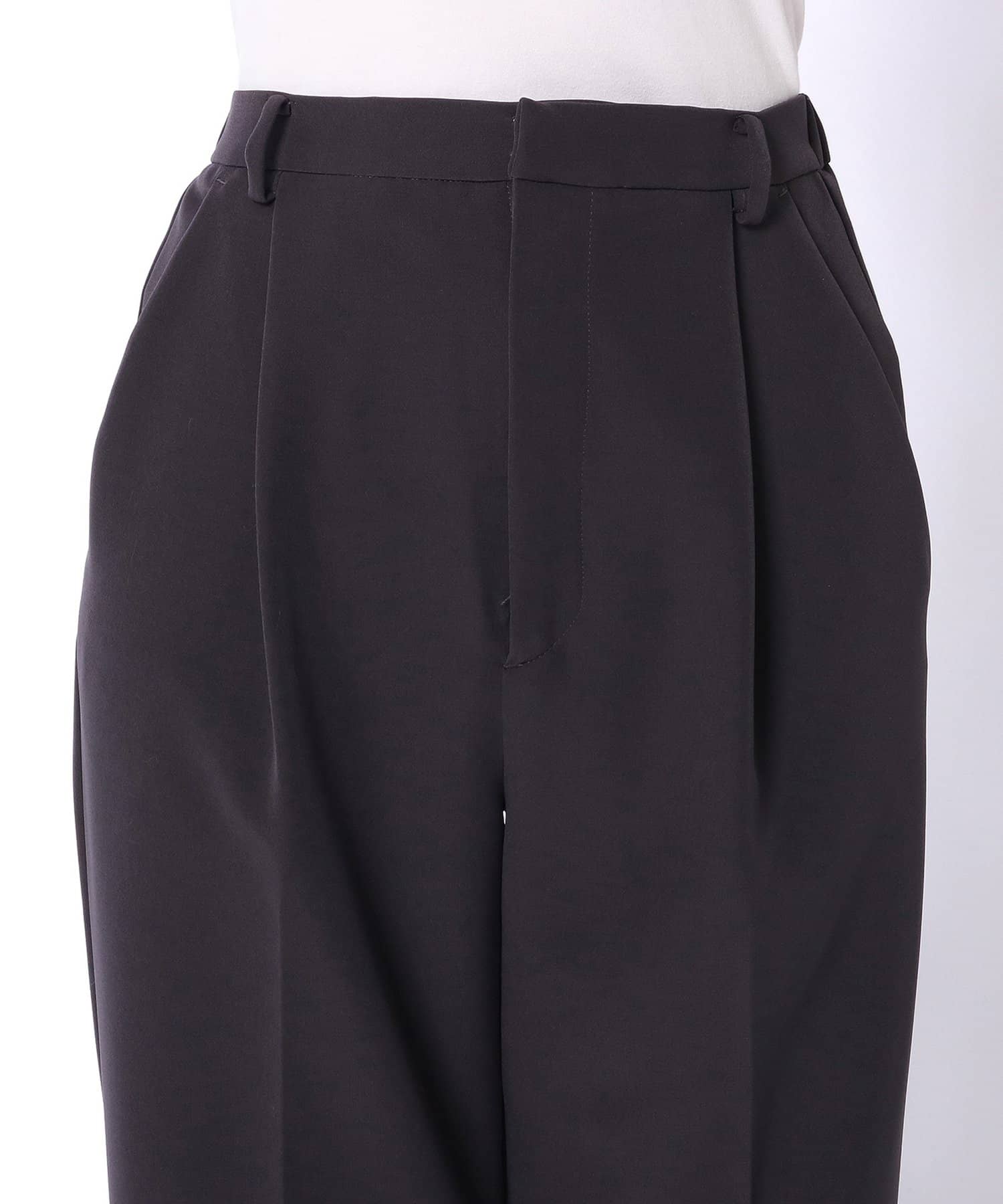 ■太めストレートレッグが旬な表情のタックパンツ。