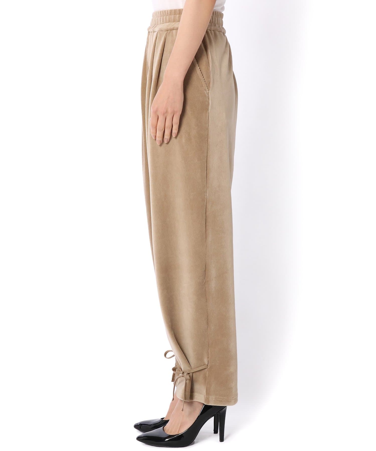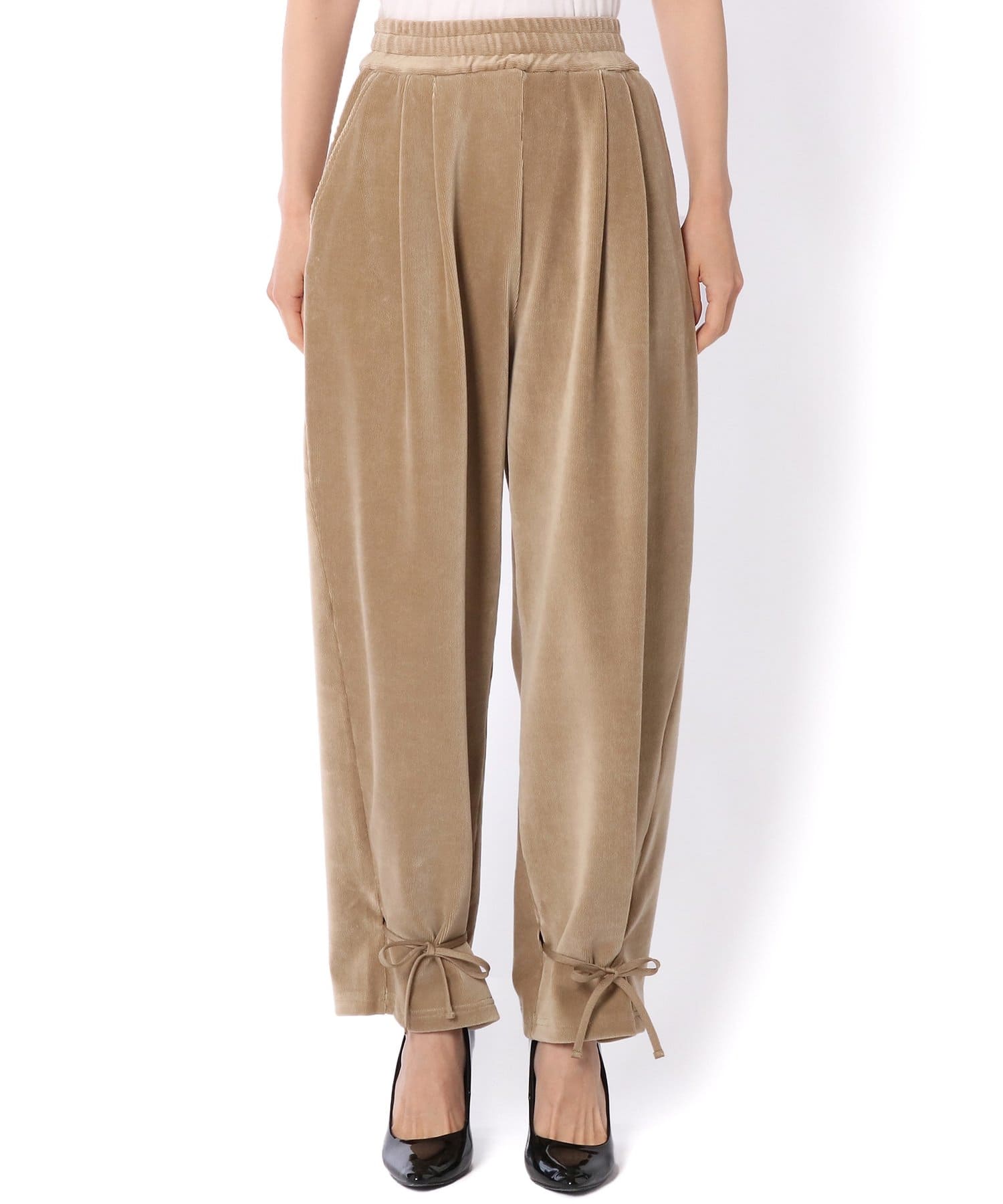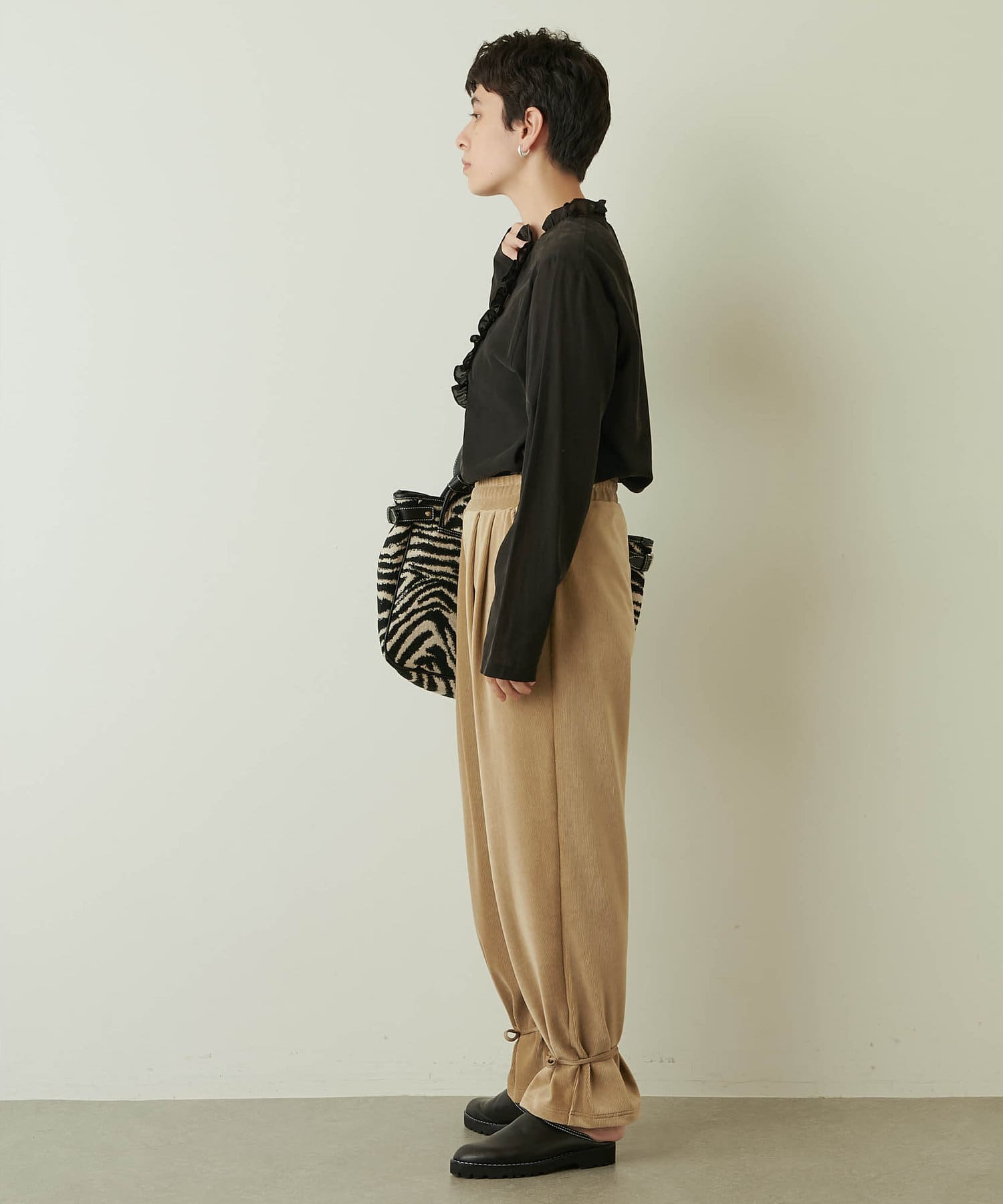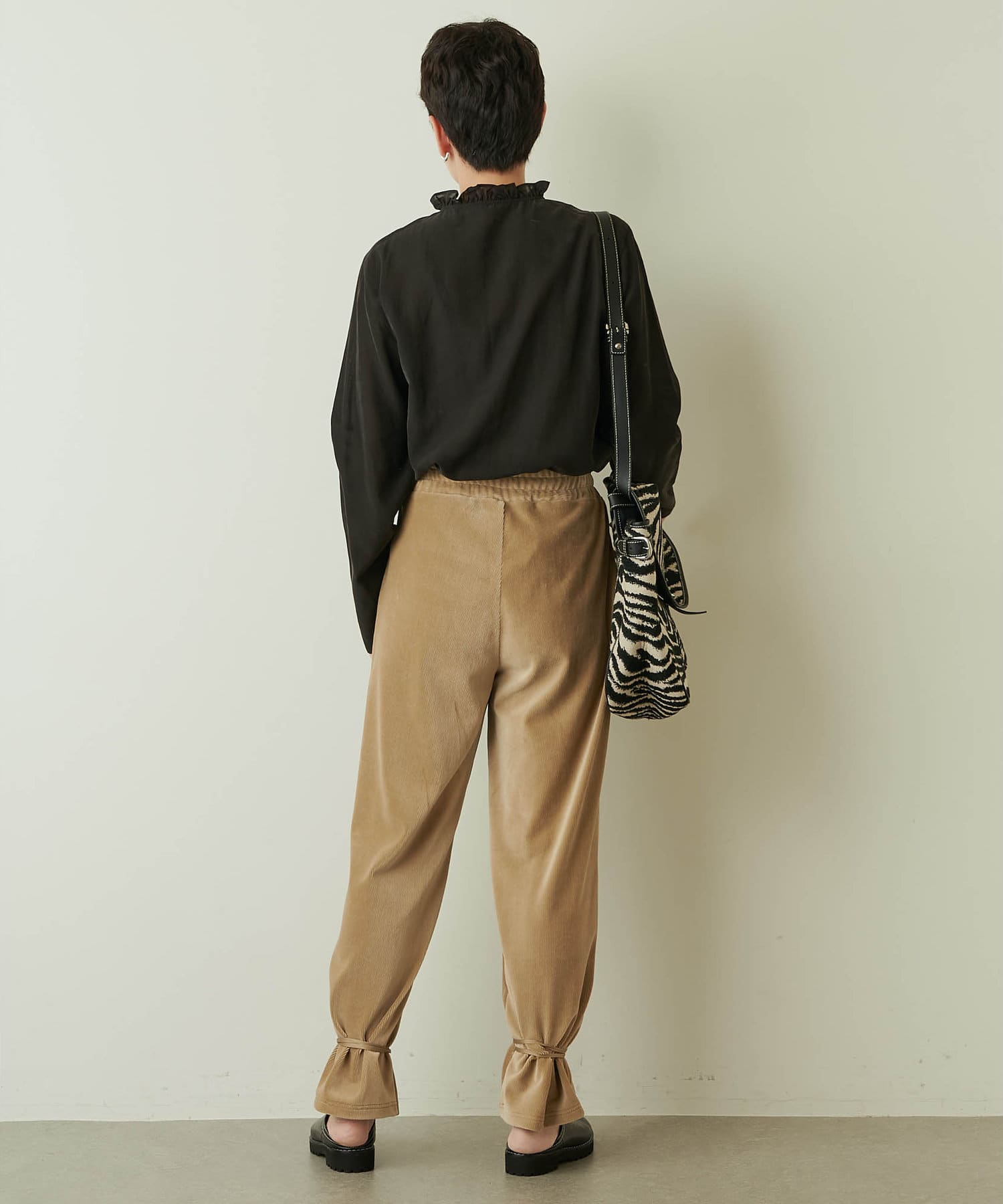 ■足首位置に配した共布のストリングは取り外したり、足首を絞ってポイントを持たせたりとシルエットのアレンジを楽しめるデザイン。