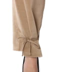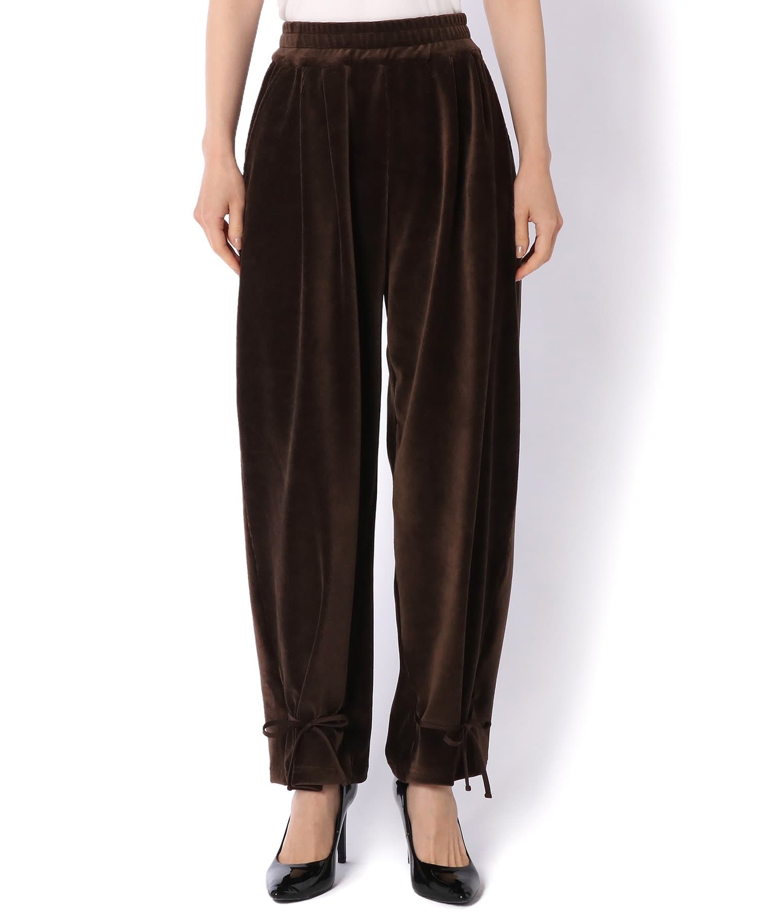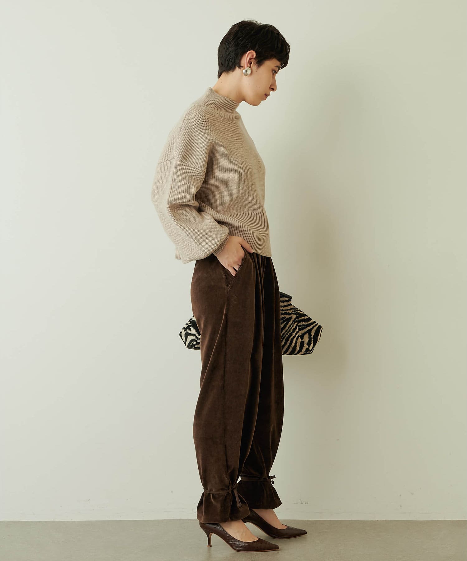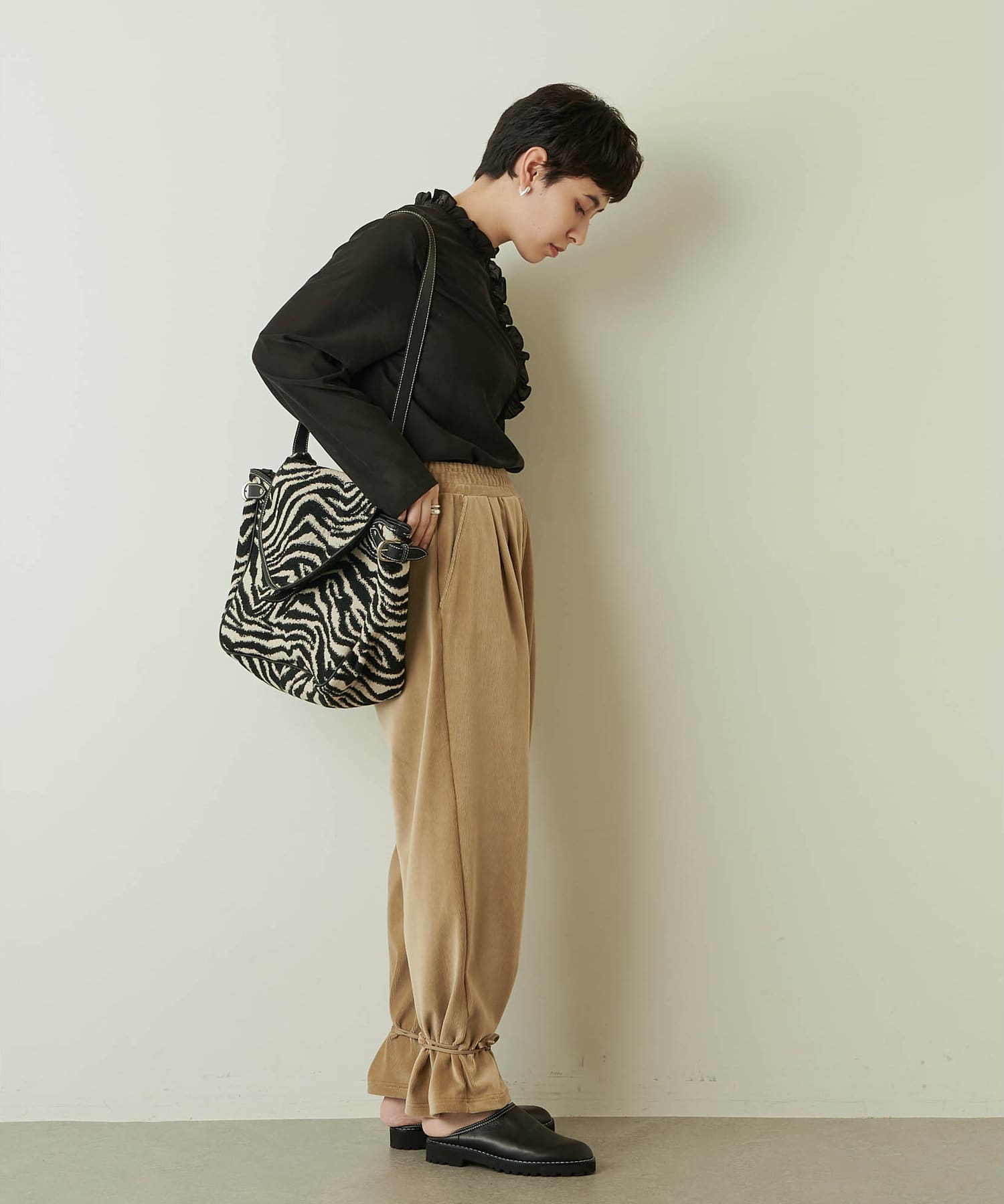 ■足首位置に配した共布のストリングは取り外したり、足首を絞ってポイントを持たせたりとシルエットのアレンジを楽しめるデザイン。