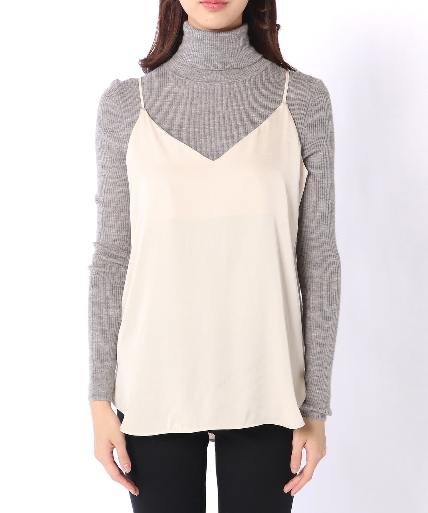 インナー使いに欠かせないキャミソール。程よい光沢で女性らしさを演出してくれます。調節も出来るので1枚着としても着用して頂けます。