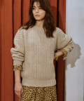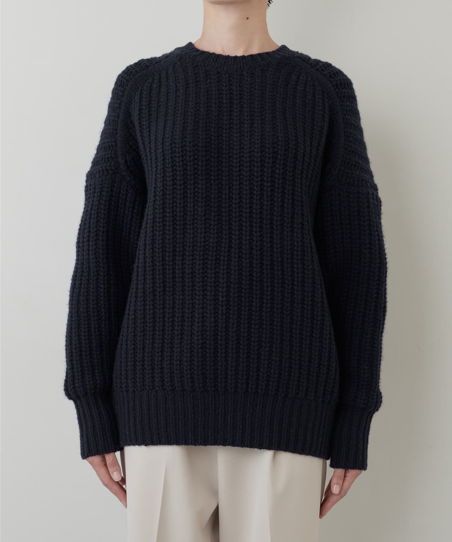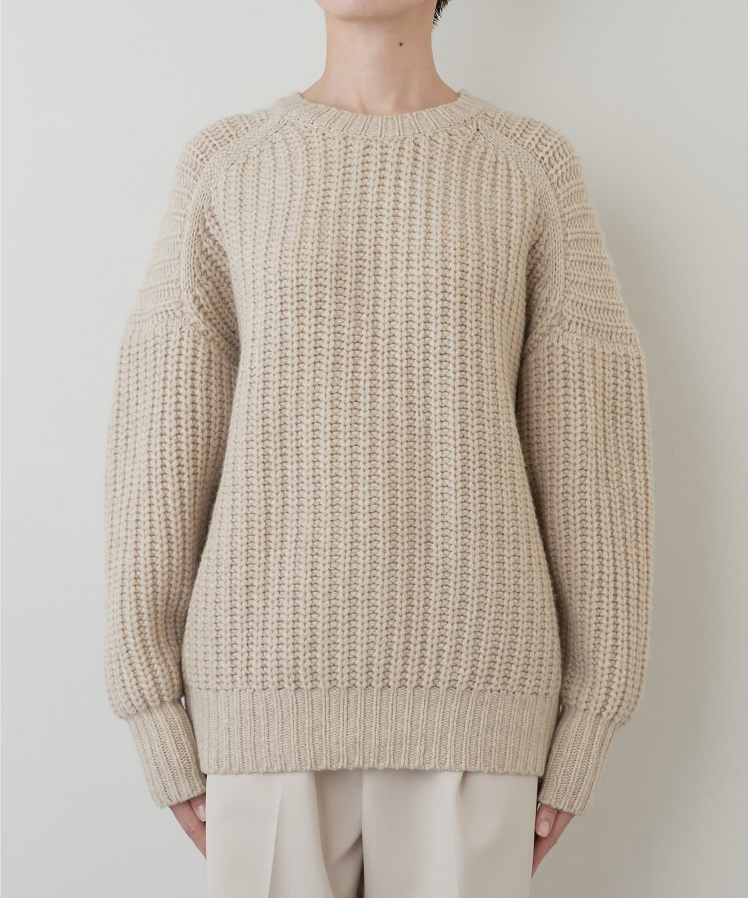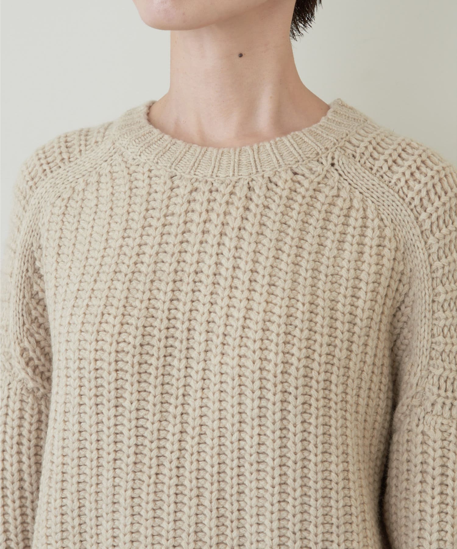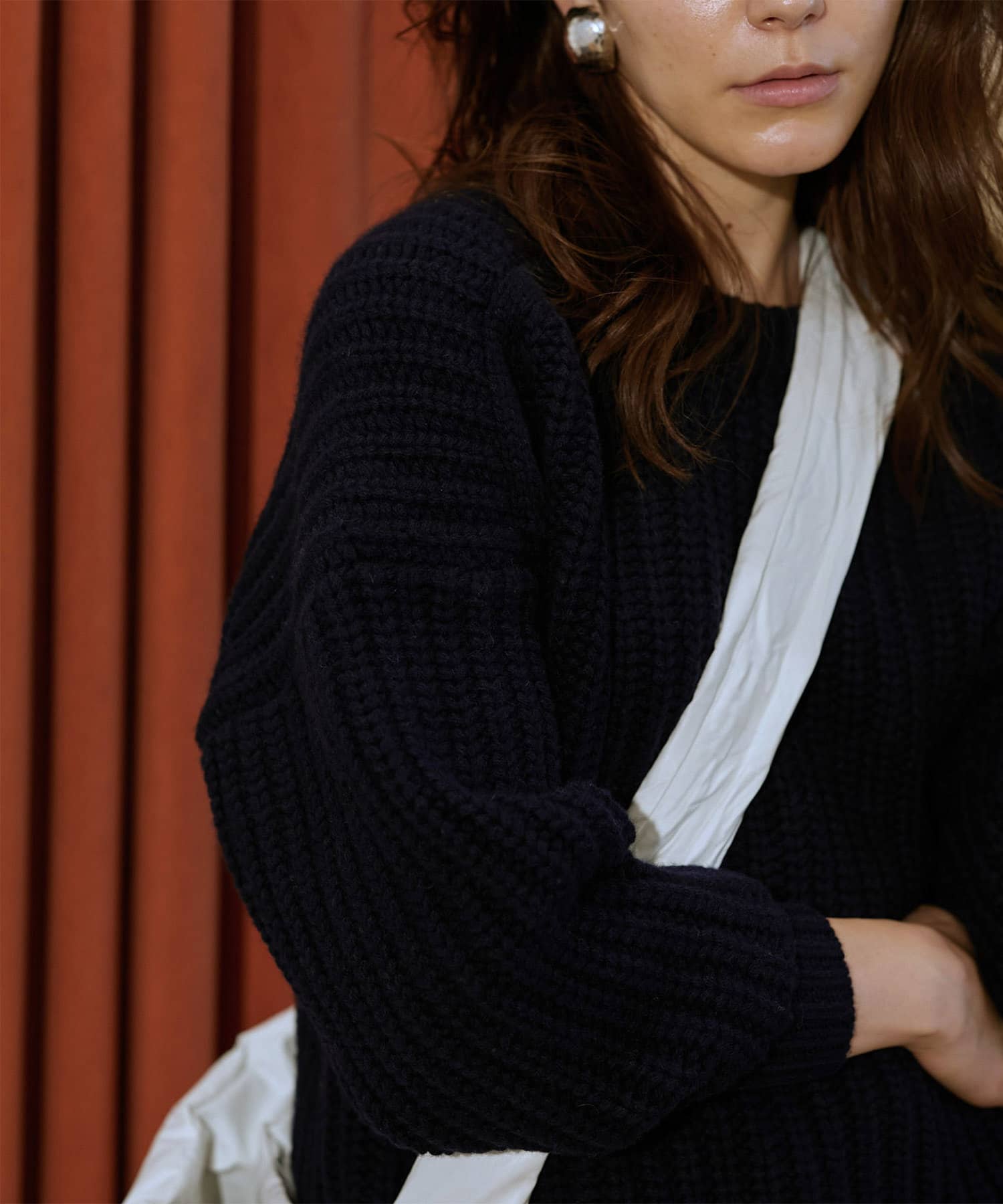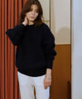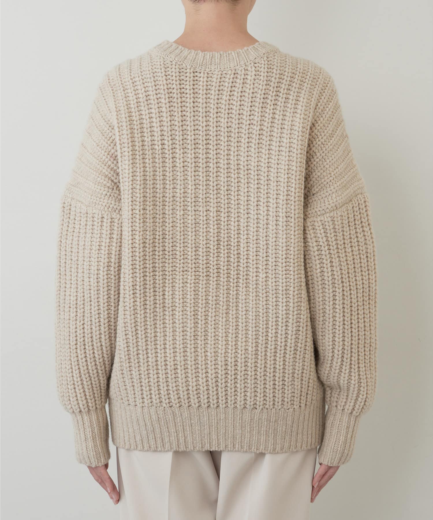 畦編みの表情がボリュームシルエットを際立たせるニットプルオーバー。