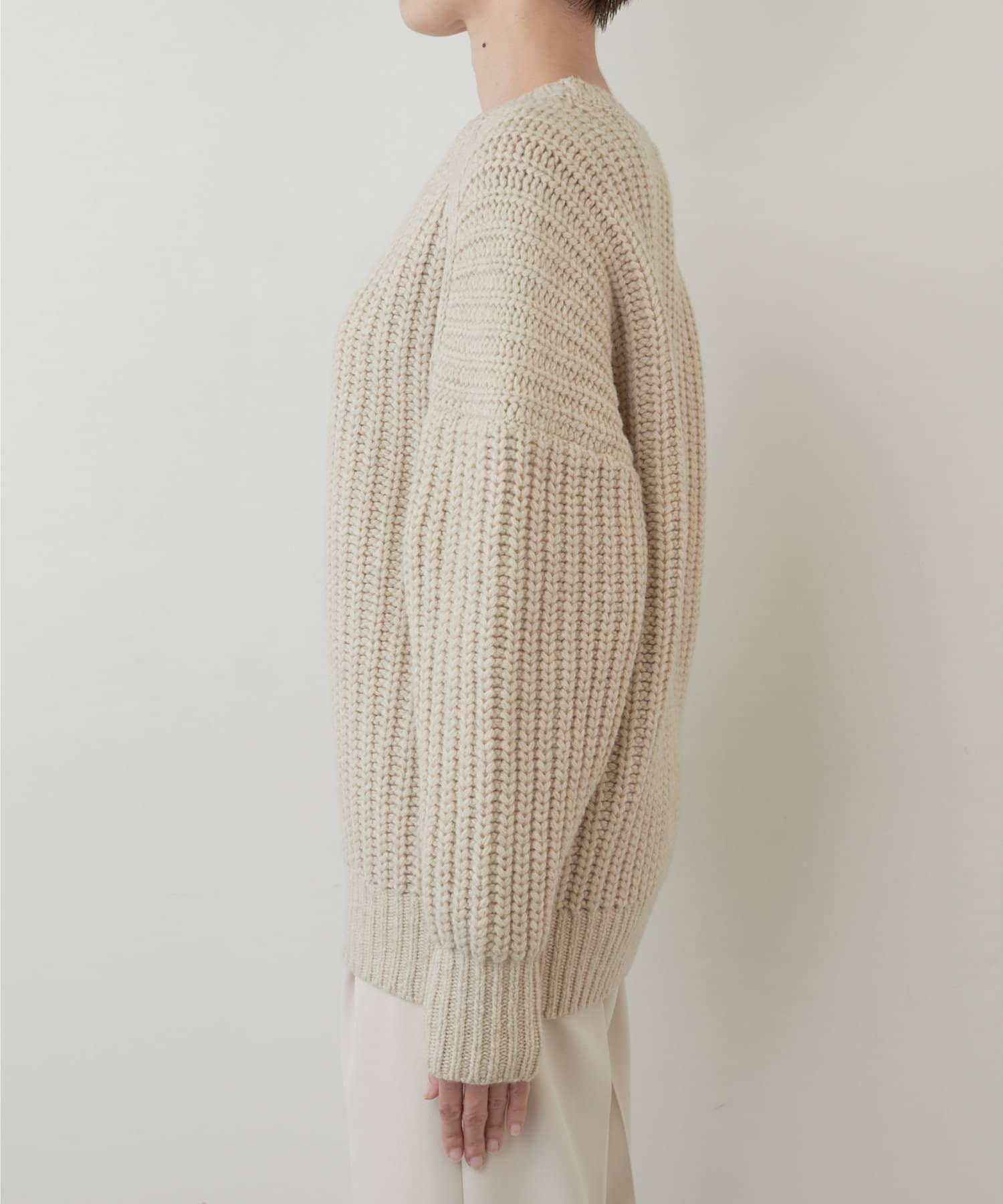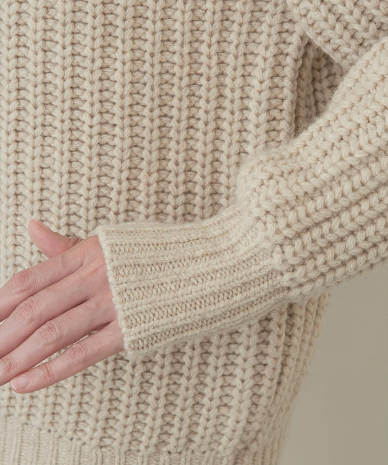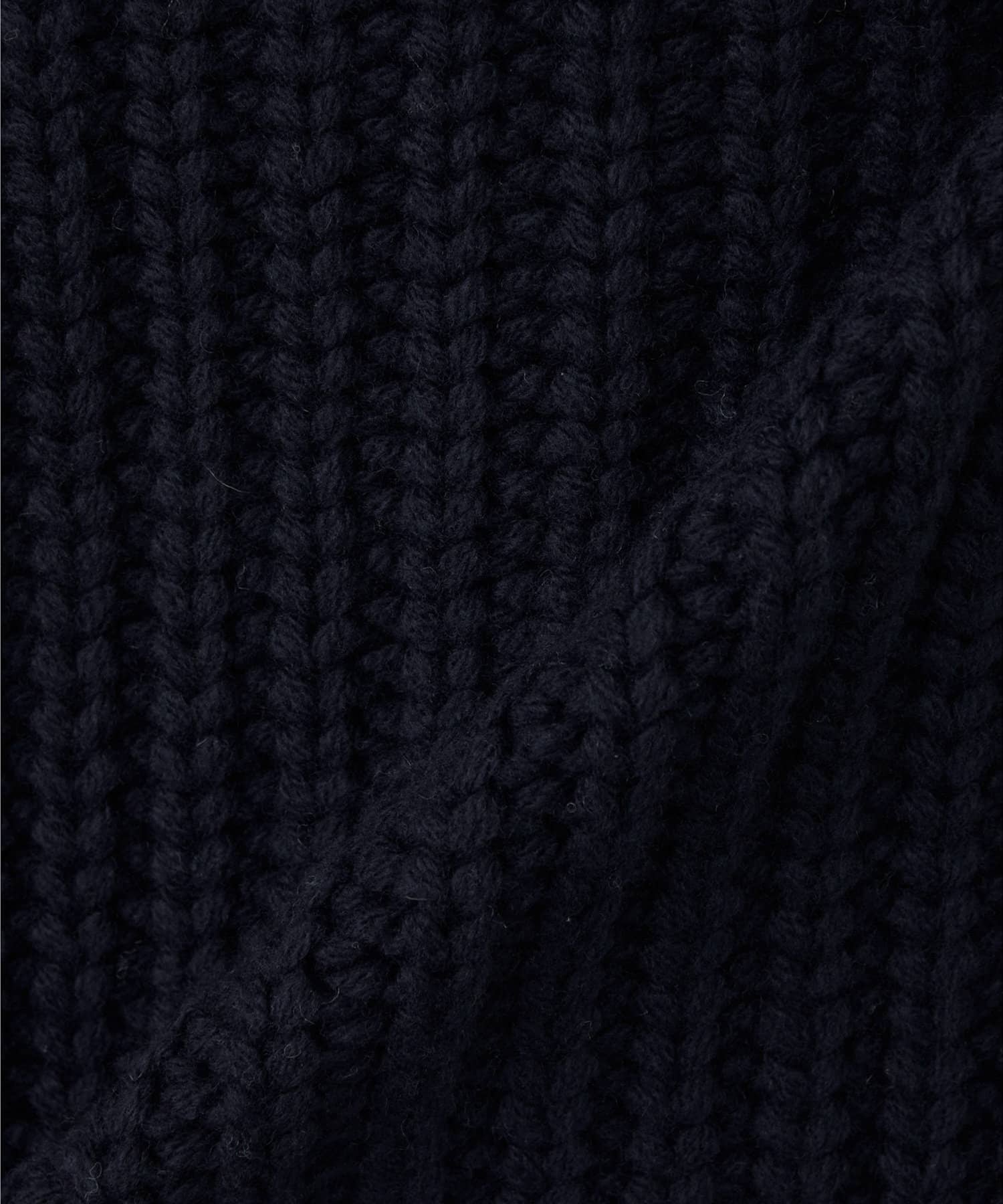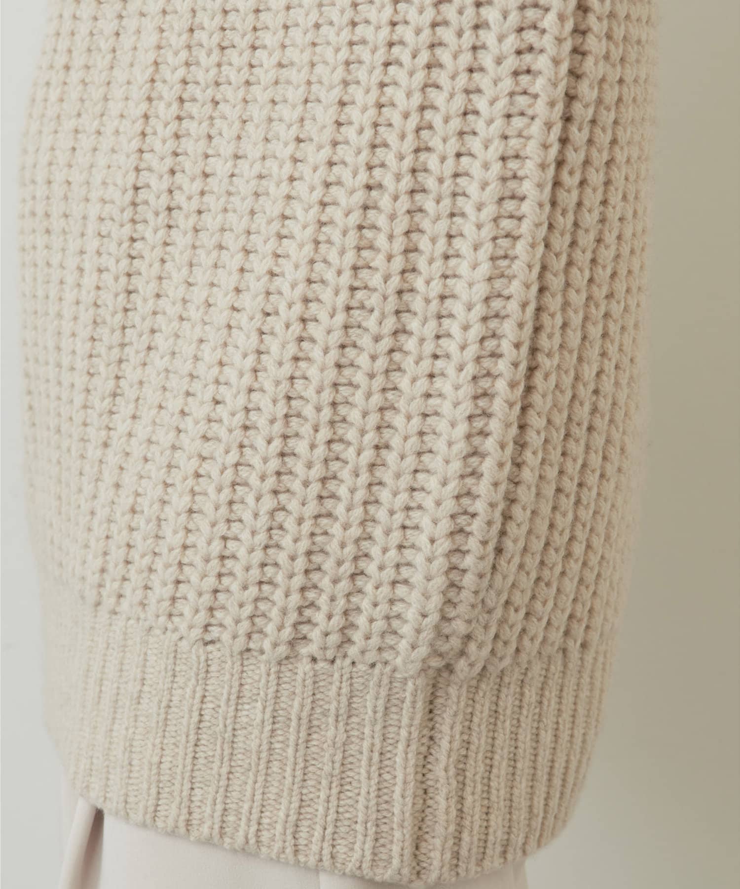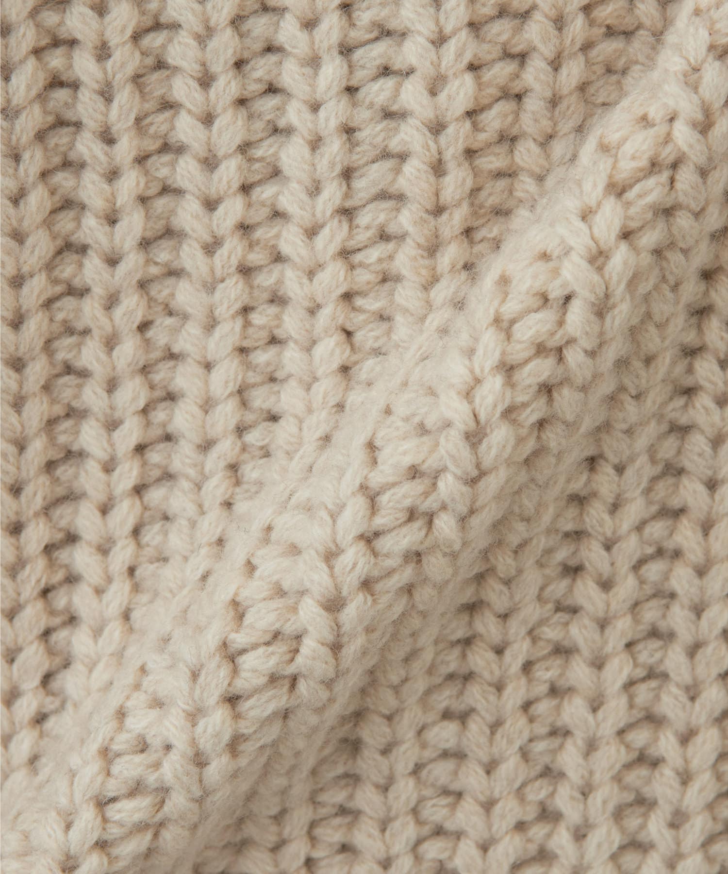 表情のある畦編みの風合いによってボリューム感を表現し、シンプルなデザインながらもコーディネートの主役になる一枚です。