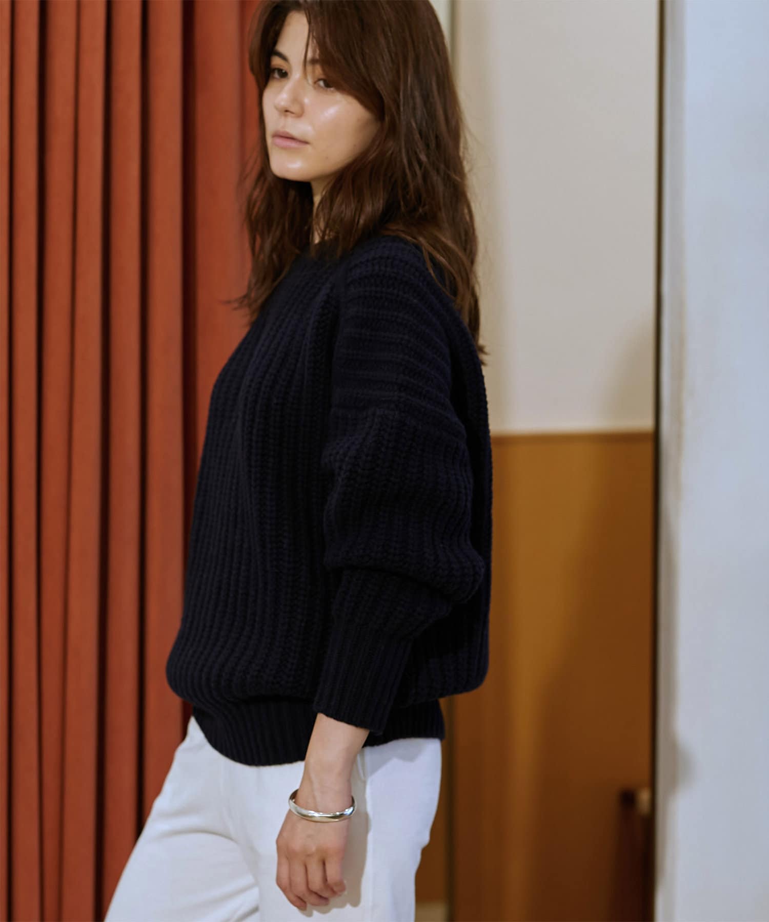 一枚で着るのはもちろん、シャツやワンピースとのレイヤード使いにも重宝する冬の定番ニットです。