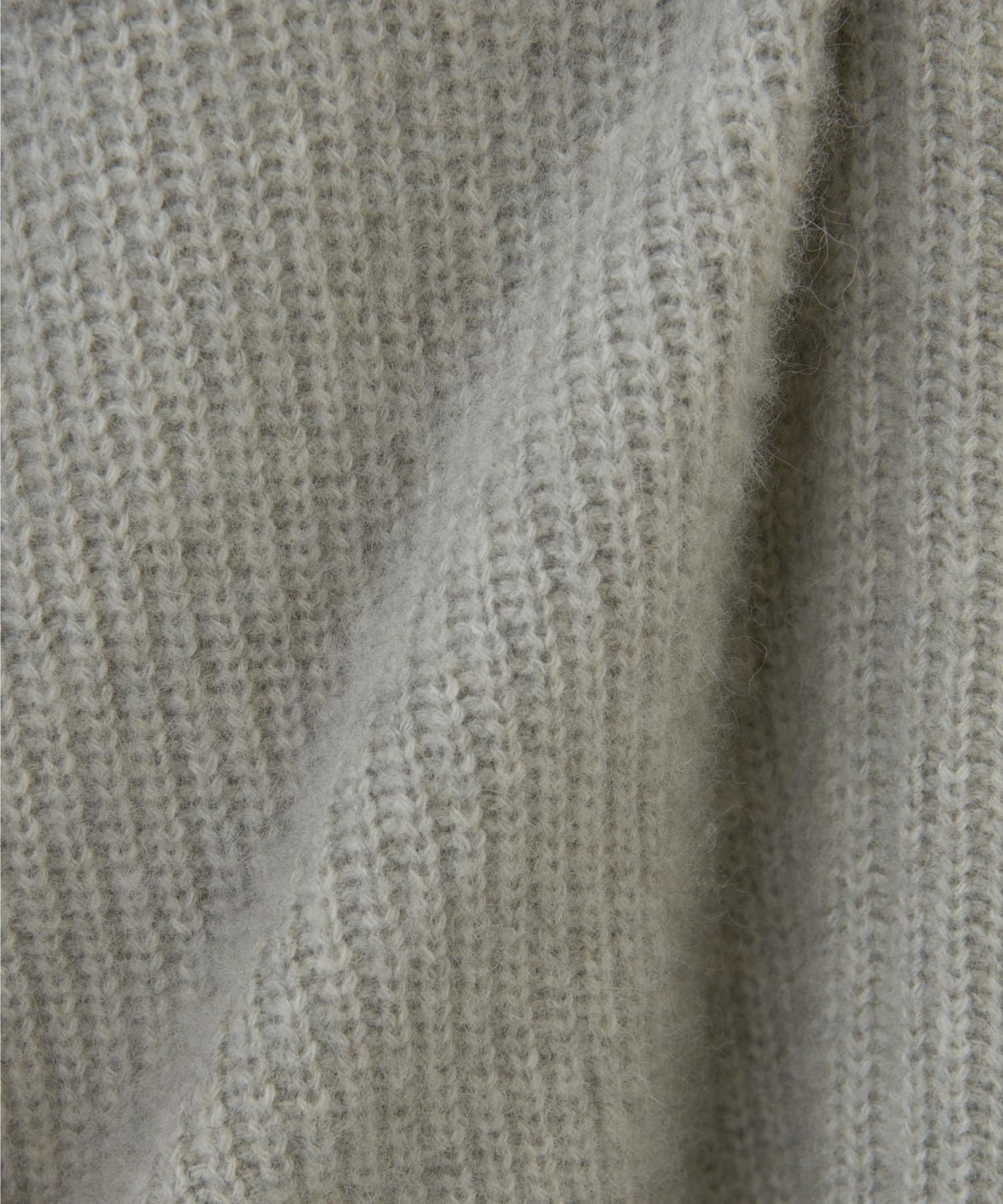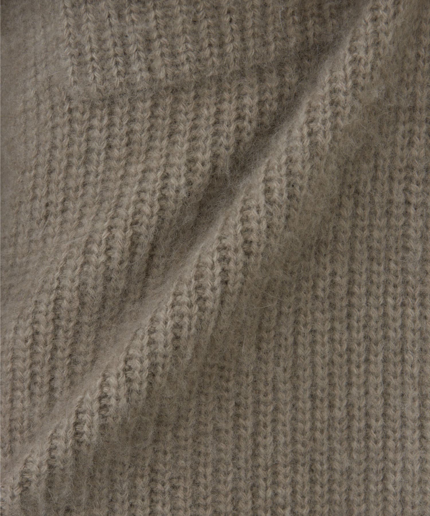 軽く柔らかな肌触りは着心地も抜群で、アンゴラほど毛抜けもなく保温性に優れた、機能的にもうれしい一着。