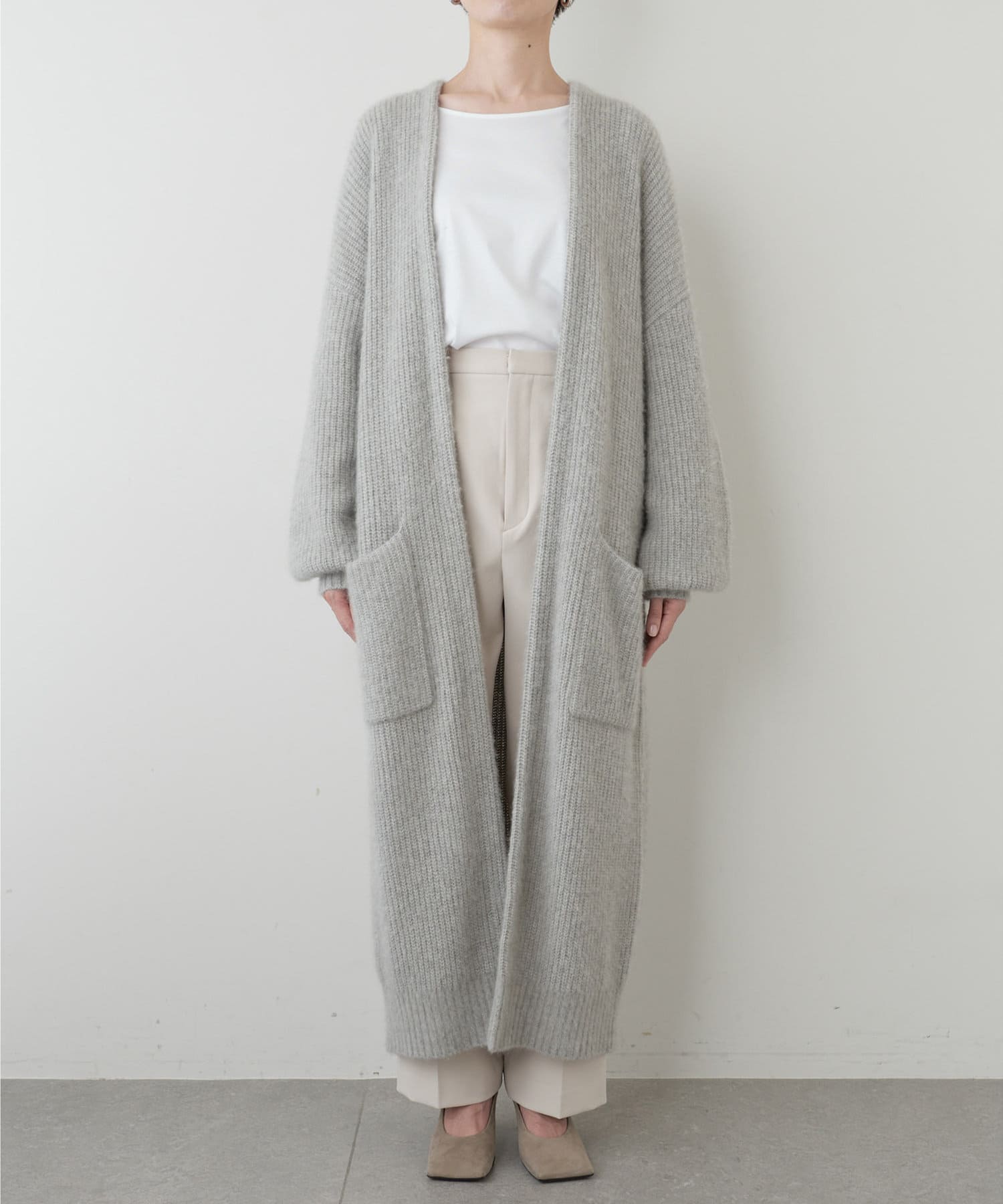 一枚で着映えるラクーンニットの上質ロングカーディガン