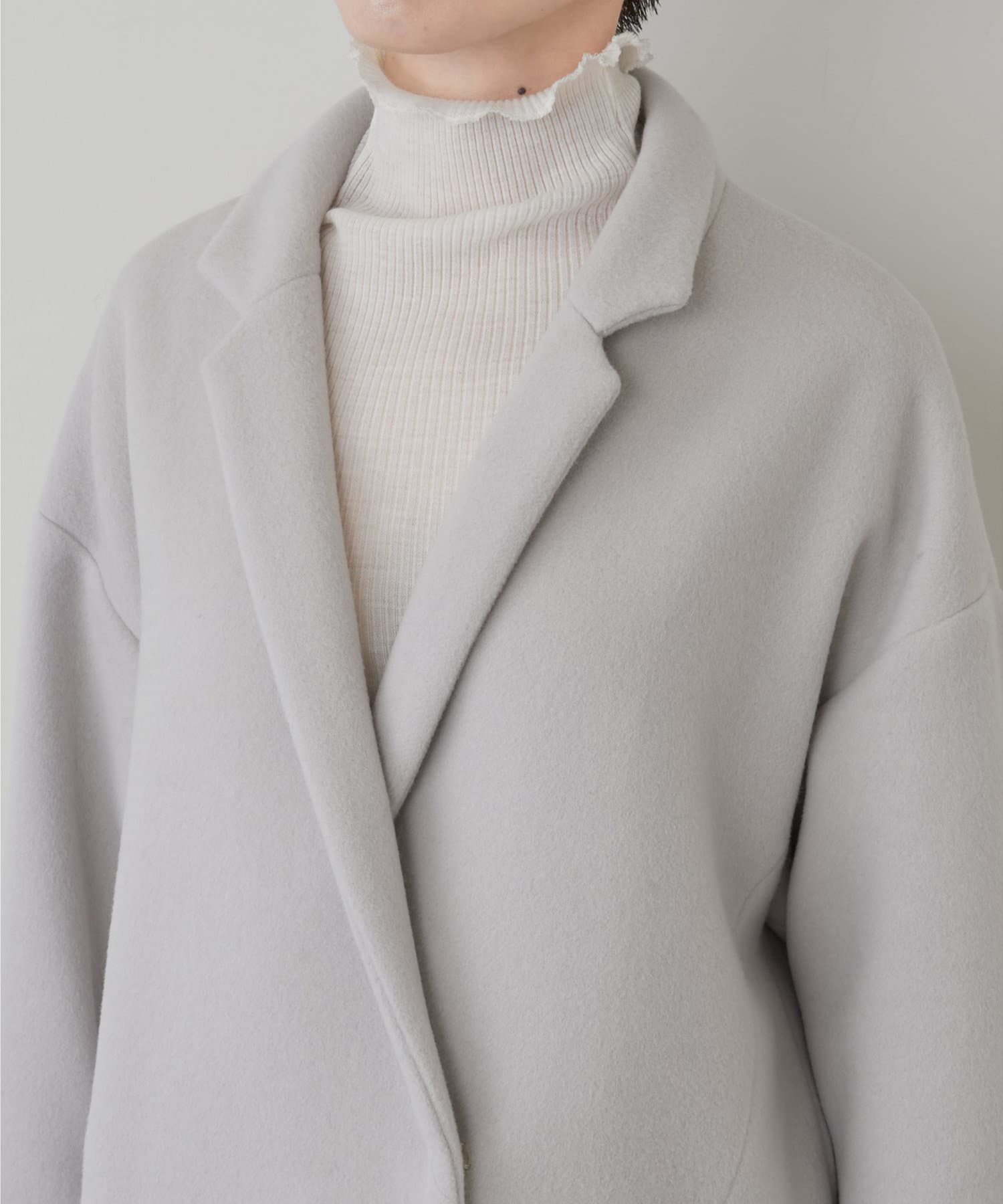 テーラードカラーをスタンドさせた衿元のディテールがシャープな印象で、フェミニンからマニッシュなスタイリングまで幅広くマッチします。