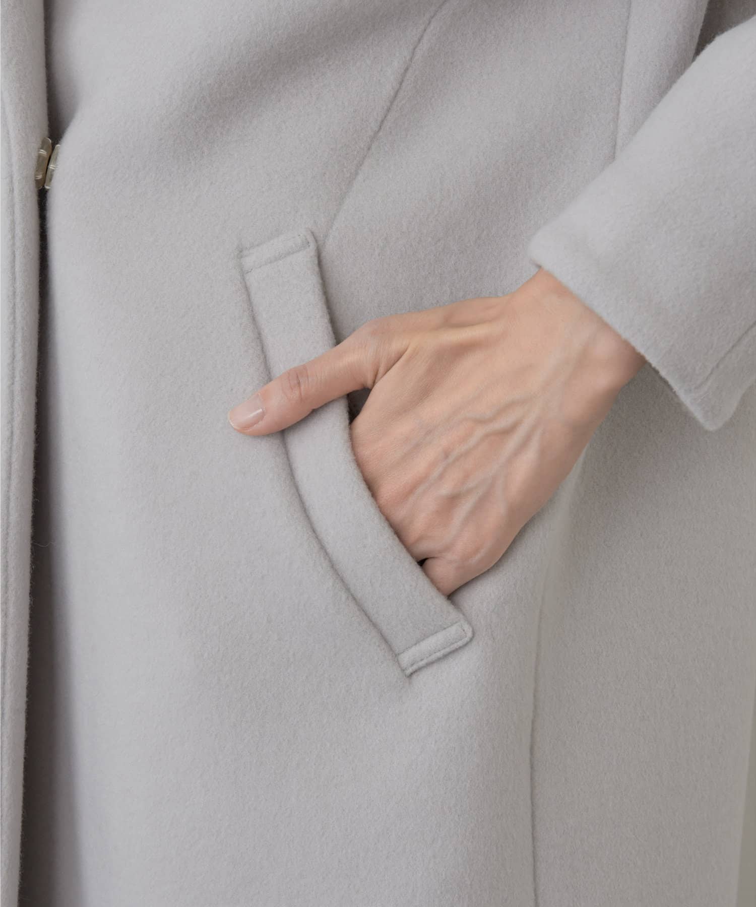しっかりと厚みがありながら、着ぶくれせずにすっきりと見えるシルエットの美しさが特徴で、ロングの着丈でも重たさを感じさせないデザイン。