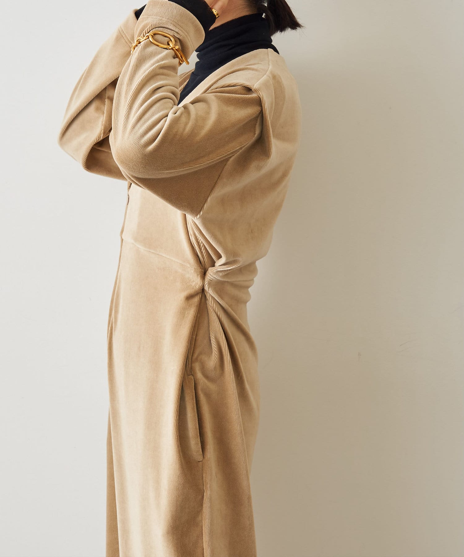 ■女性らしいリラクシーシルエットを演出する落ち感のある風合い。