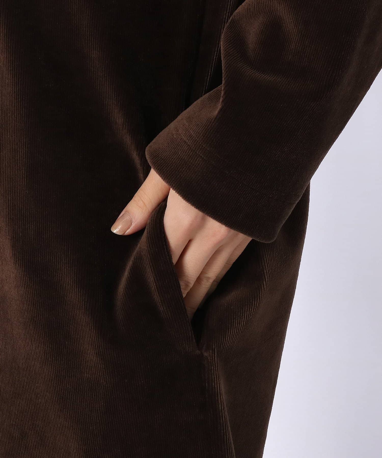 ■シーズンムードを高める、コーデュロイ風の細い畝と光沢感。