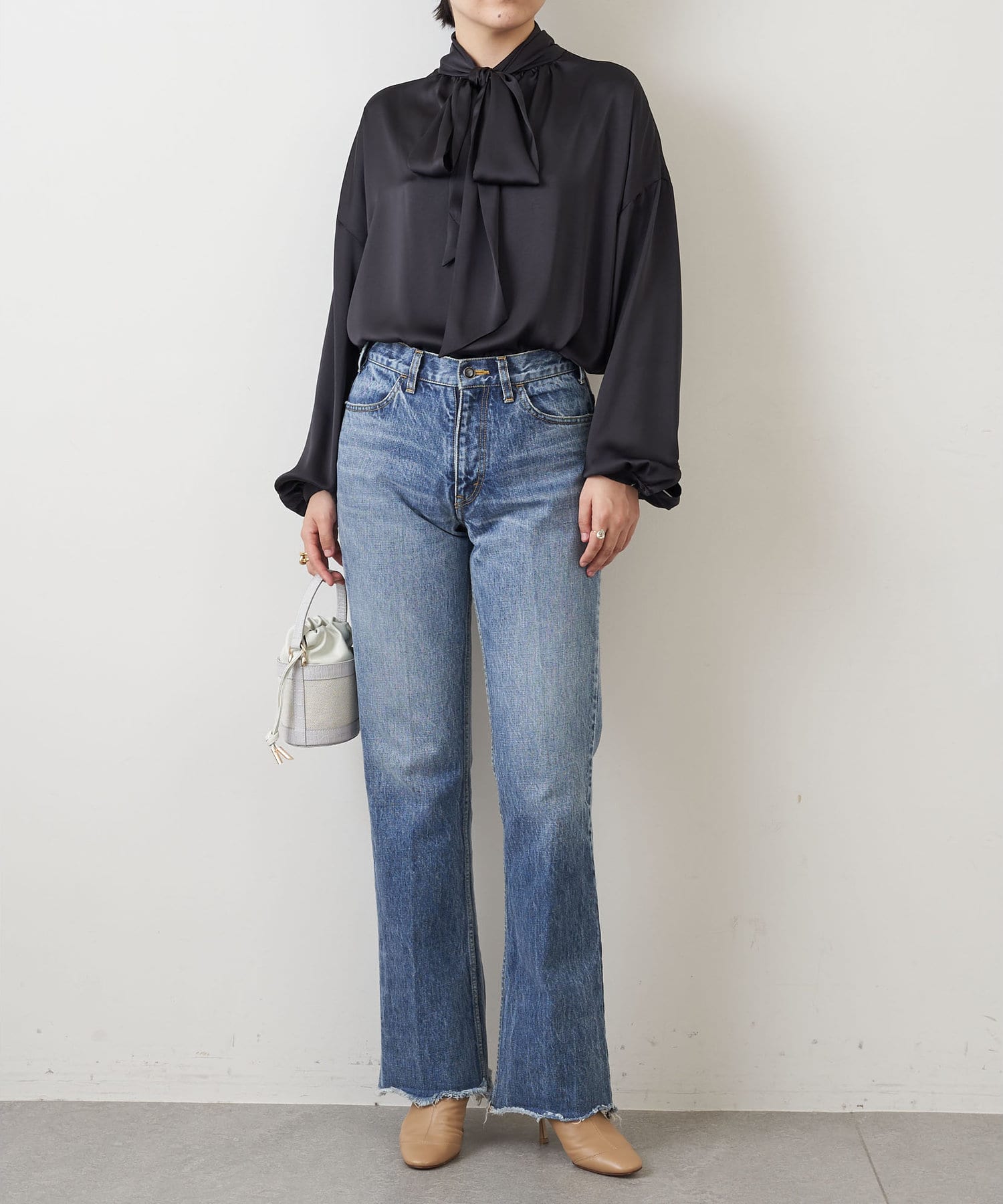 程よい力の抜け加減が様になるボウタイブラウス