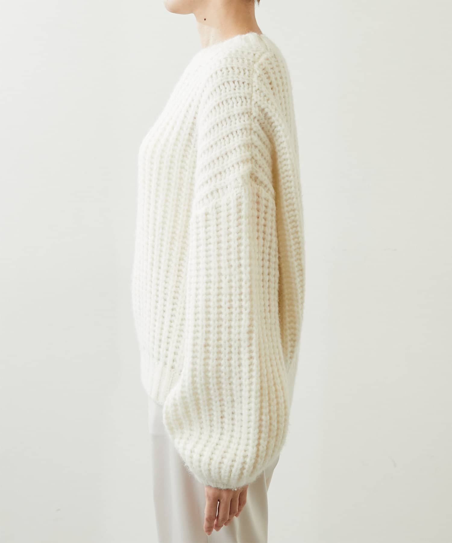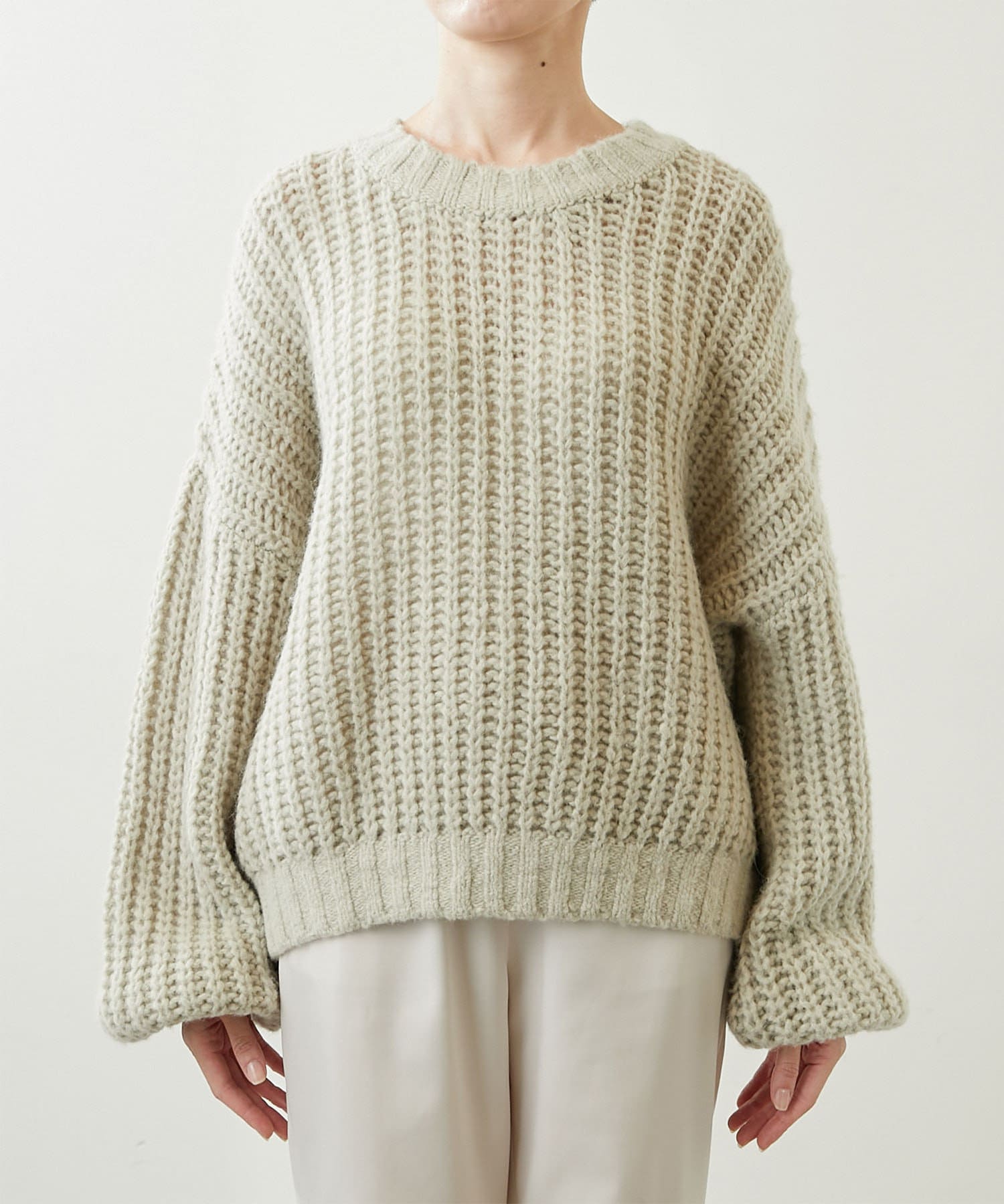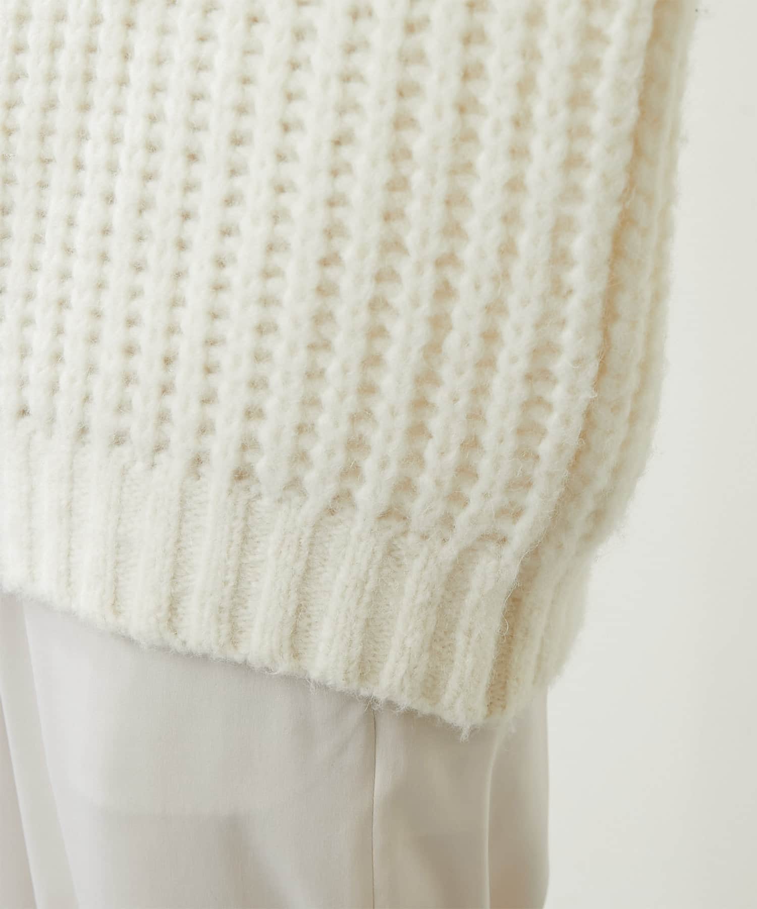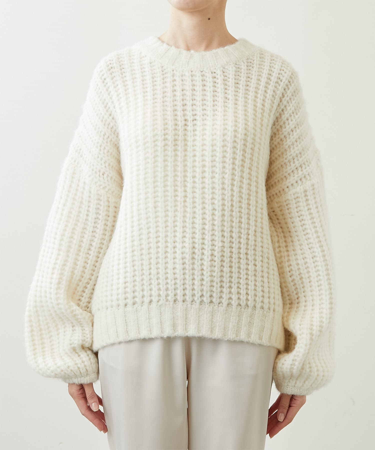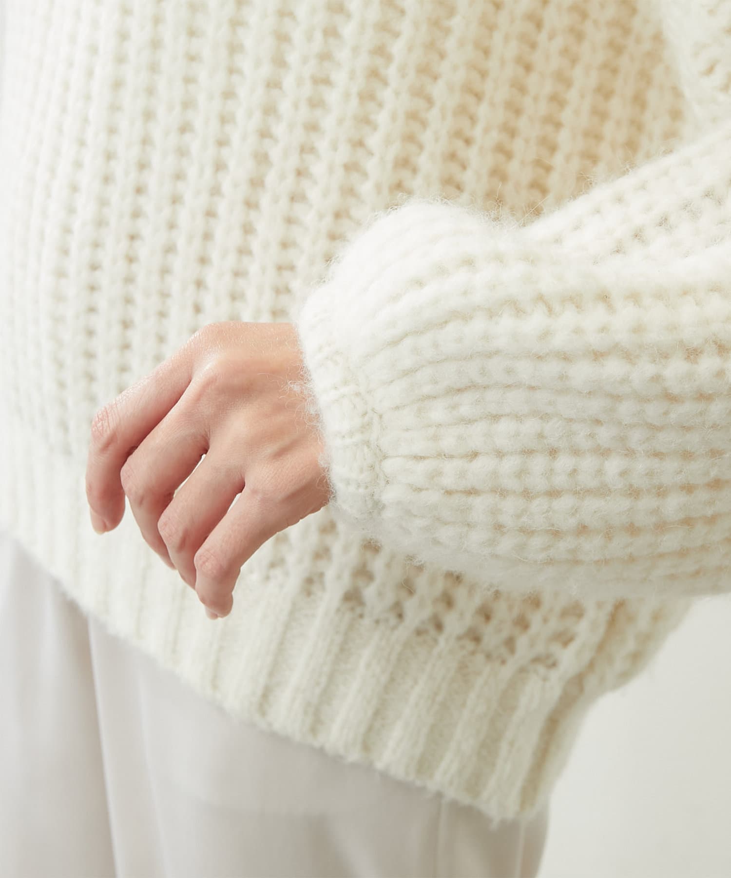 ざっくりとした編みの表情がポイントのニットプルオーバー