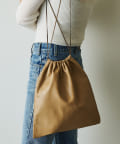 ■トレンドライクな巾着型は、ラフに持つだけで雰囲気のあるスタイリングに。