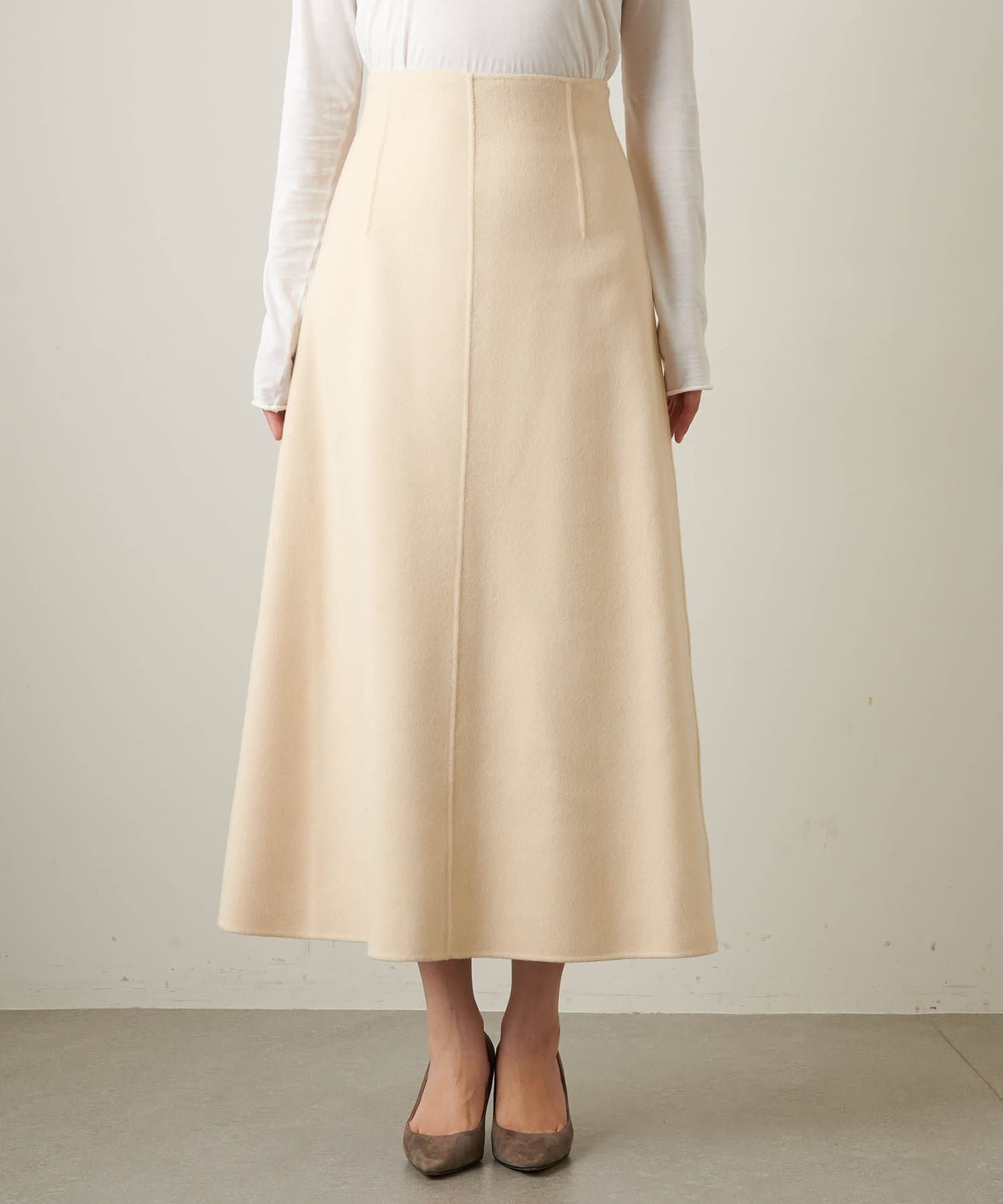 ■高級感を演出する、縫い代のないリバー仕立てのロングスカート。