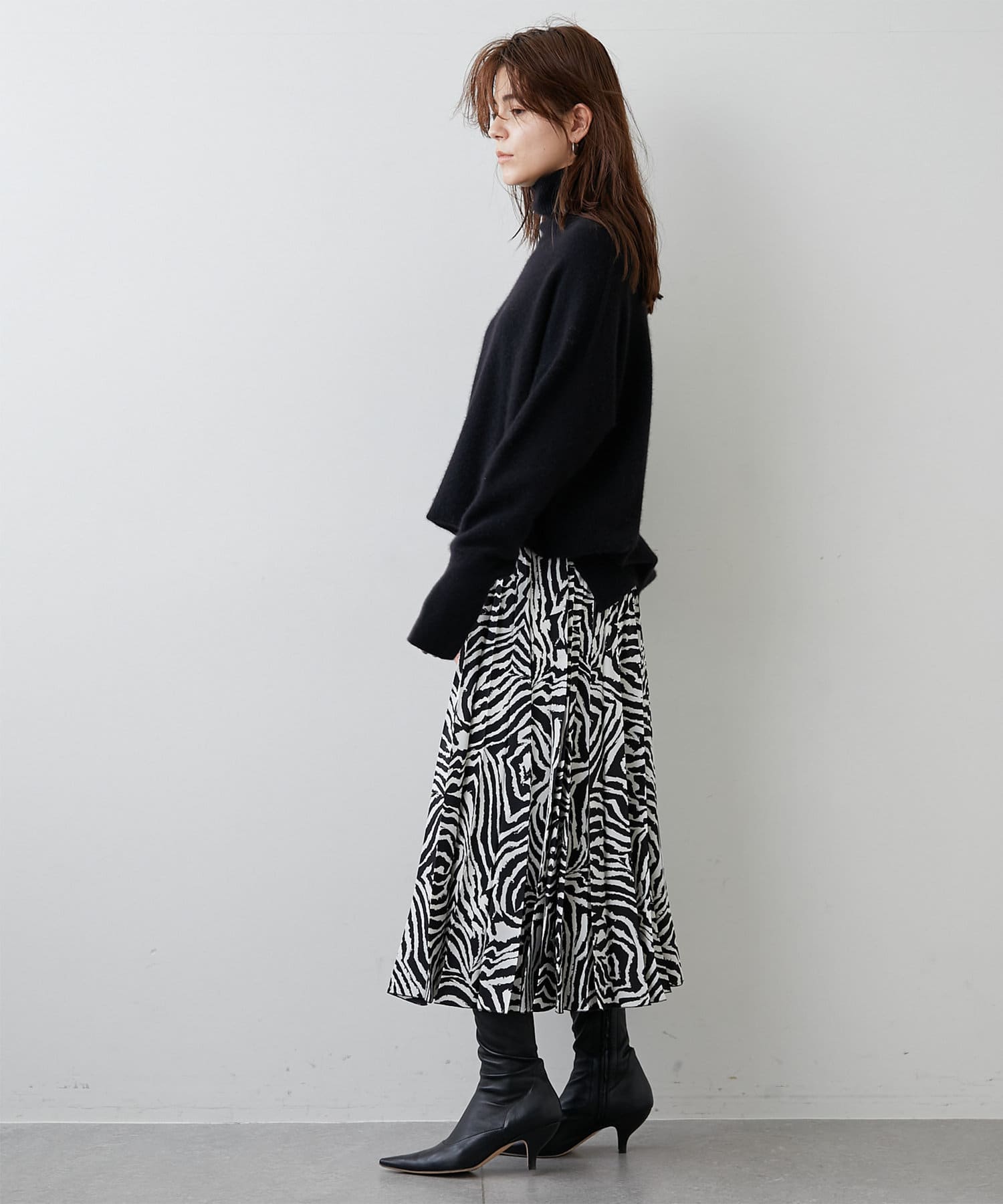 フェミニンとモードが両立する、大人のゼブラ柄スカート
