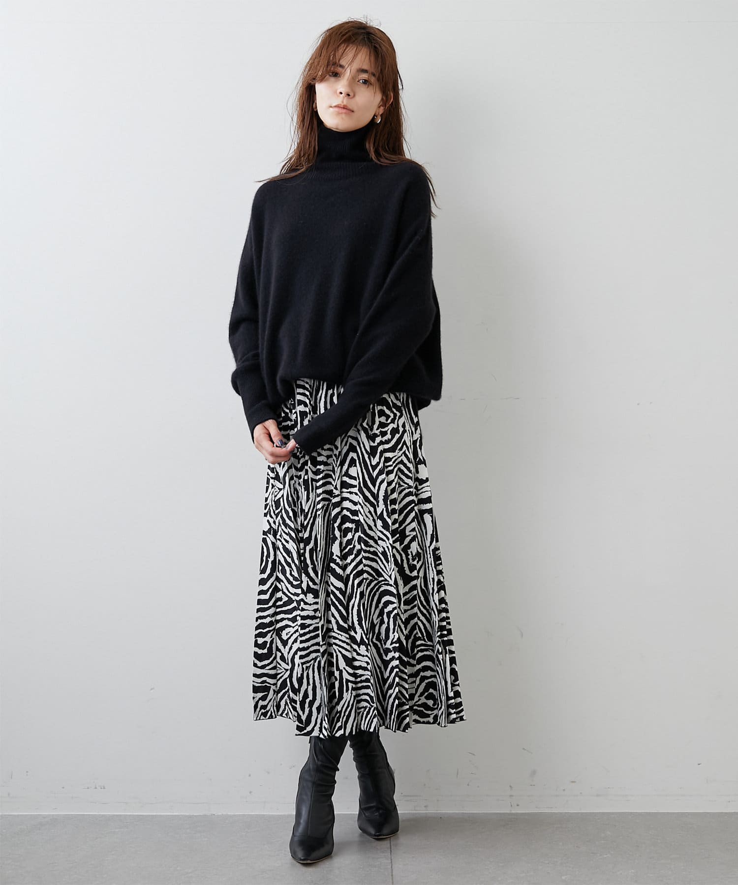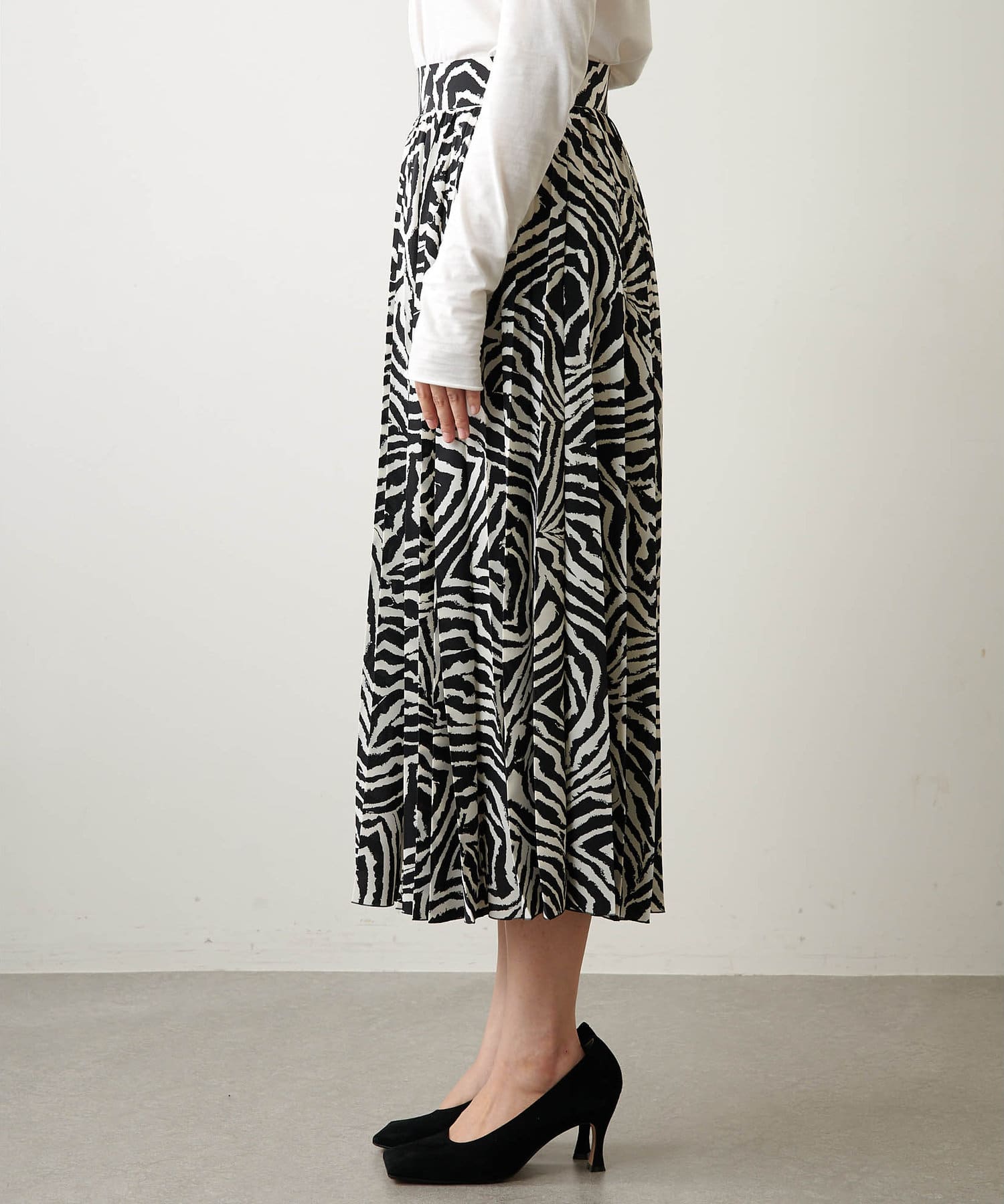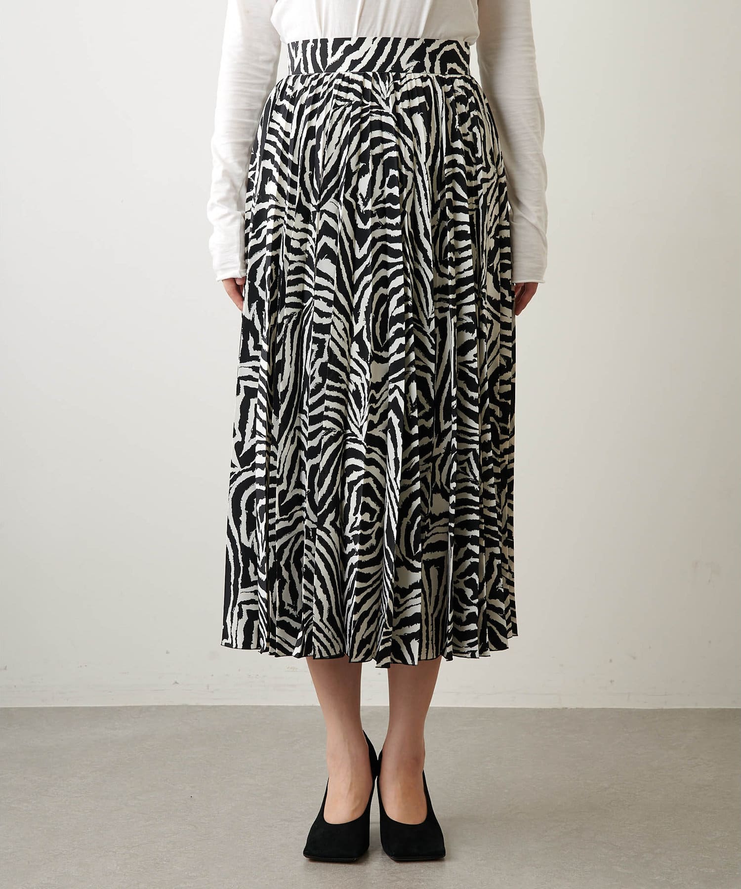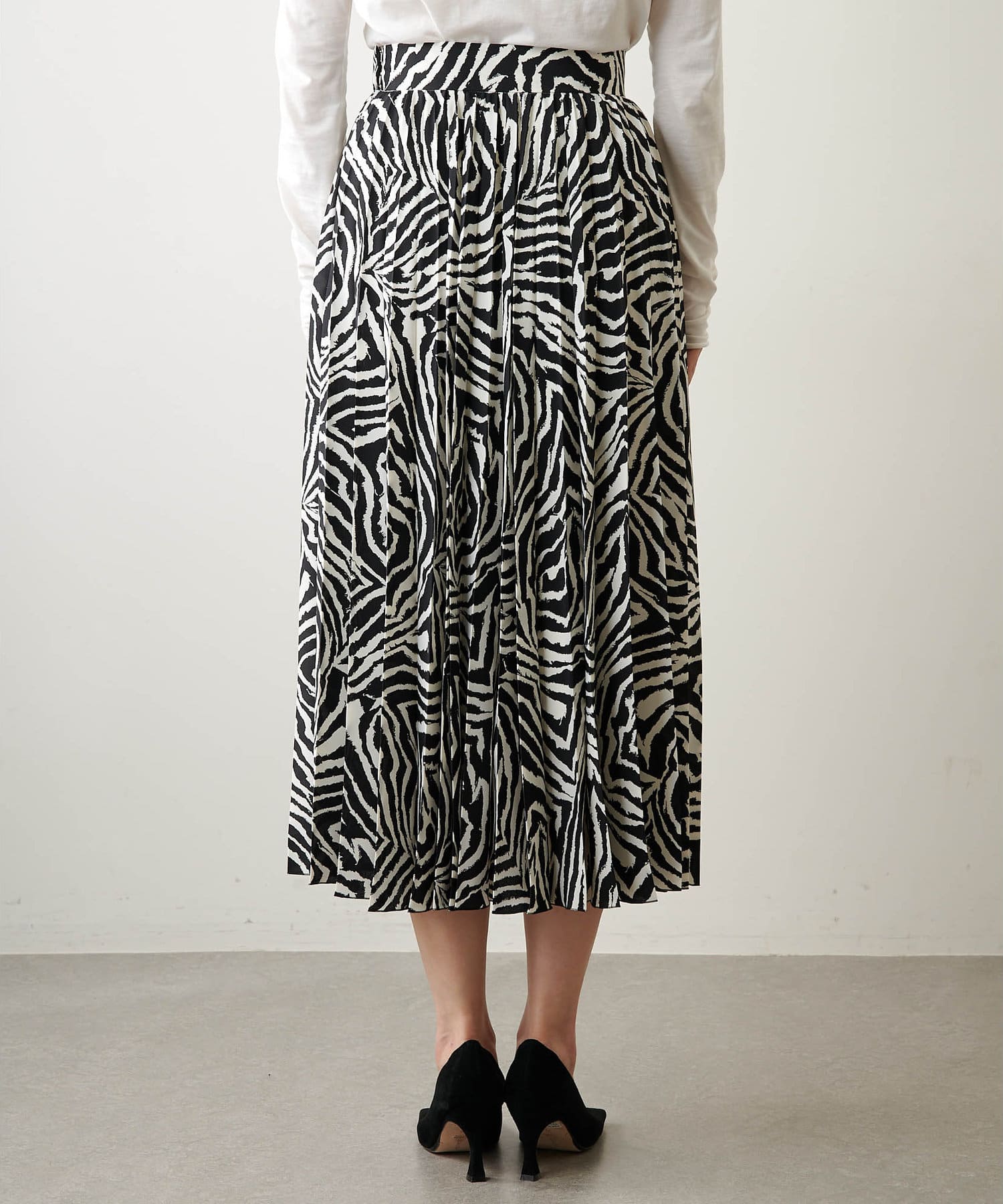 ■大胆なゼブラ柄が目を惹くプリーツスカート。