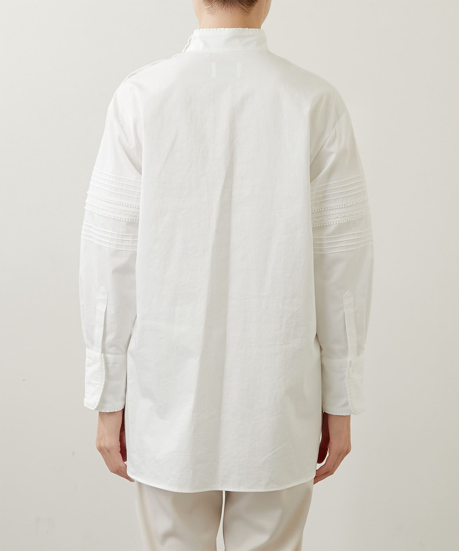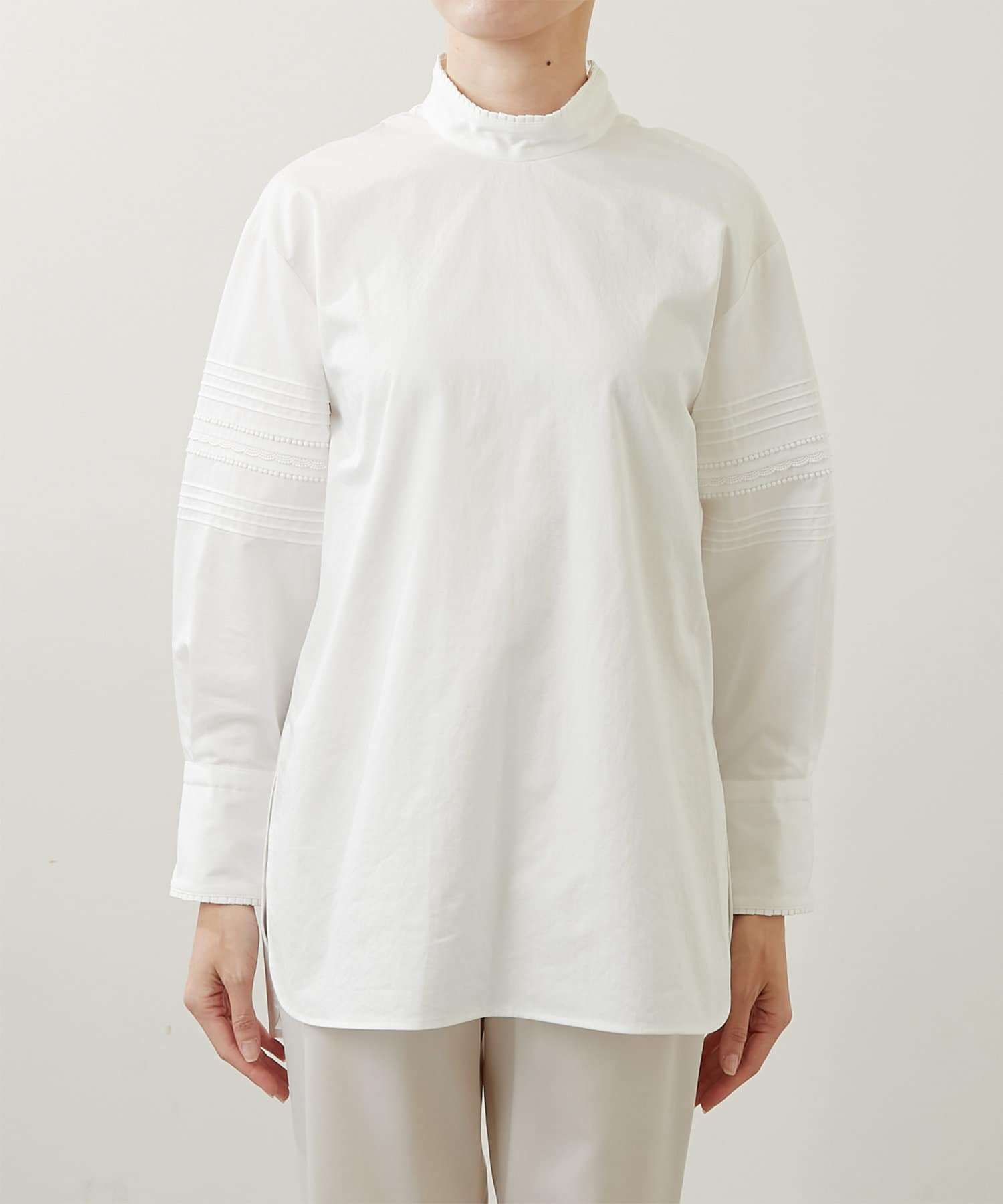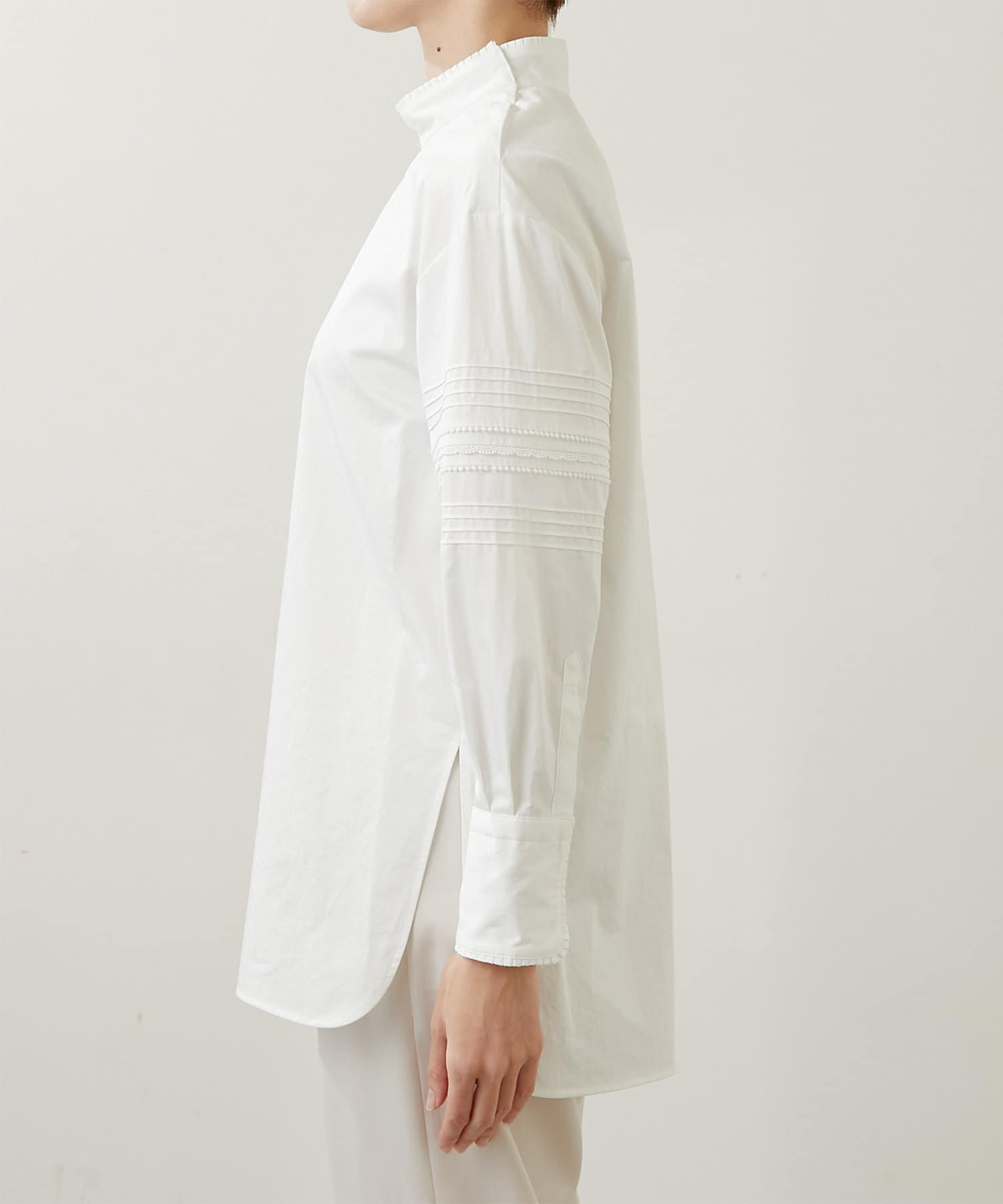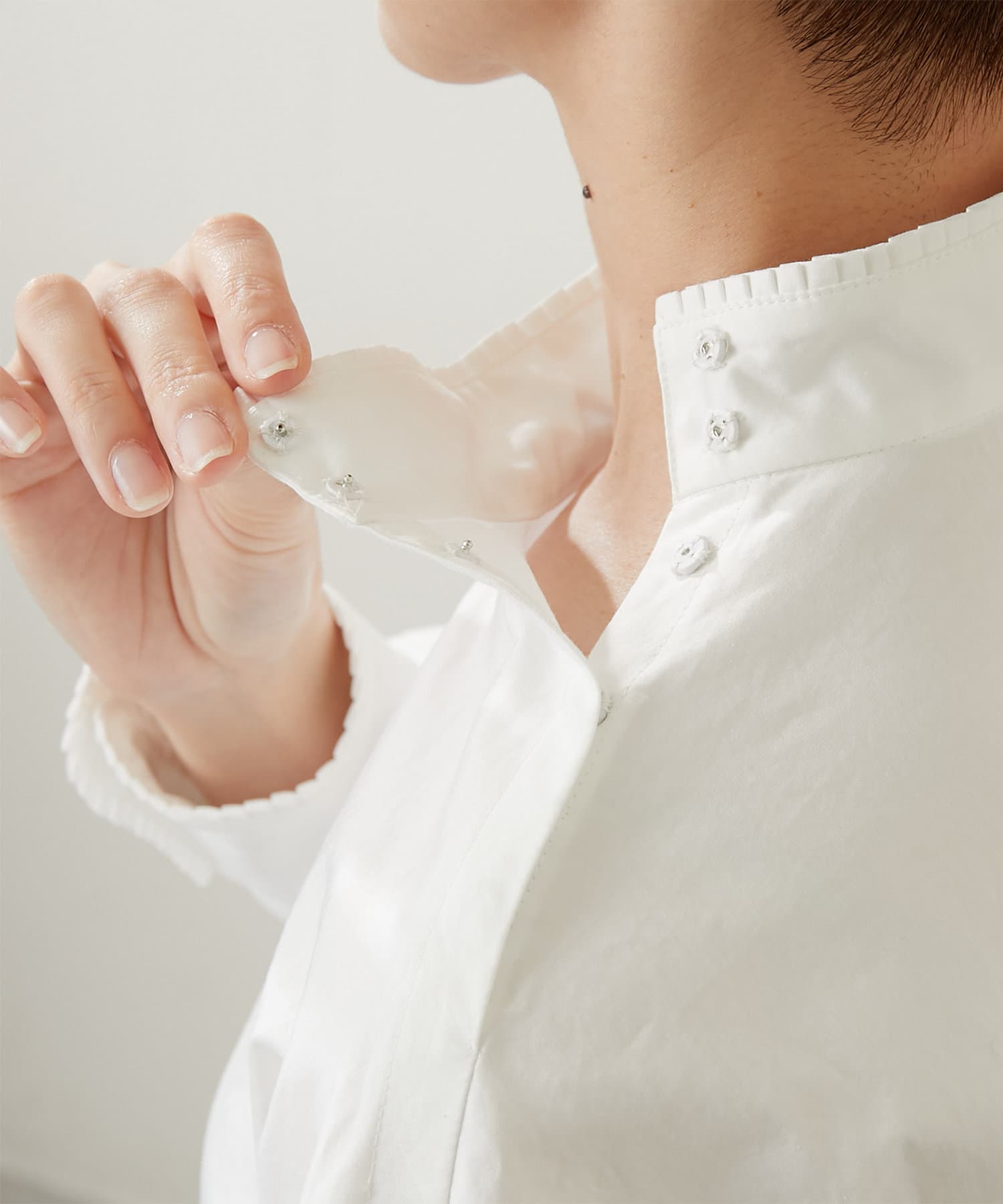 ■こだわりのディテールが詰まったスタンドカラーブラウス。