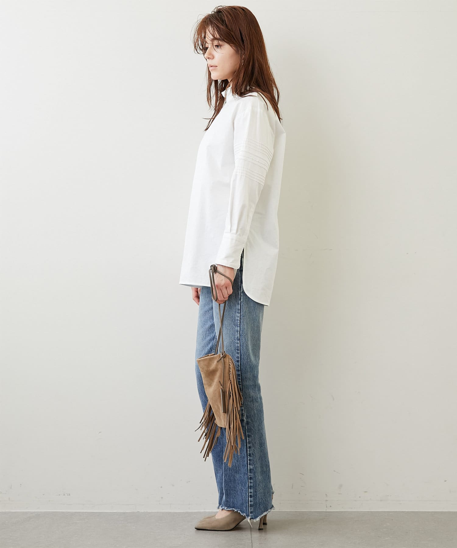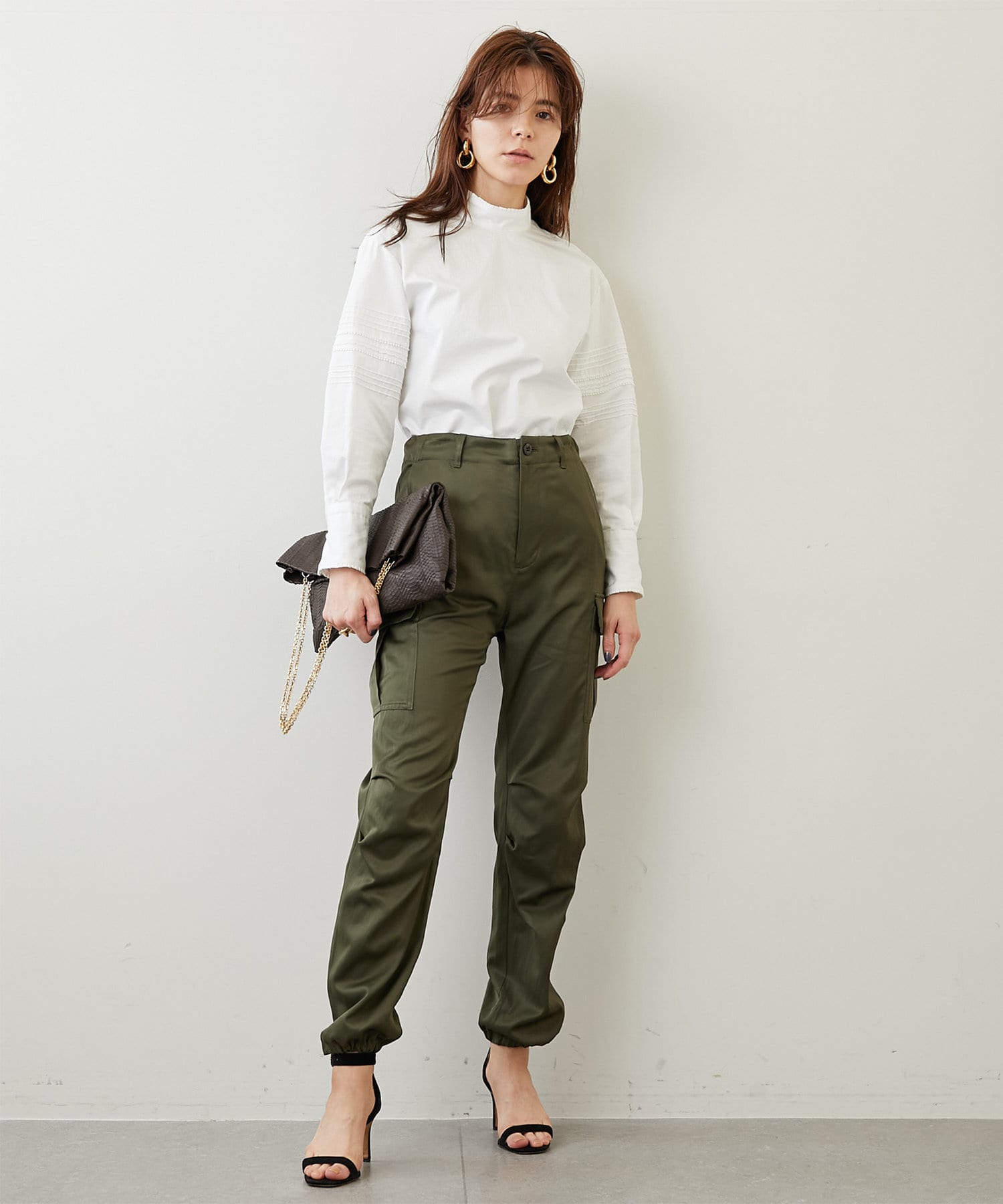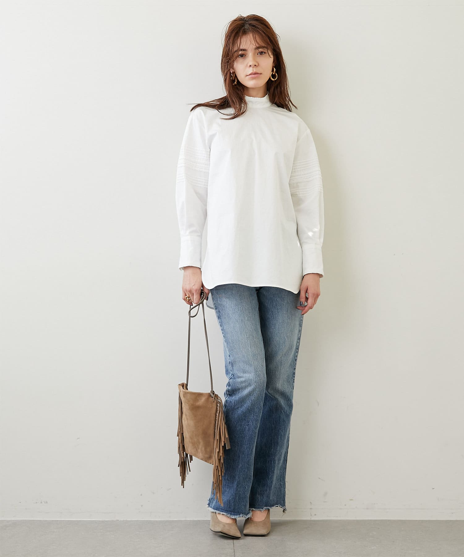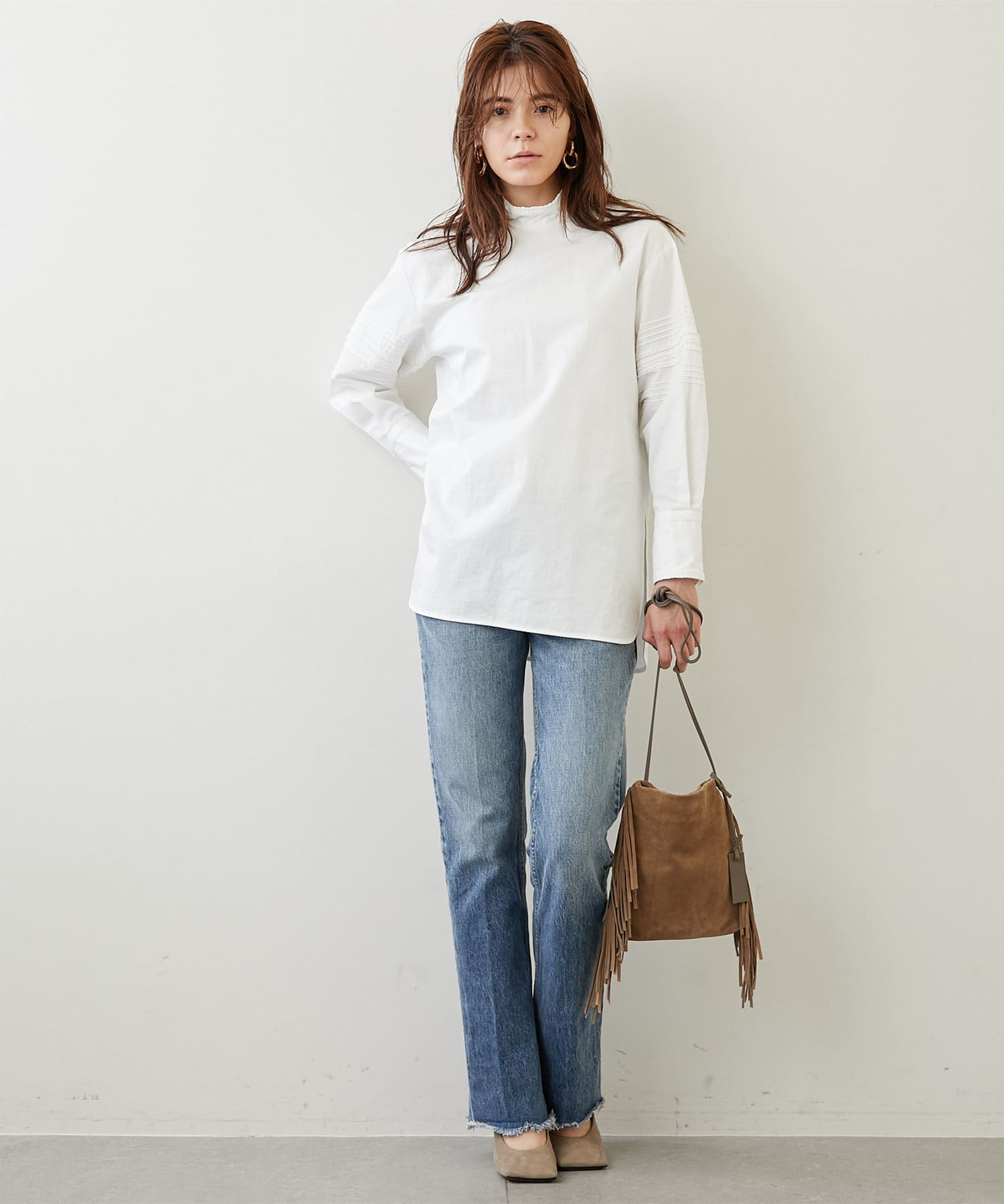 ■こだわりのディテールが詰まったスタンドカラーブラウス。