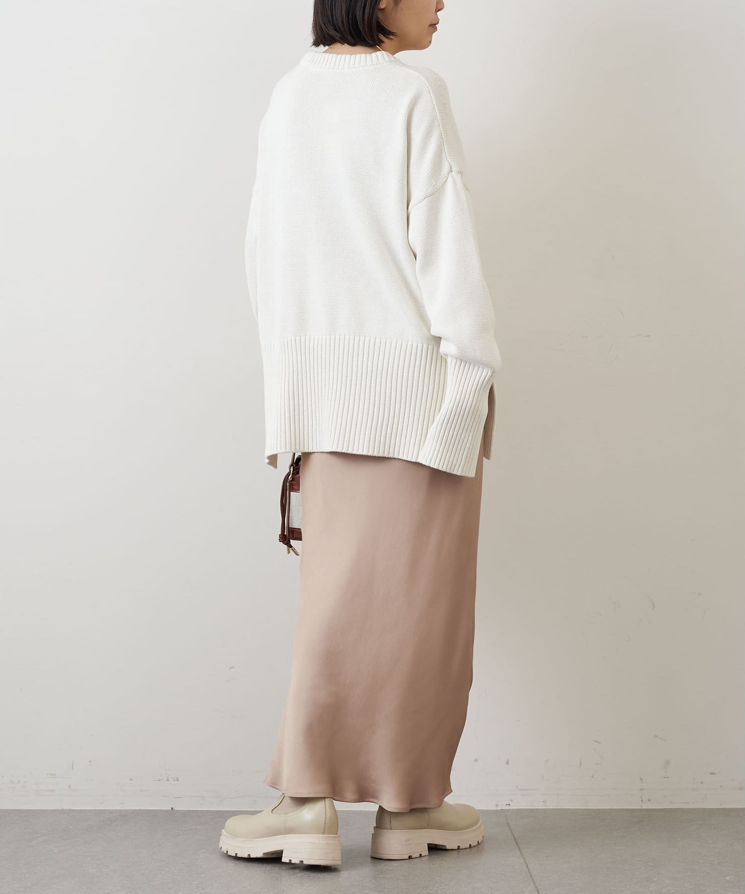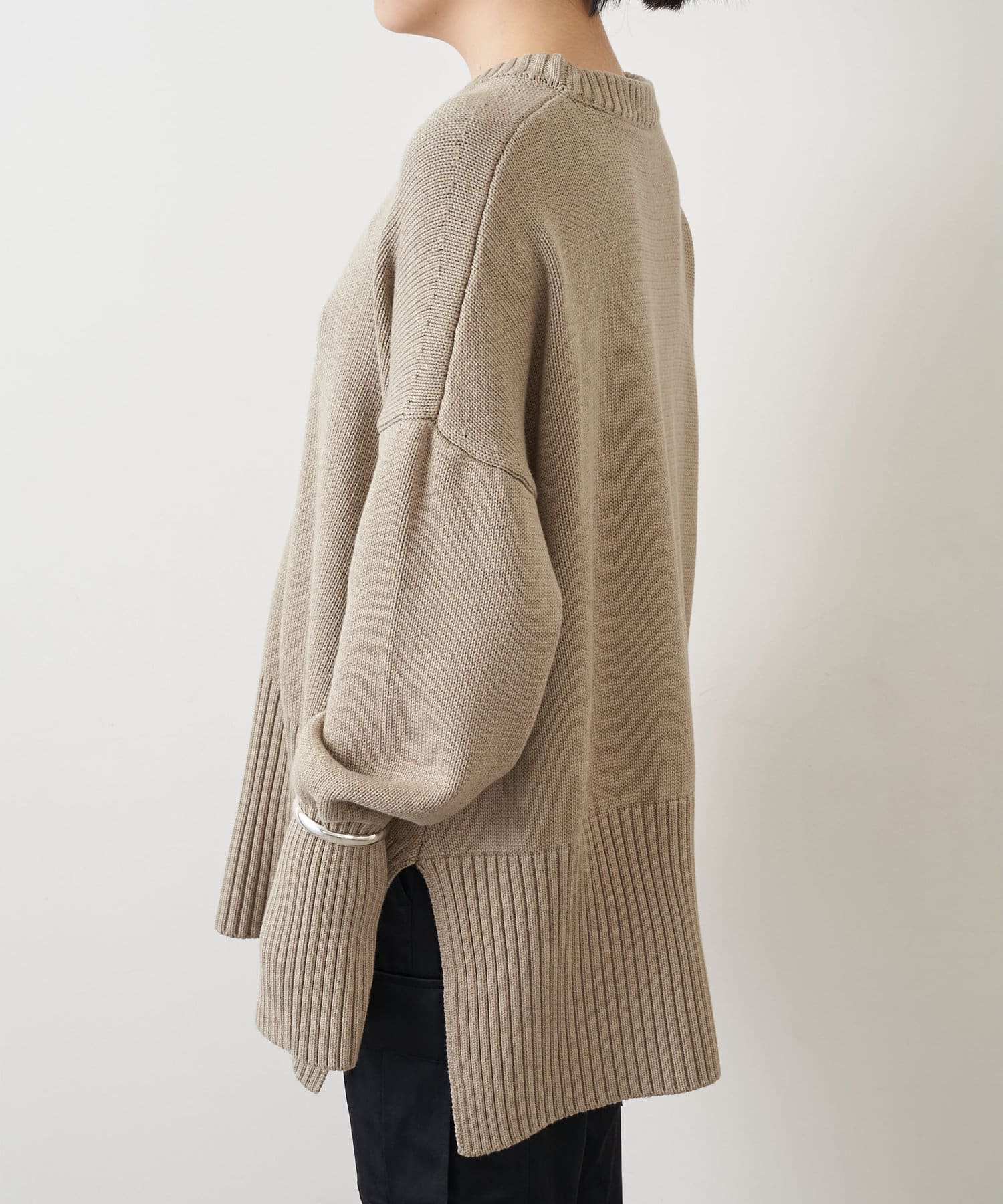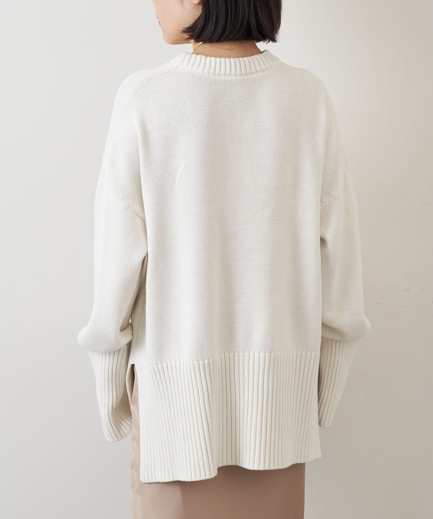 ■プレーンな身頃とワイドスリーブが絶妙バランスなクルーネックニット。