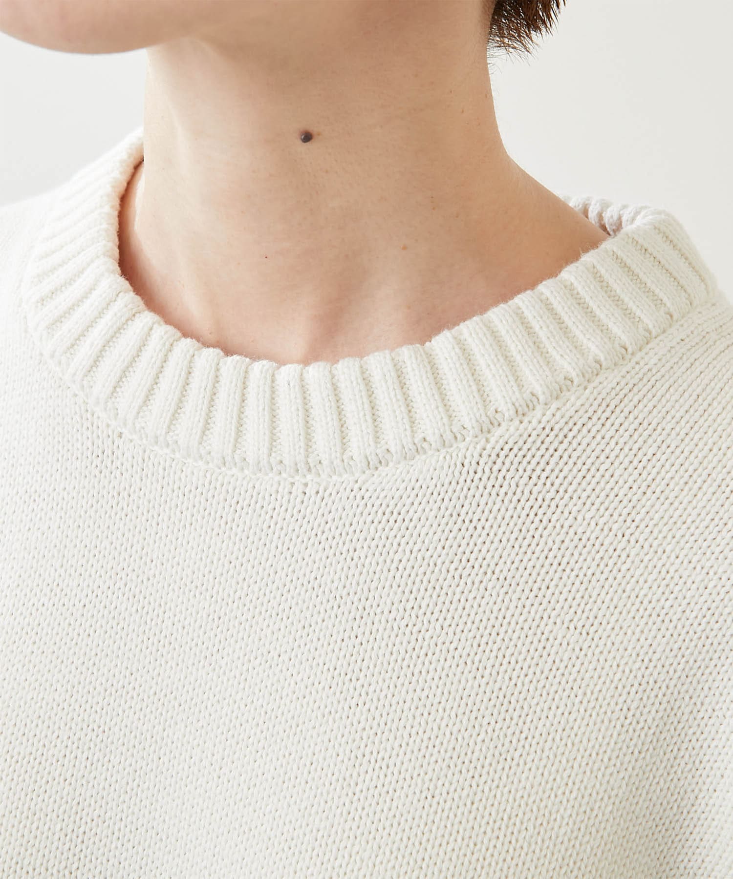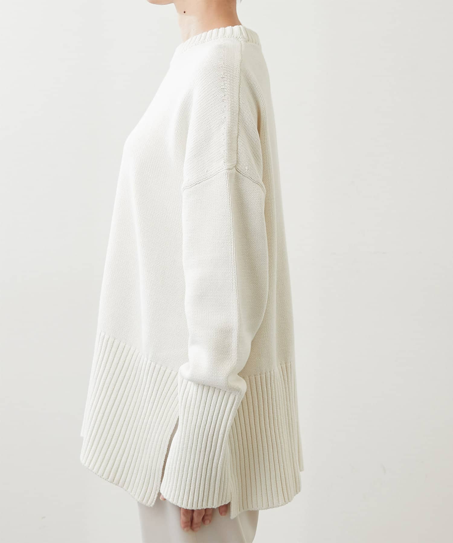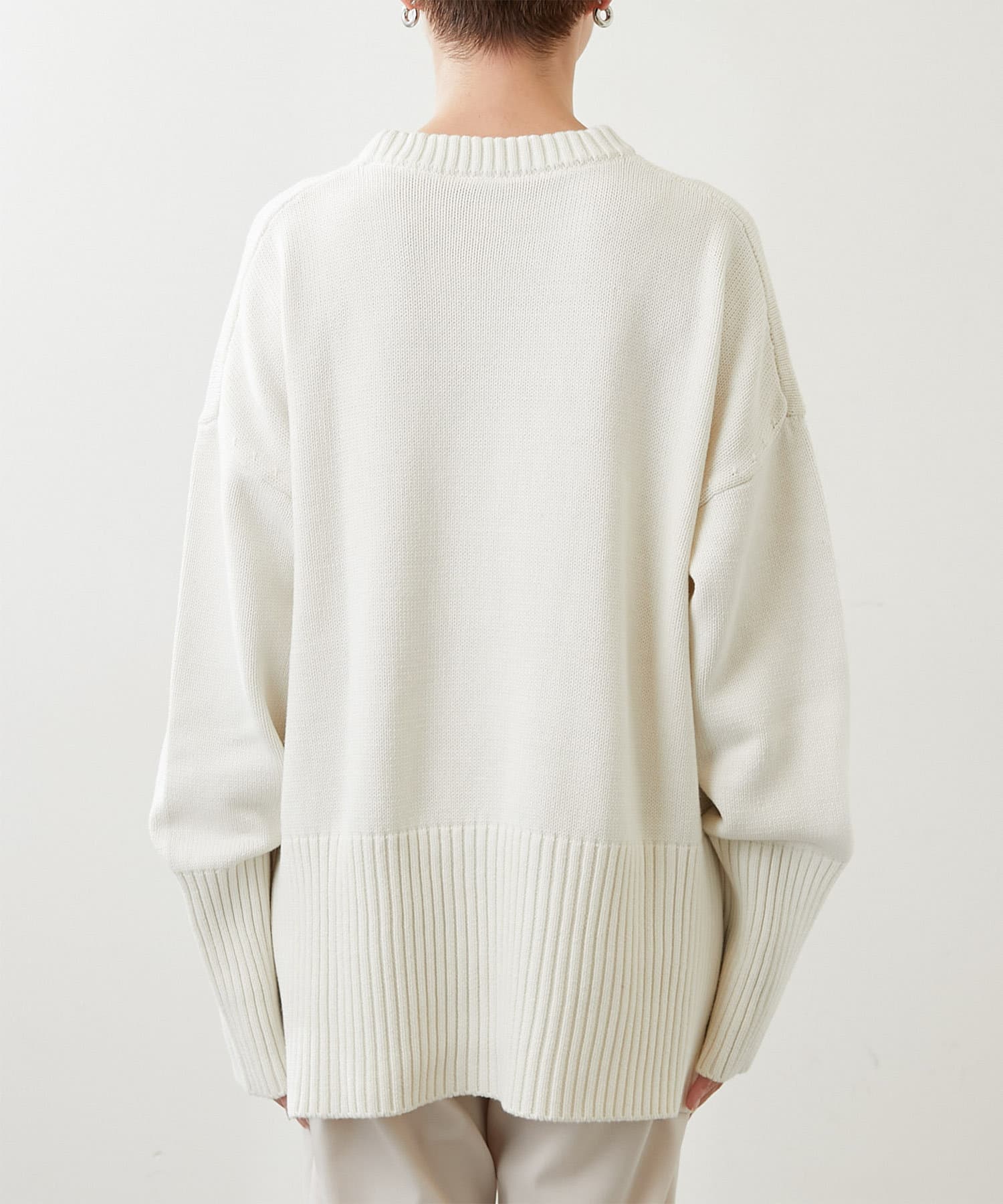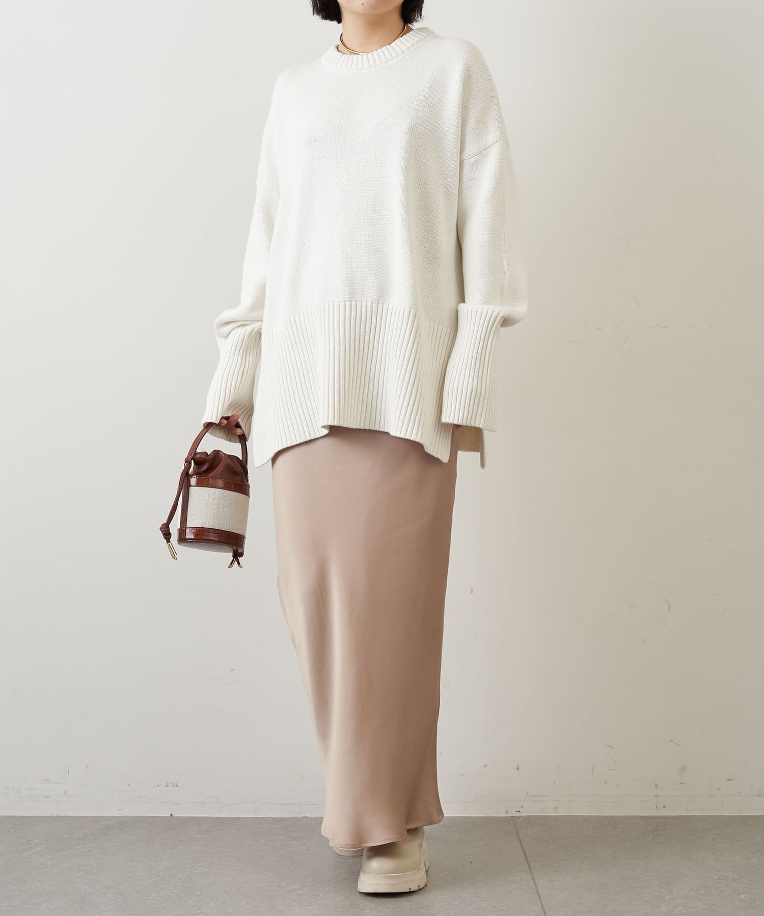 ■プレーンな身頃とワイドスリーブが絶妙バランスなクルーネックニット。