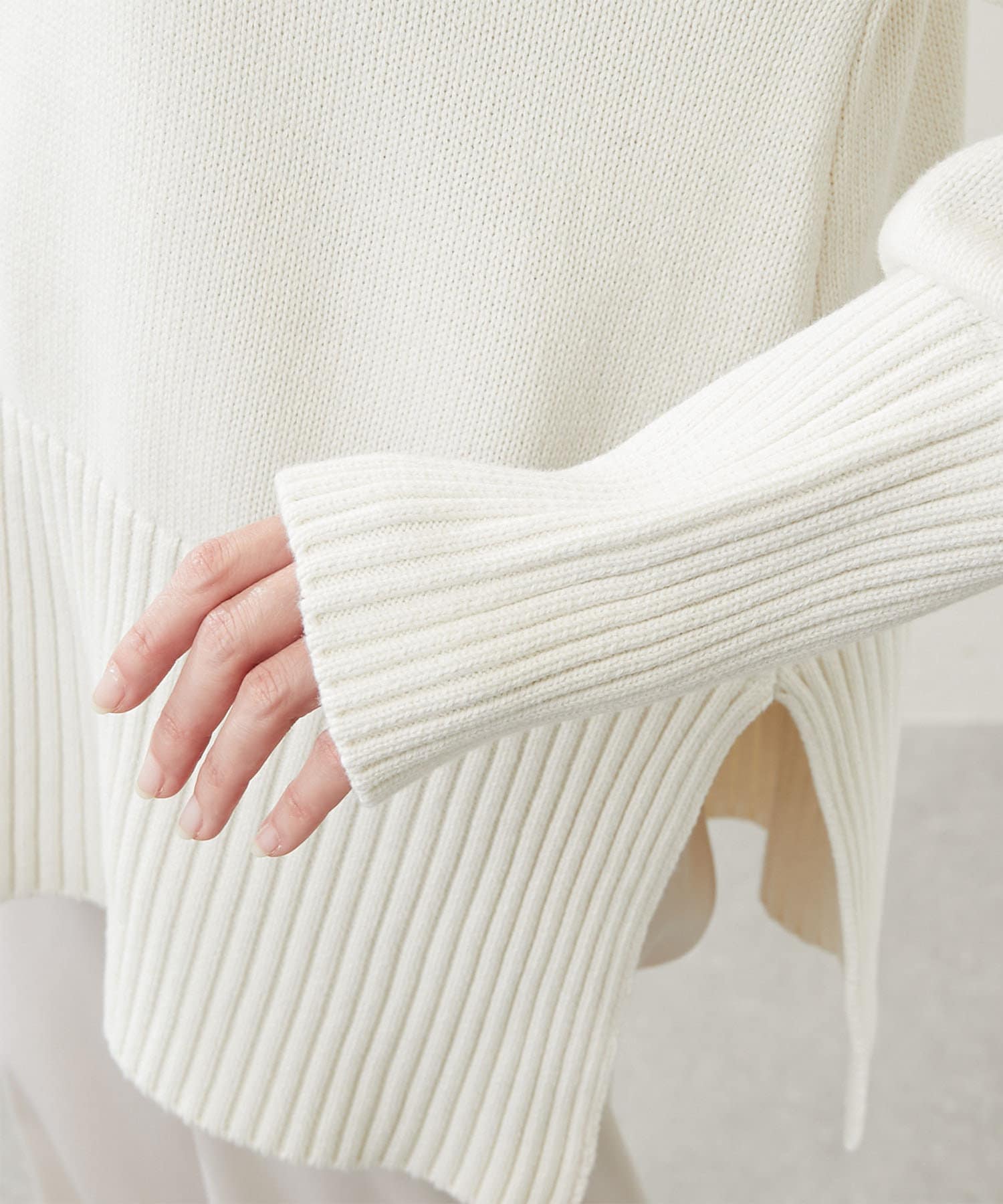 ワイドリブの表情がアクセントになったニットプルオーバー