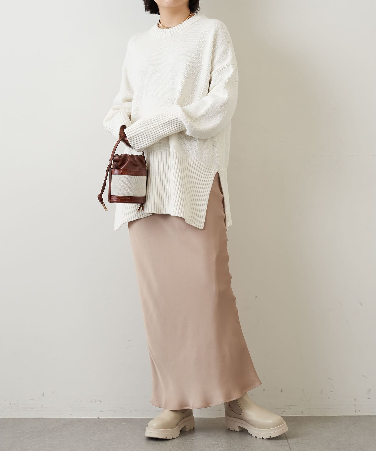■様々なボトムと相性良く、大人のコーディネートに溶け込むベーシックアイテム。
