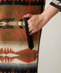 キャメルライクなカーキをベースに暖かみのあるカラーを盛り込み、ブラックがアクセントになったネイティブ柄。