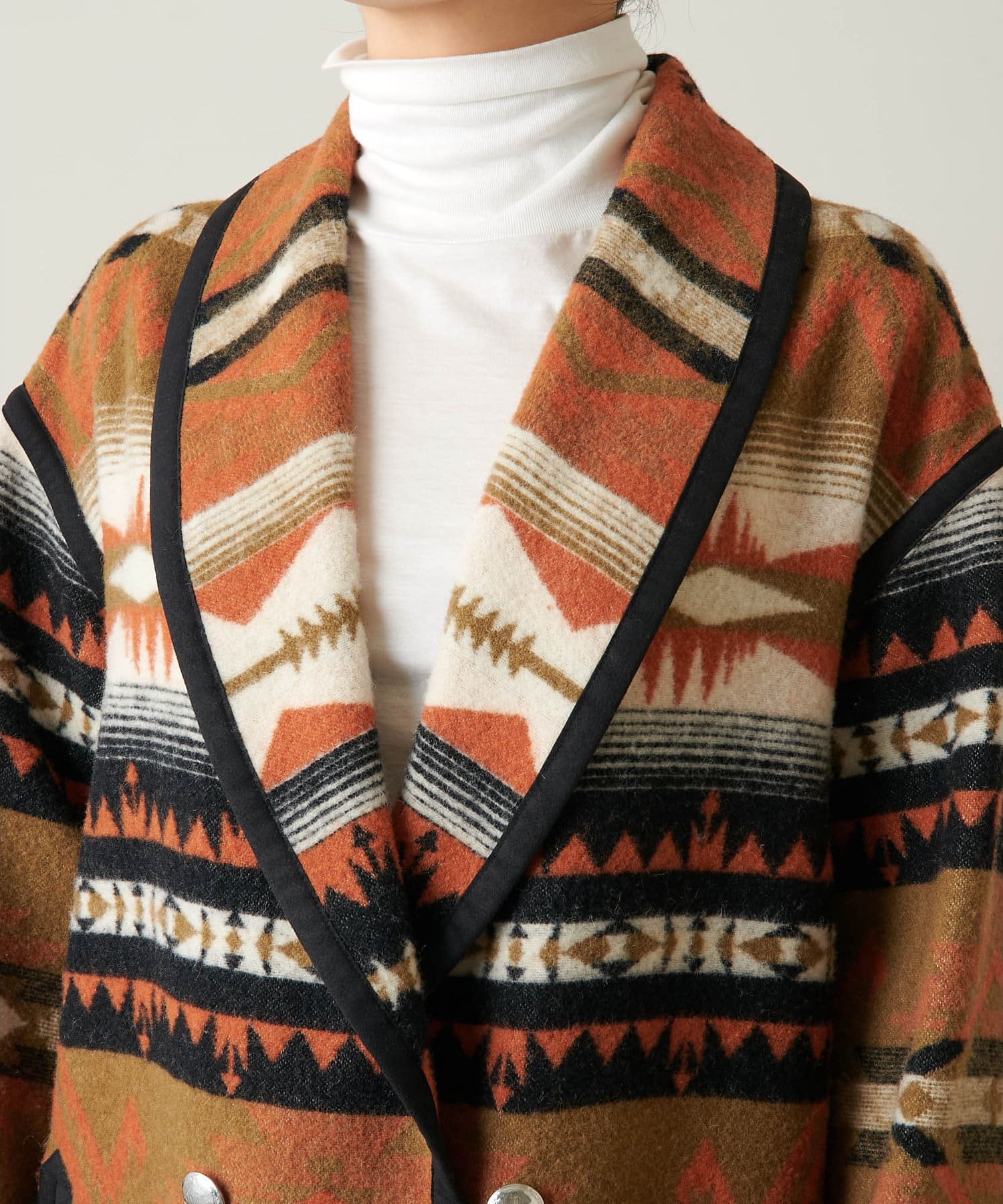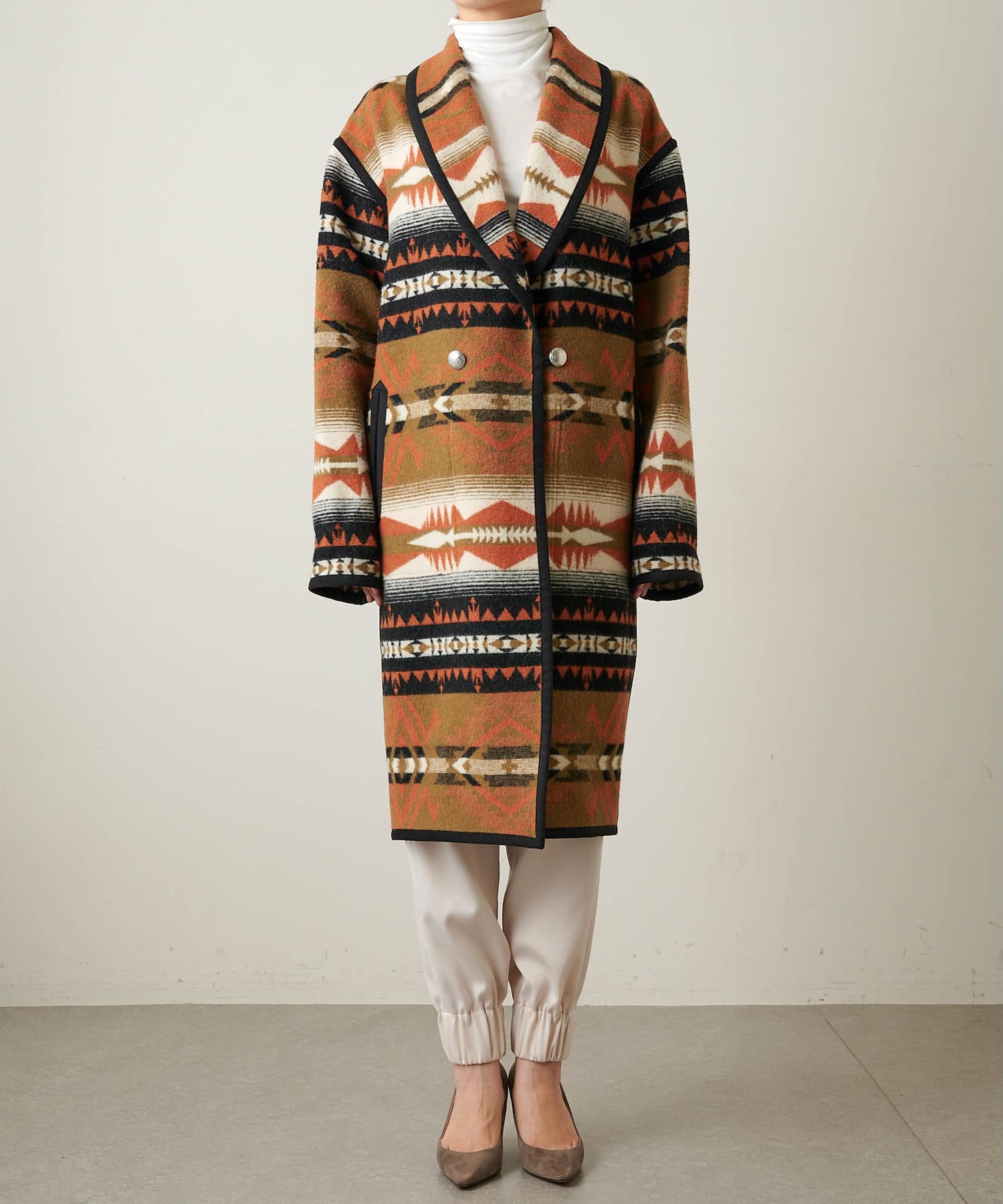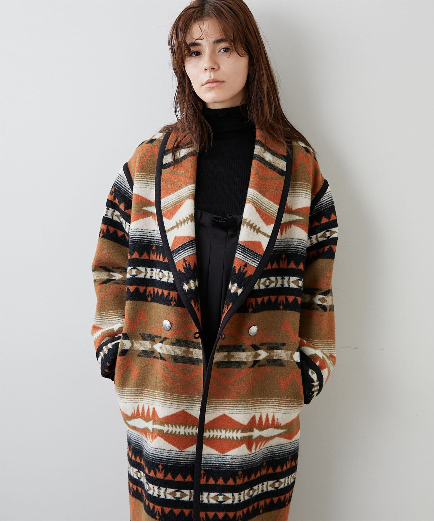 オリジナルのネイティブ柄が目を惹く、Col Pierrotのガウンコート