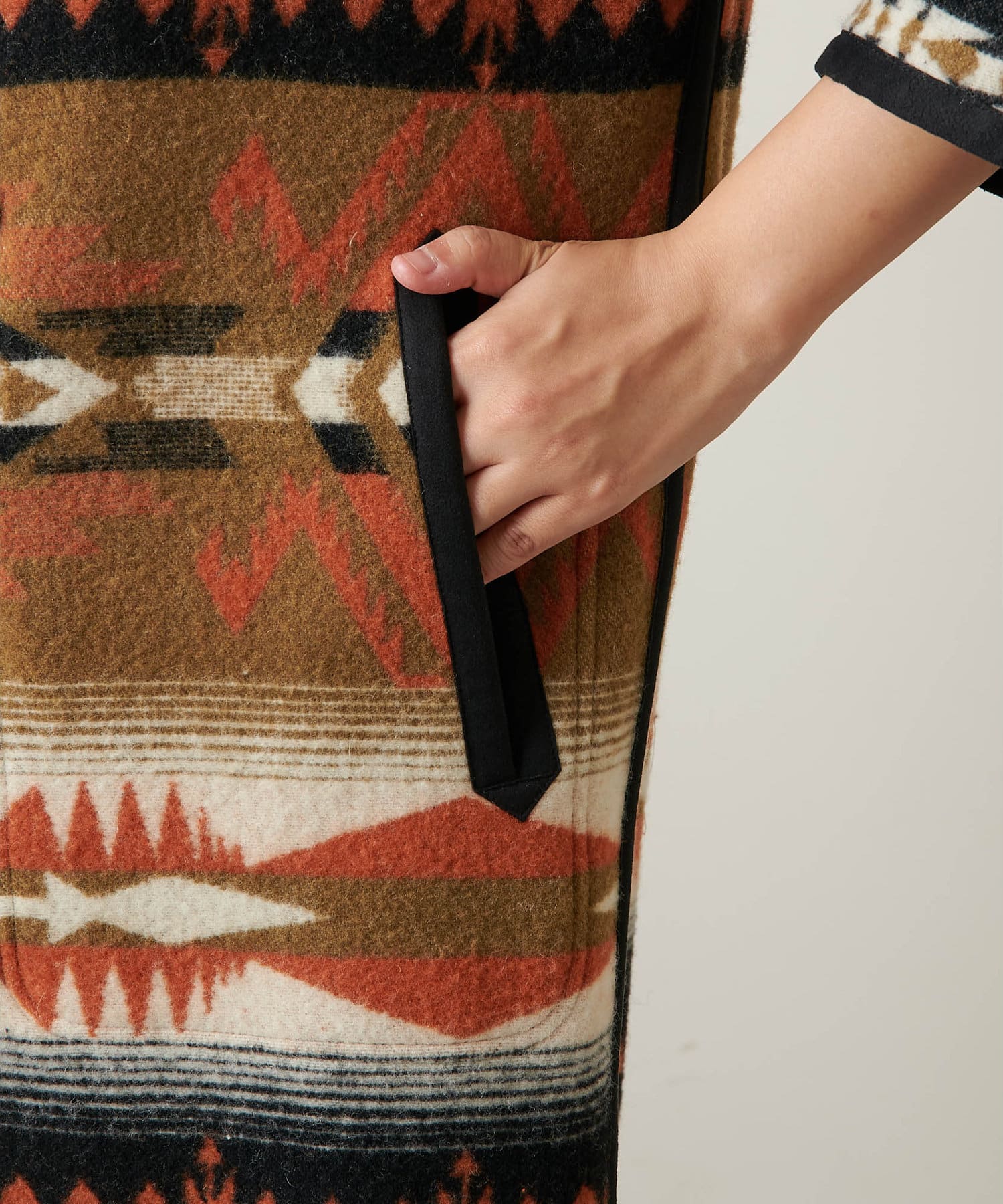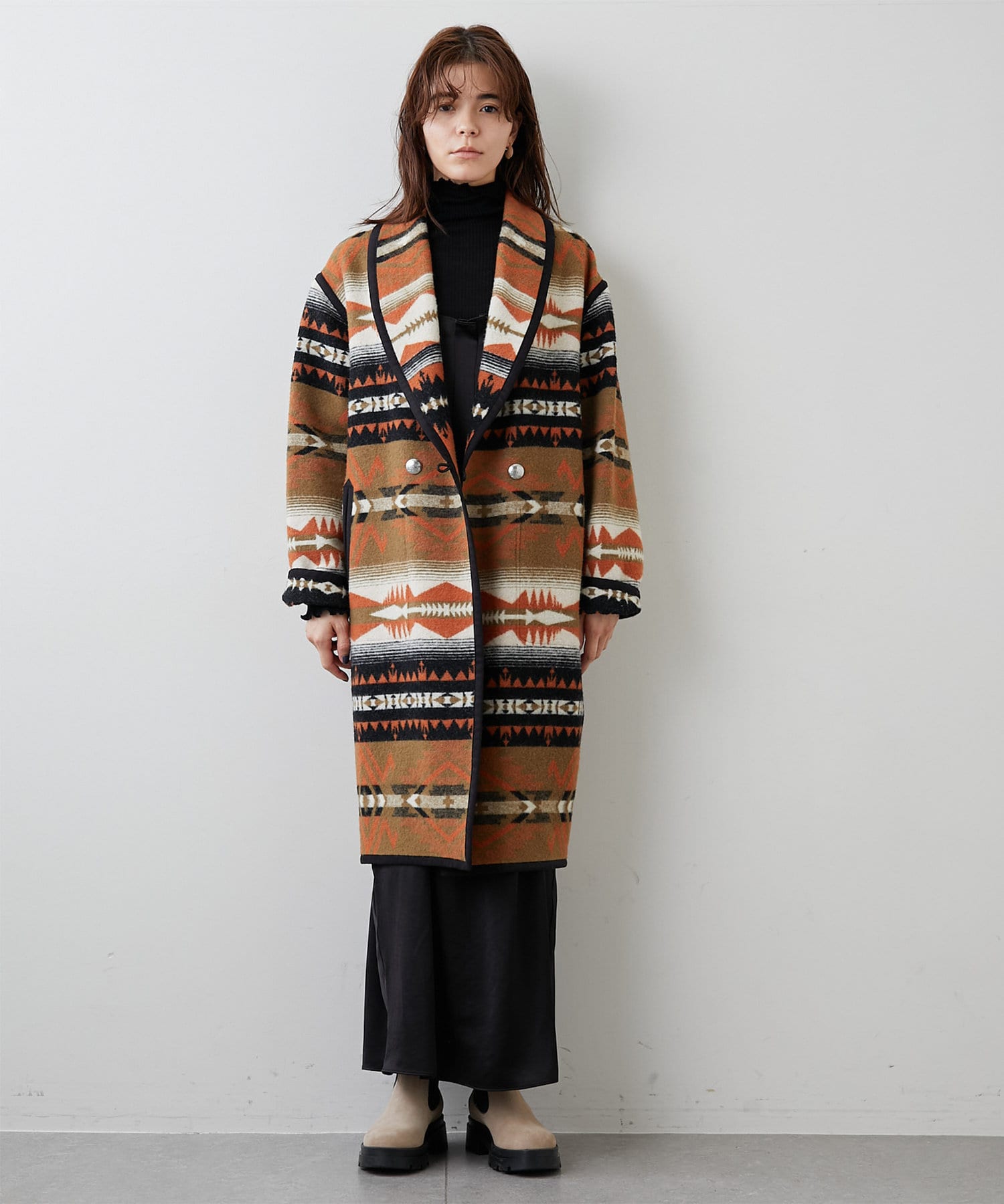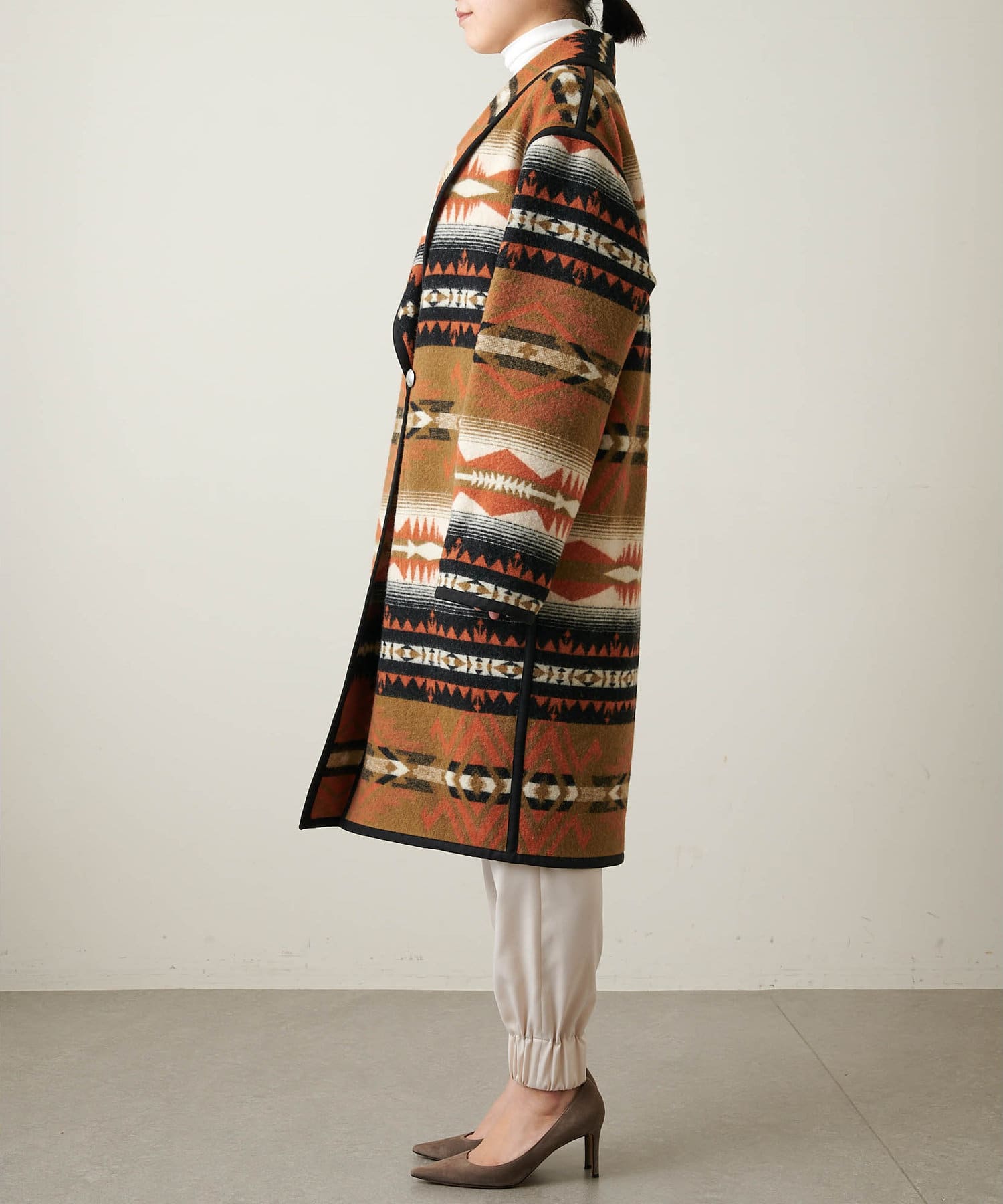 オリジナルのネイティブ柄が目を惹く、Col Pierrotのガウンコート