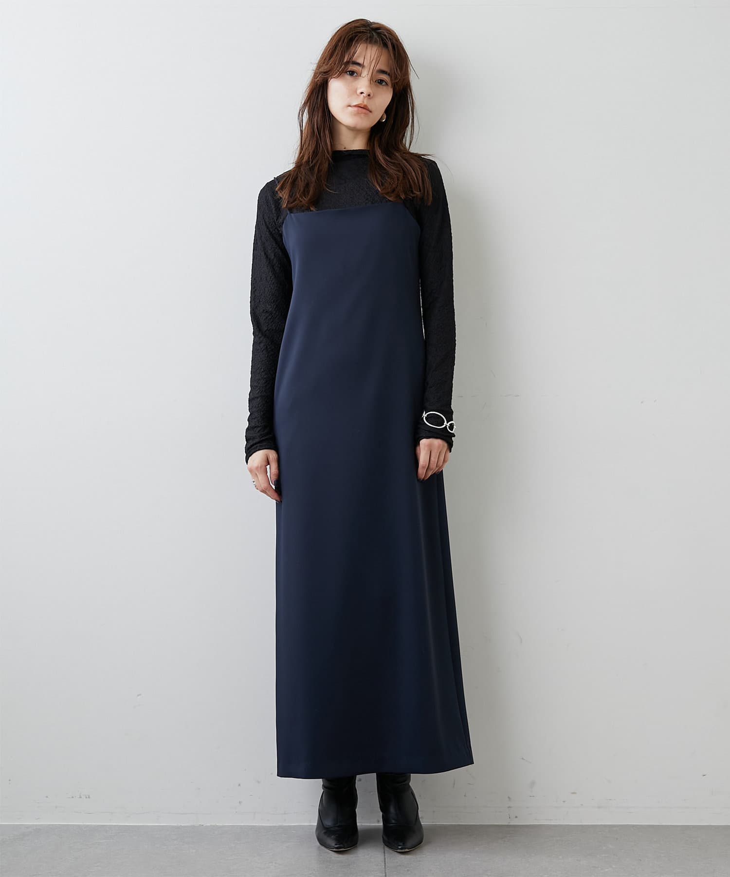 ■マットで上品な光沢感のあるロングキャミワンピース。