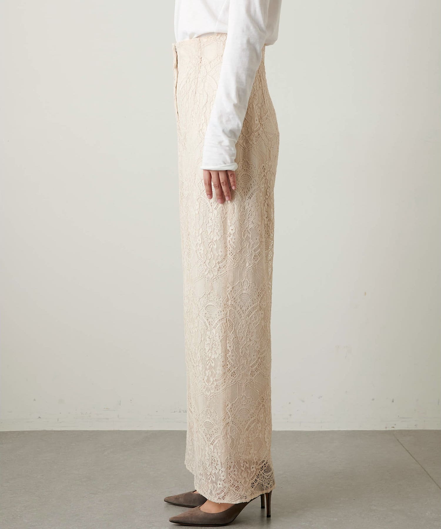 ■レースの透け感をを活かした裾のディテールが足元に抜け感をプラス。