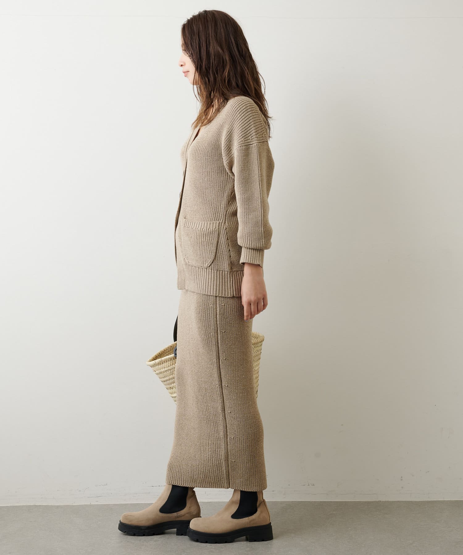 ■同素材のリネン片畦カーディガン(ブランド品番:WGZ1021105A0002)とのセットアップでの着用もおすすめ。