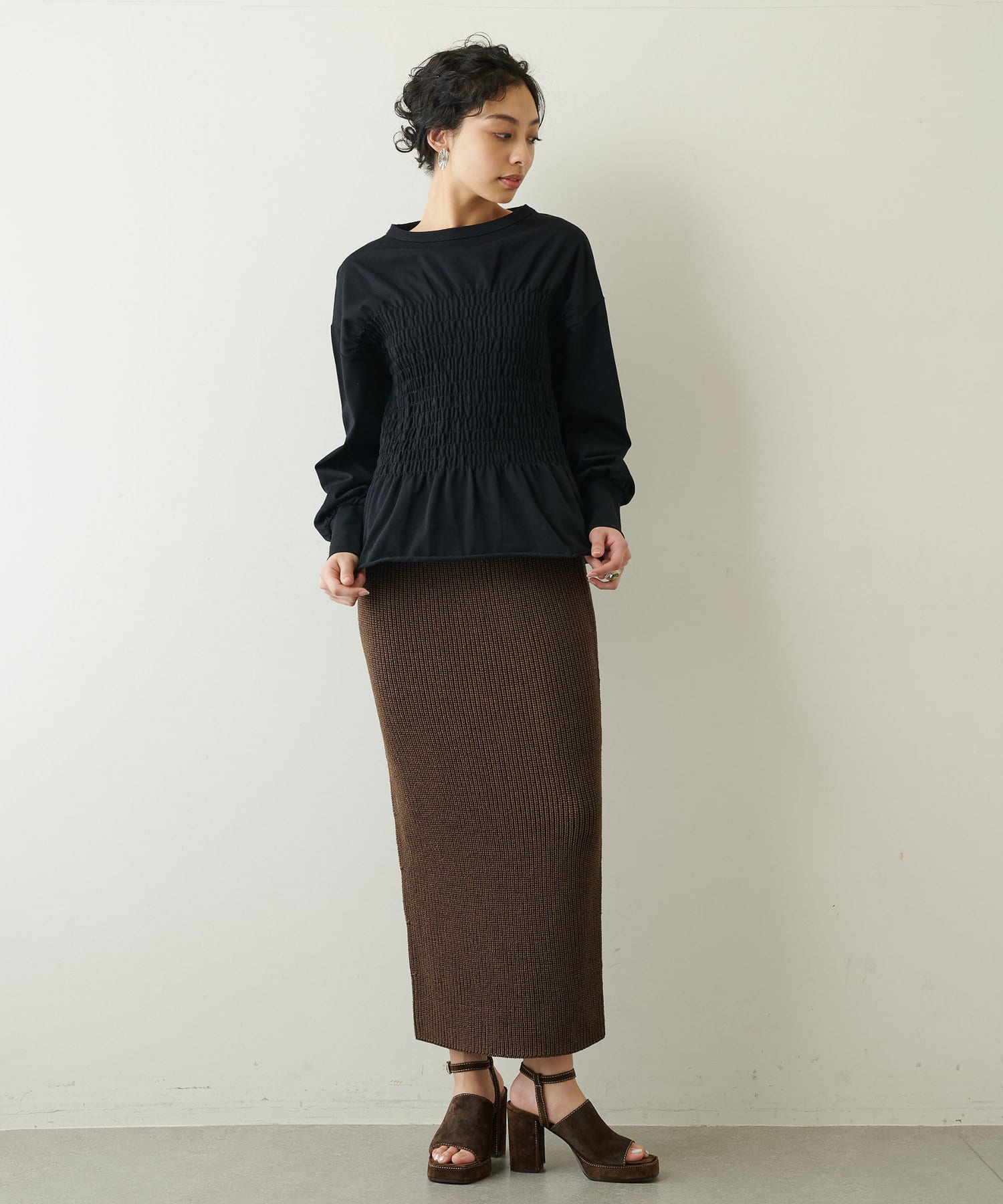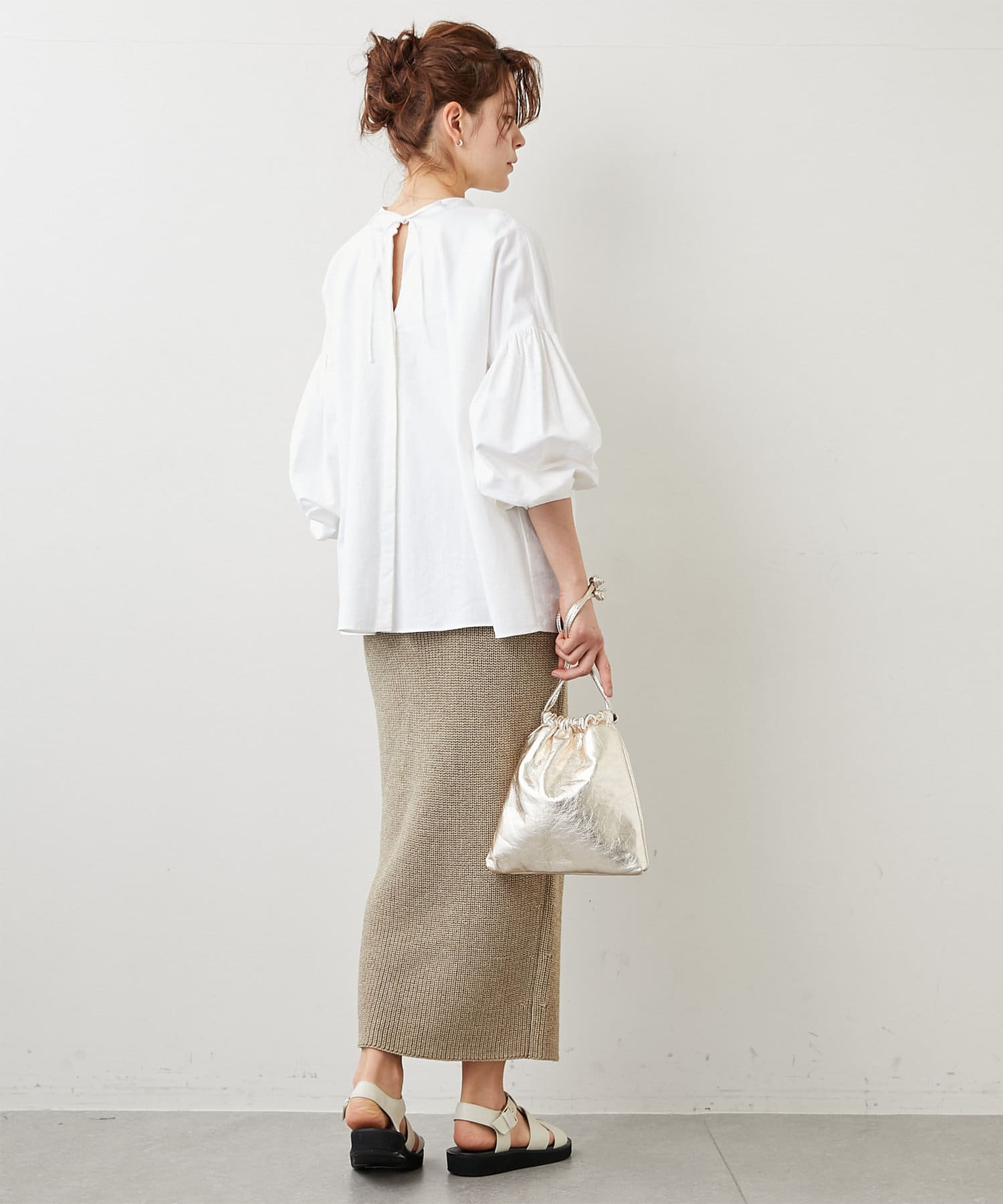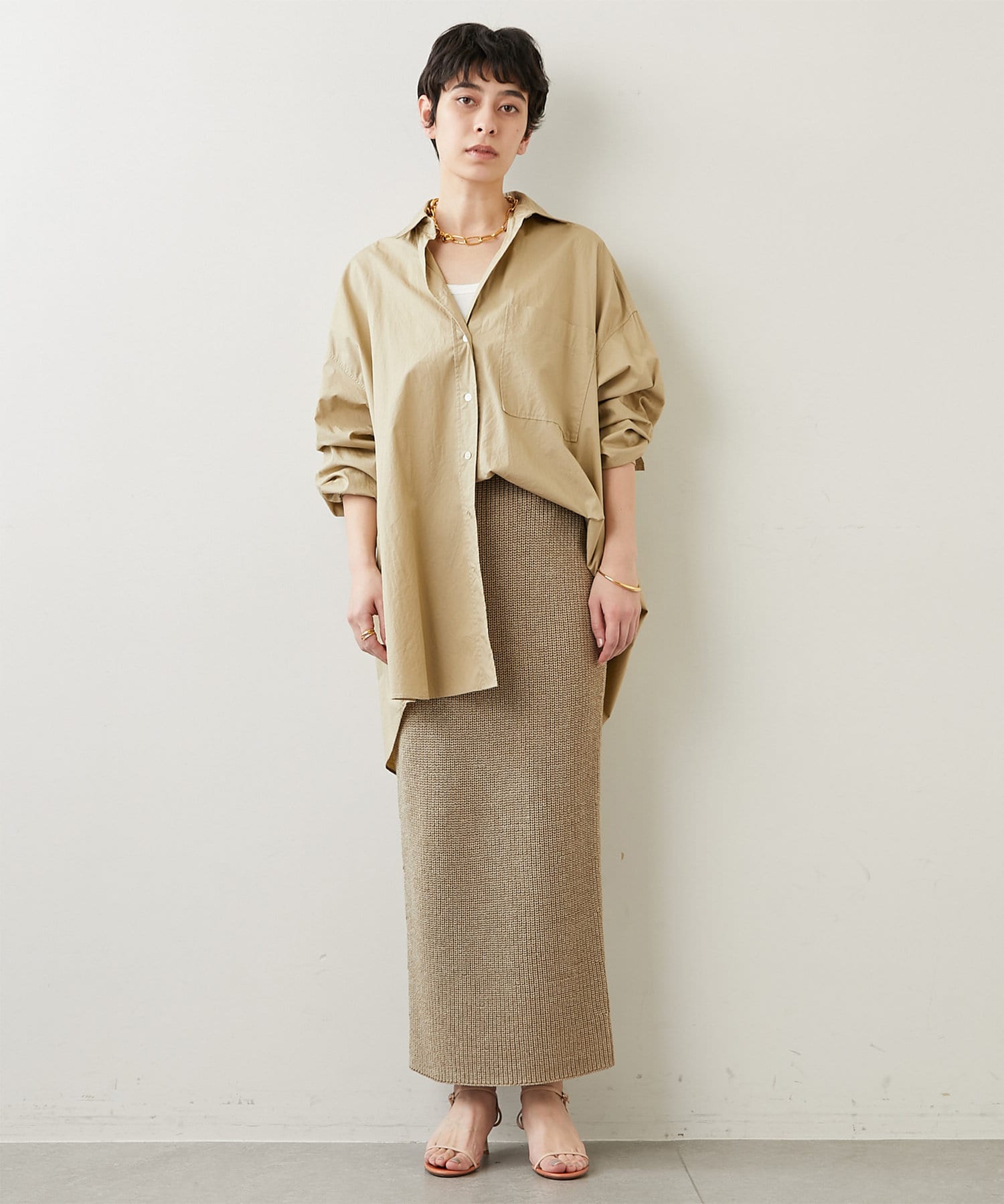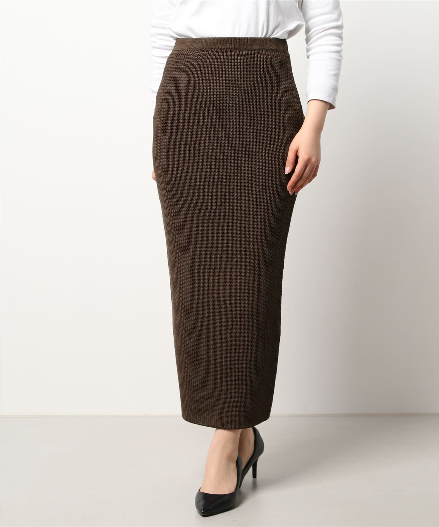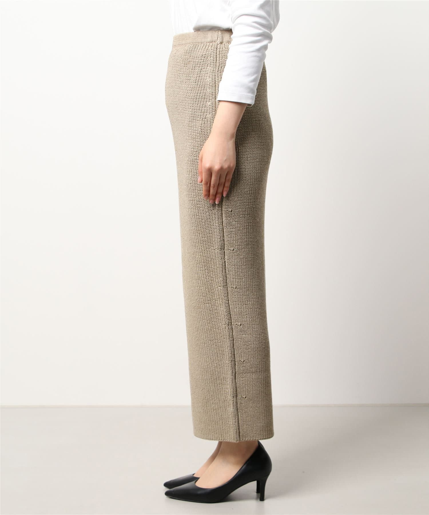 ■膨らみのある編地でありつつ、リネンのしなやかさも感じられるニットタイトスカート。