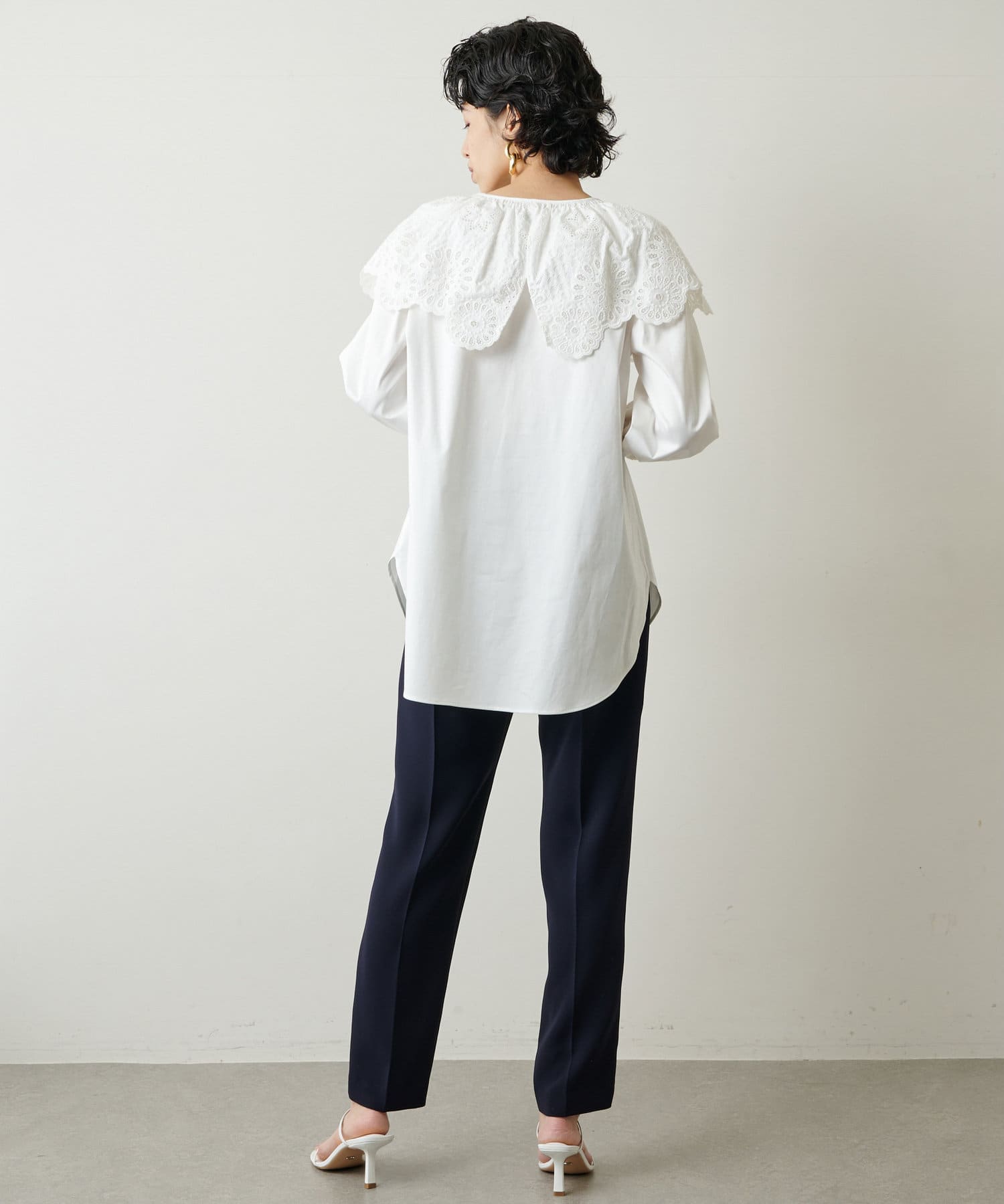 ■同素材のスタンドスキッパーブラウス(ブランド品番:WGZ1021104A0002)とのセットアップもおすすめ。